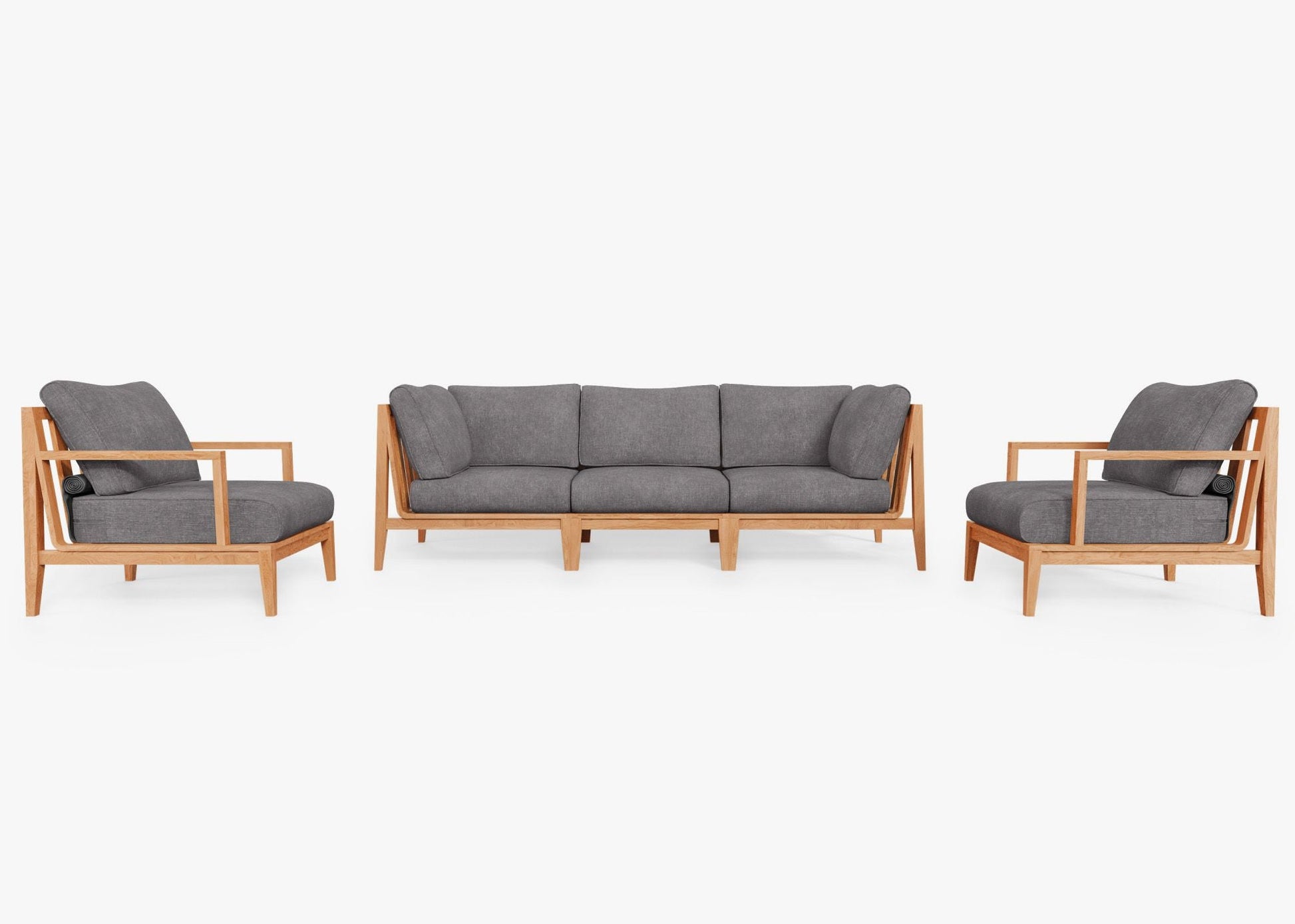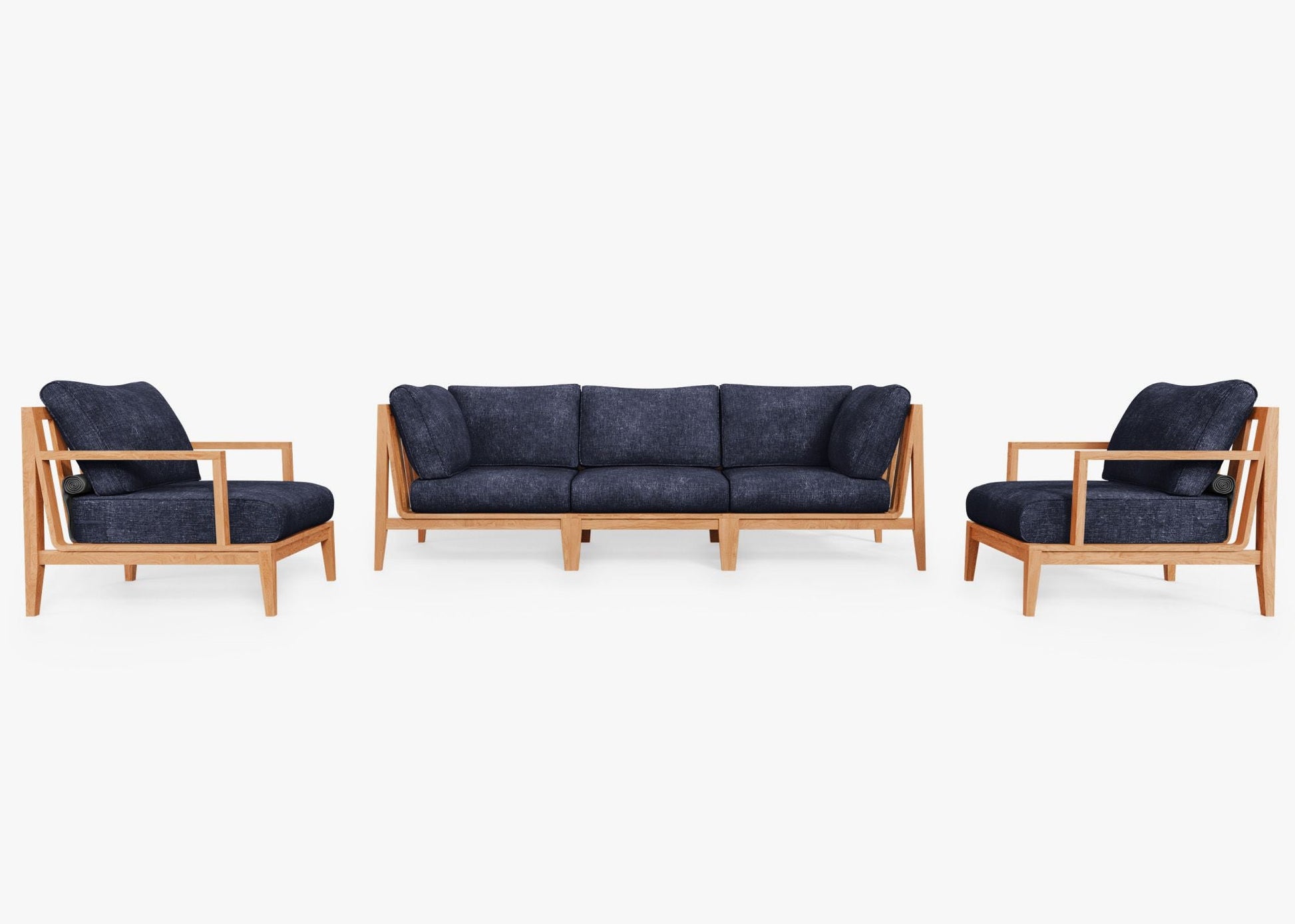 Canapé d'extérieur en teck avec fauteuils - 5...