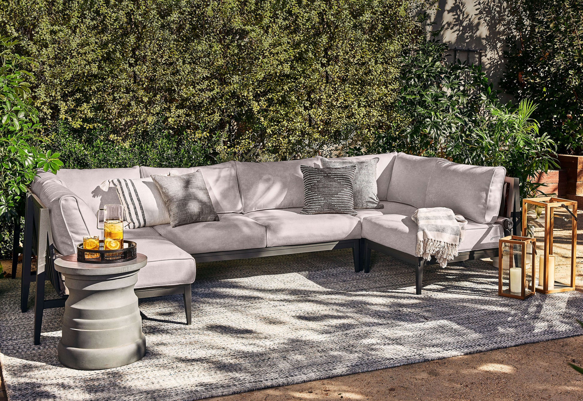 Harmonisez votre espace extérieur avec un tapis polyvalent fabriqué de manière durable à partir de matériaux 100 % recyclés. Fabriqué en PET et pouvant contenir jusqu'à 1188 bouteilles en plastique. Doux au toucher, ce matériau antitache ne se décolore pas au soleil et se nettoie très facilement. Ses couleurs neutres et son motif à chevrons intemporel s'harmonisent avec tous les styles de décoration tout en masquant efficacement la saleté et la poussière. Disponible en trois dimensions : 1,5 m x 2,4 m, 2,4 m x 3 m ou 2,7 m x 3,6 m.
