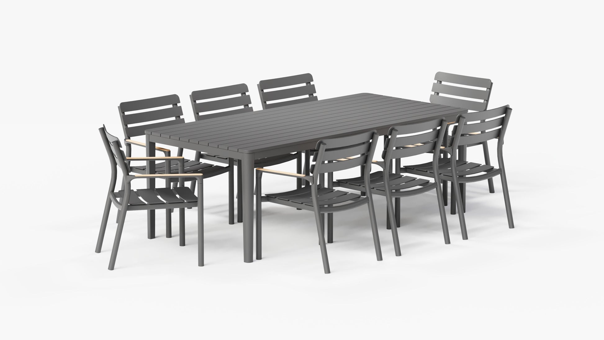 Table de salle à manger rectangulaire d'extérieur en aluminium + 8 fauteuils de salle à manger 595