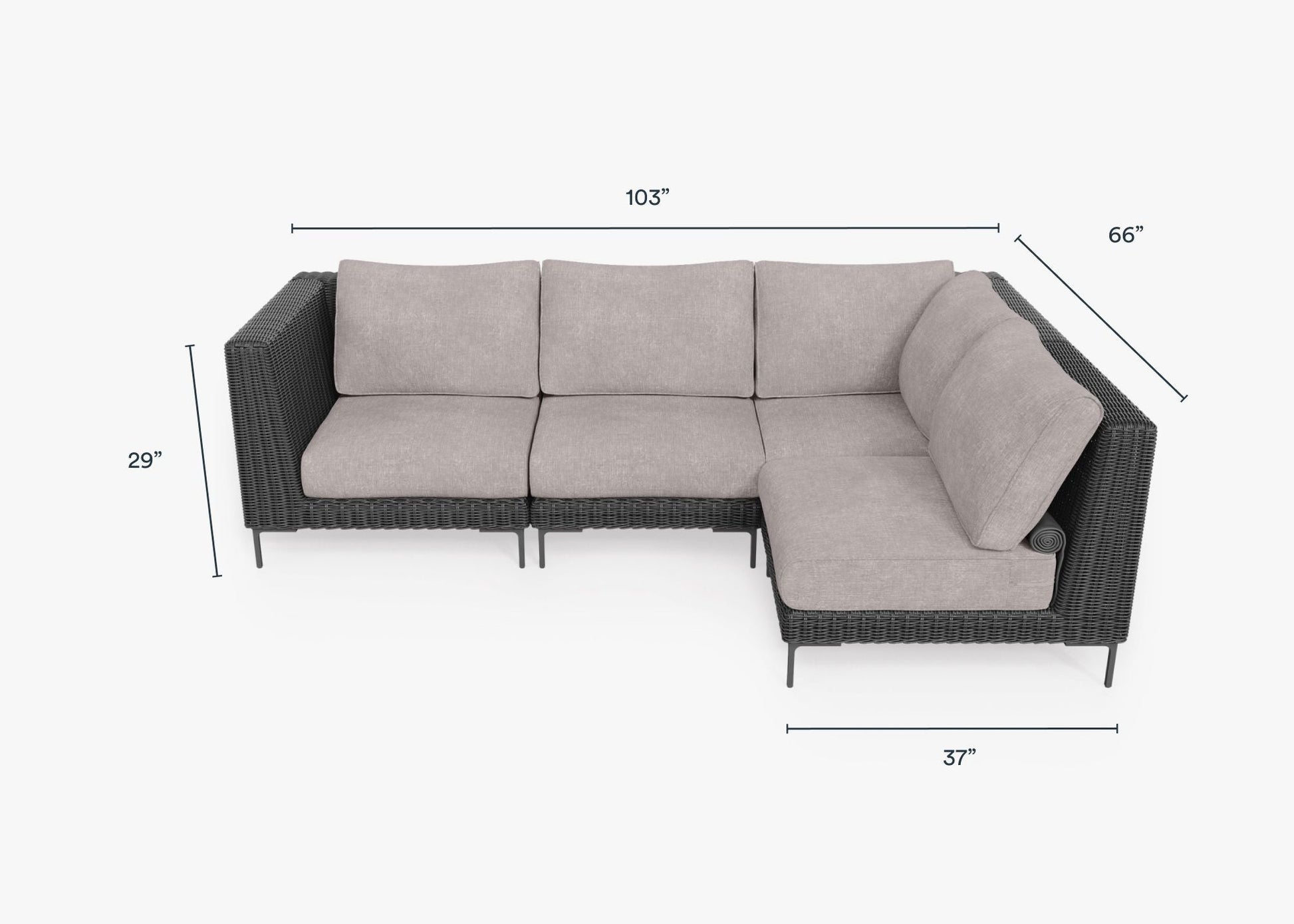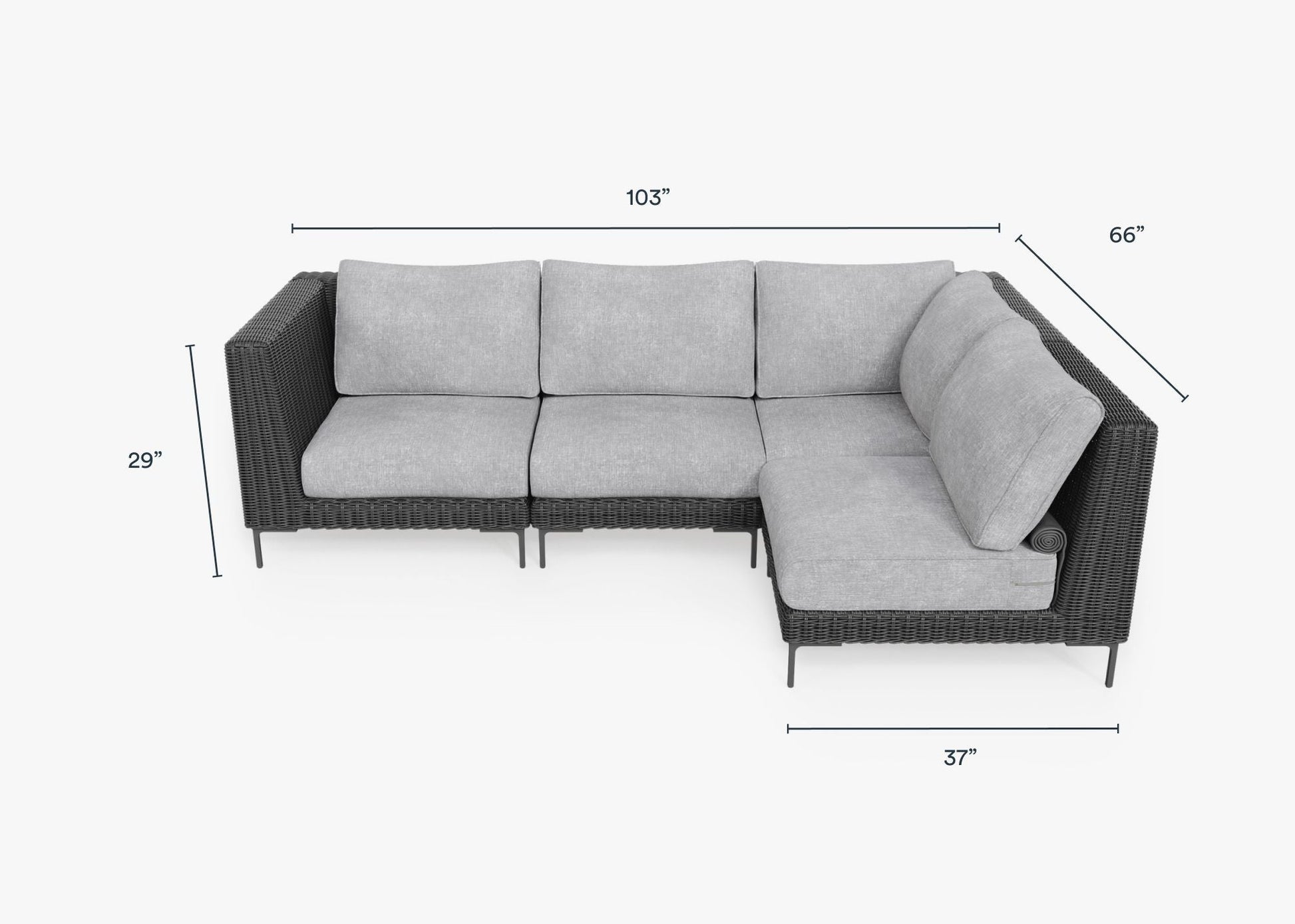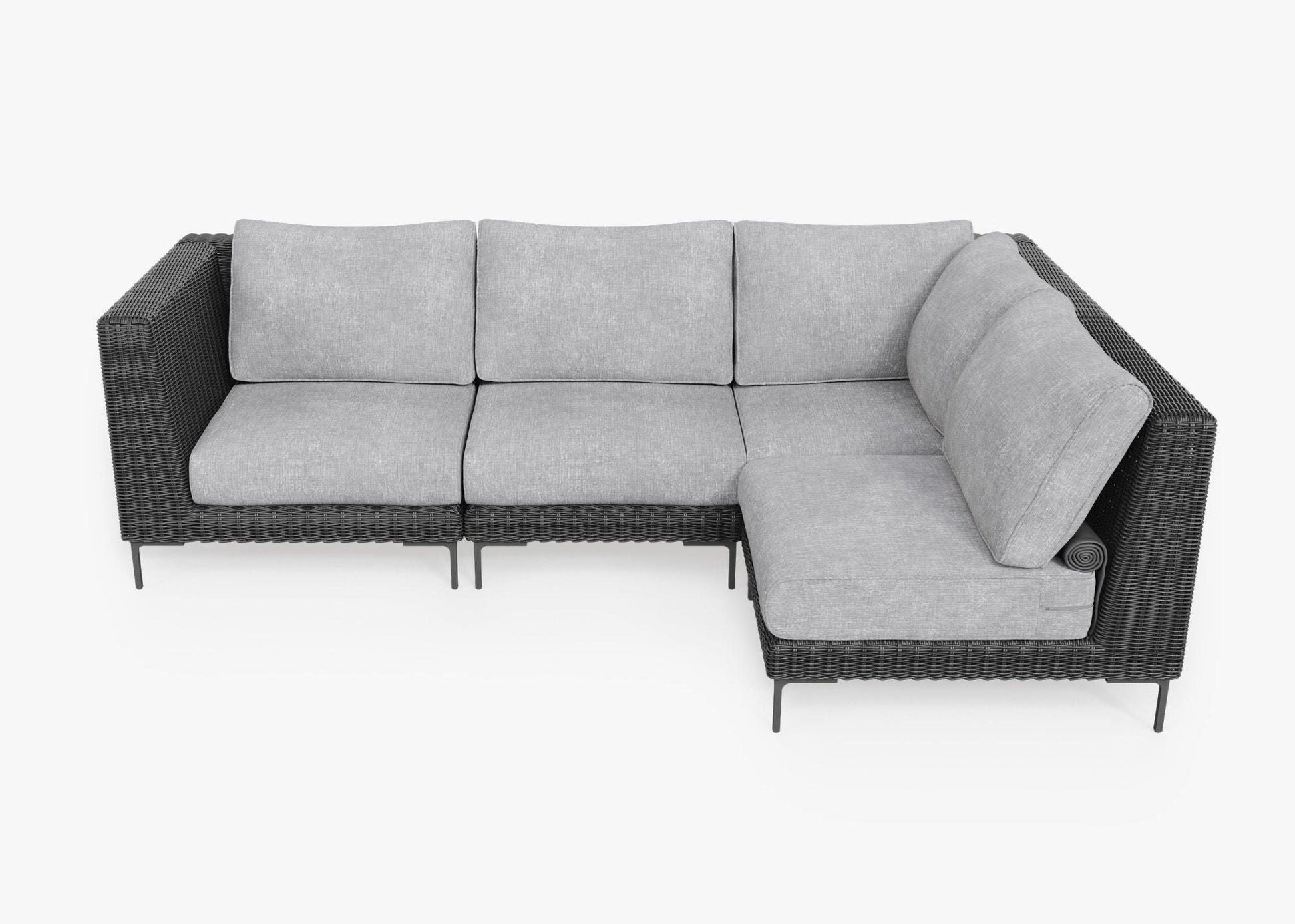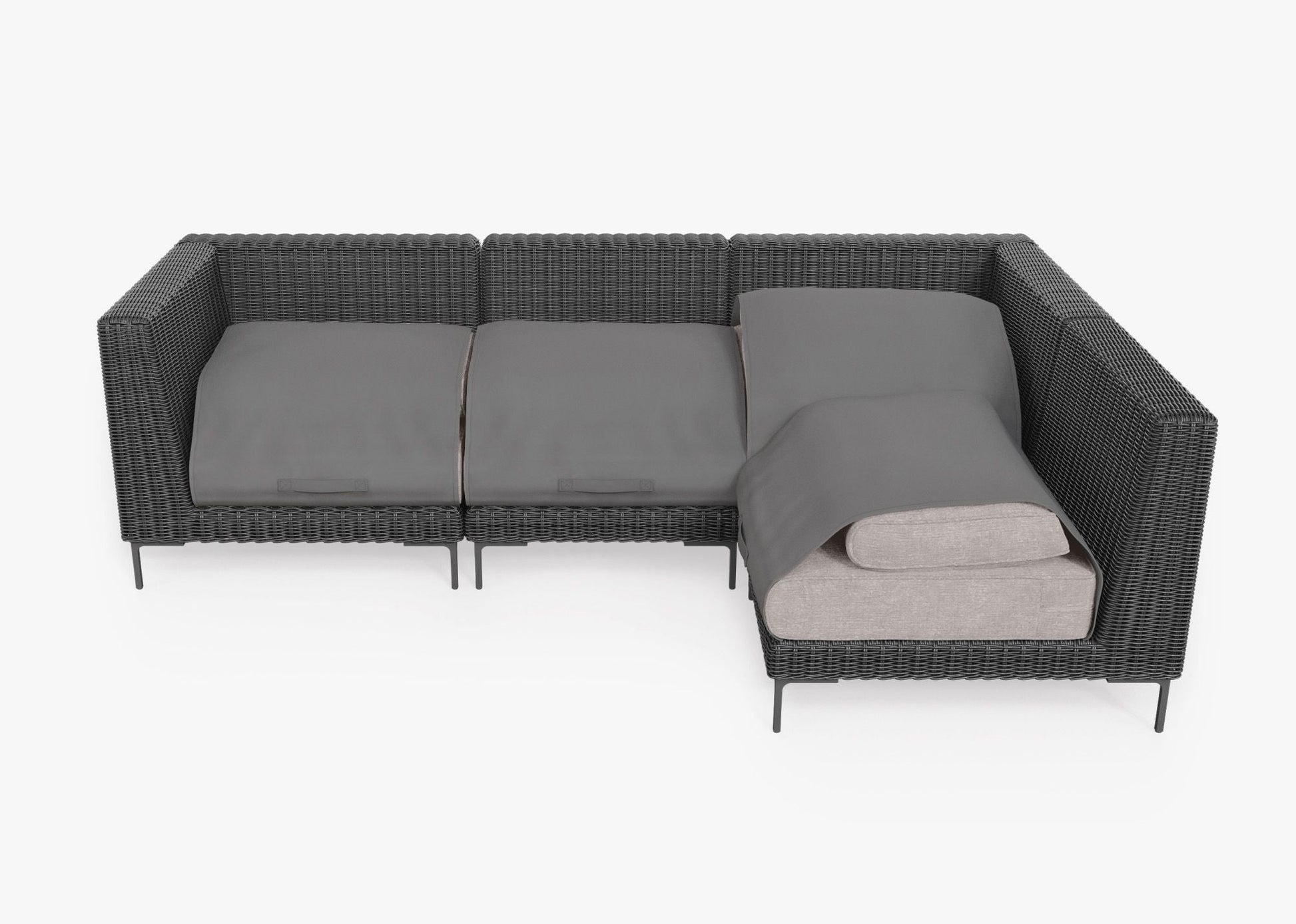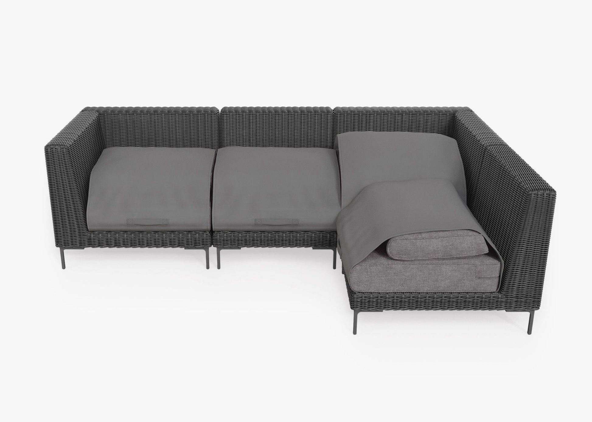 Profitez du confort de votre intérieur en extérieur. Élégant et résistant, le mobilier de jardin modulable Outer, conçu en résine tressée adaptée aux intempéries, vous invite à la détente sur des coussins en mousse à mémoire de forme d'un confort exceptionnel. La housse OuterShell® intégrée et facile à utiliser protège les coussins lorsqu'ils ne sont pas utilisés. Elle est dotée d'une fermeture Velcro pour la maintenir en place et d'une poignée pour un transport et un rangement pratiques. L'ensemble comprend 1 fauteuil d'angle, 2 fauteuils sans accoudoirs et 1 canapé d'angle, facilement modulables.