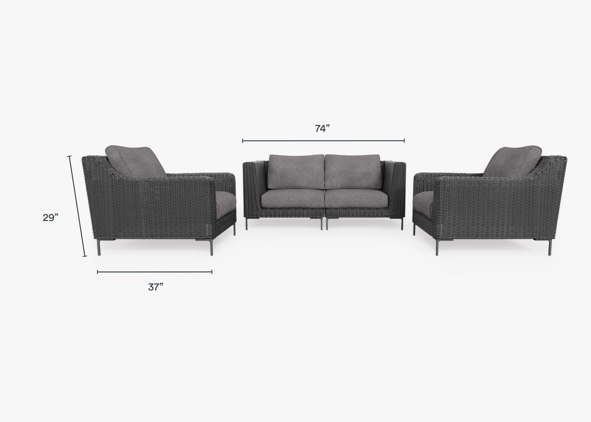 Canapé d'extérieur 4 places en osier noir avec fauteuils