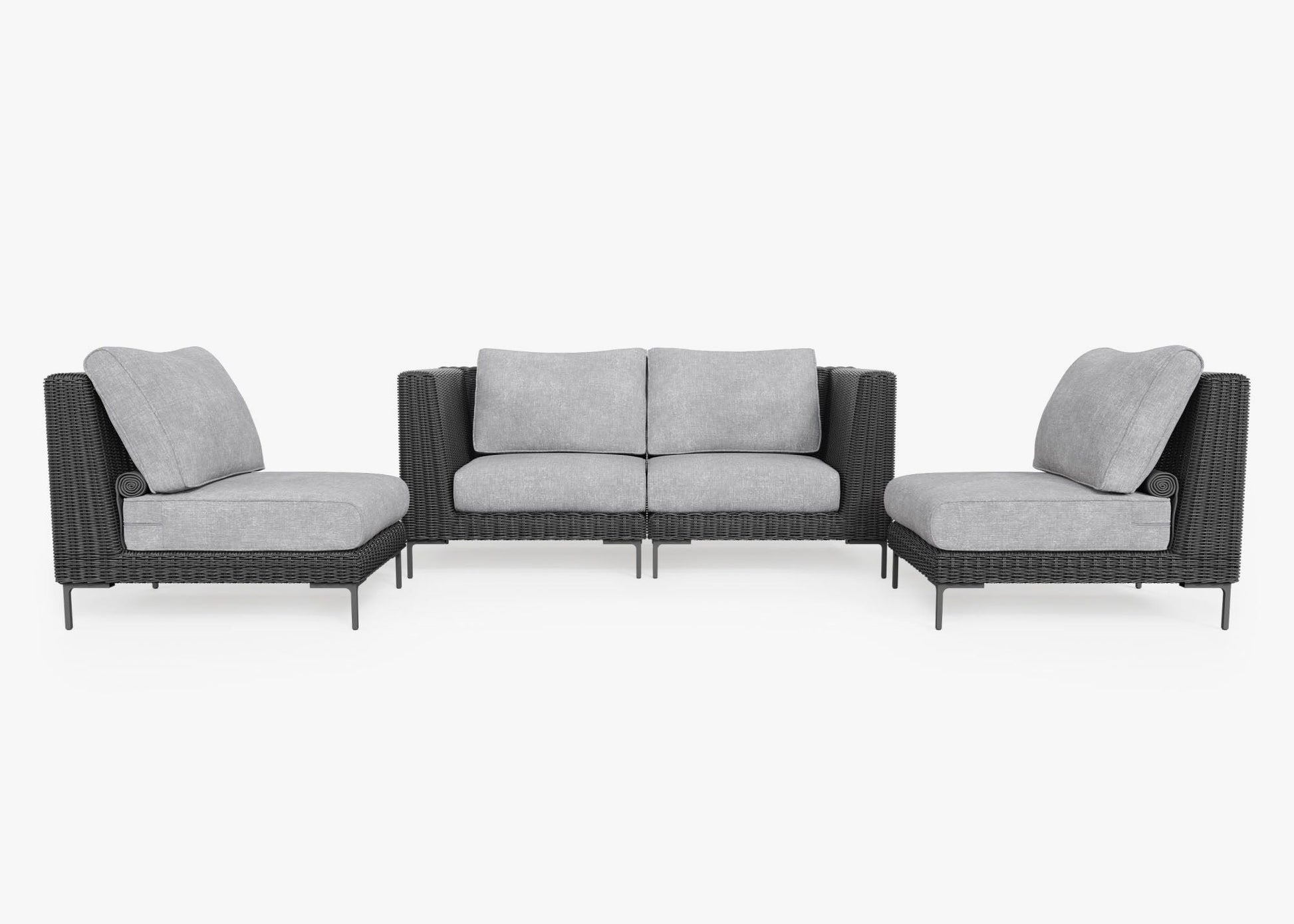 Canapé d'extérieur 4 places en résine tressée noire avec fauteuils sans accoudoirs