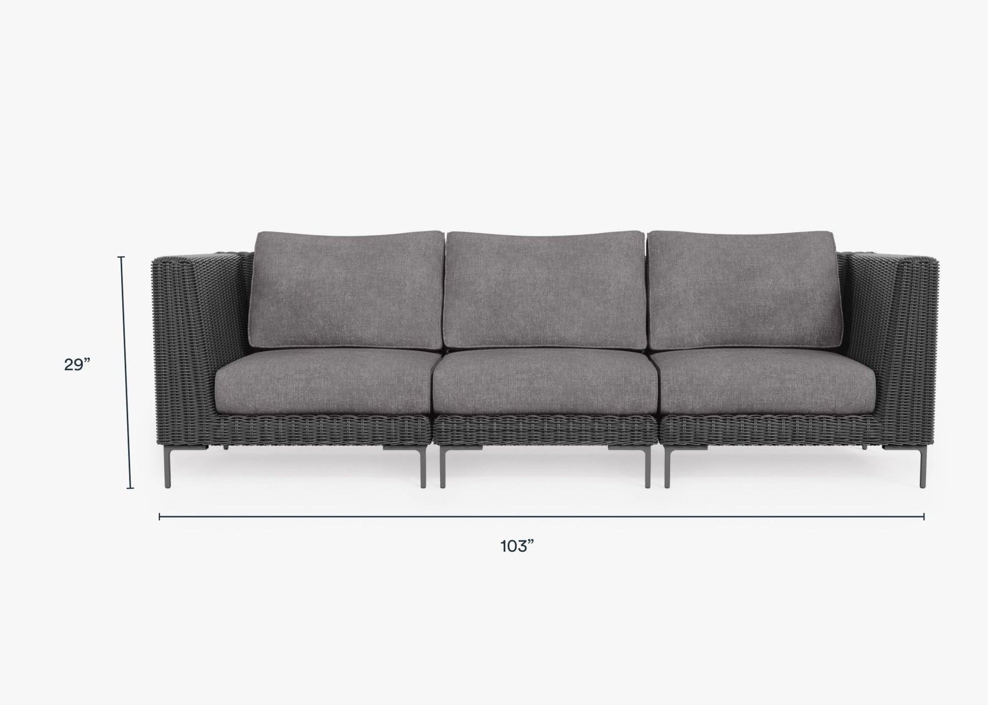 Canapé d'extérieur en osier noir - 3 places