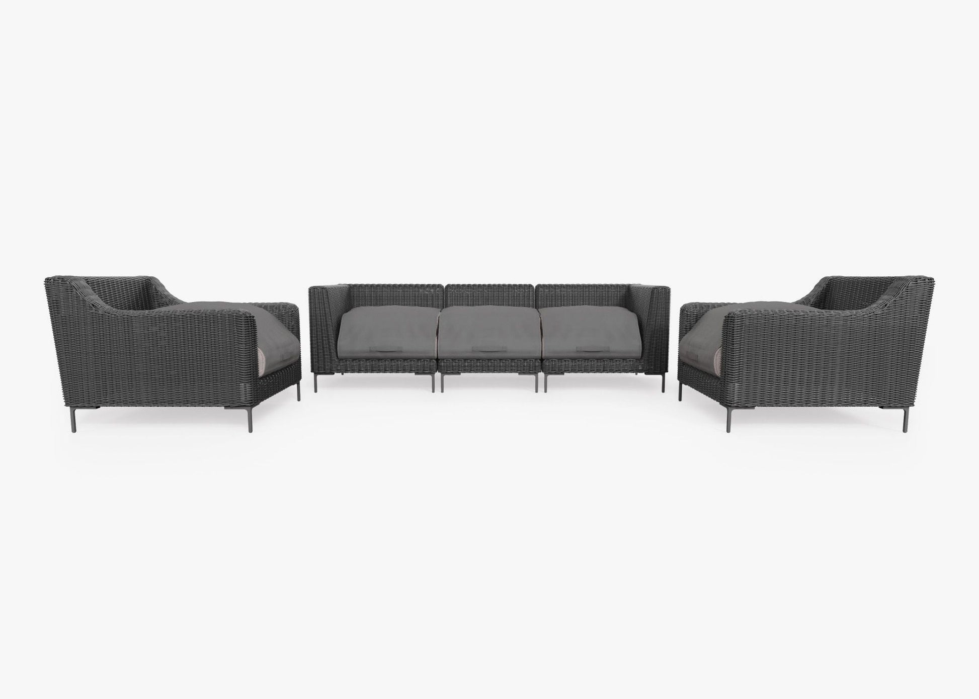 Canapé d'extérieur en résine tressée noire avec fauteuils - 5 places