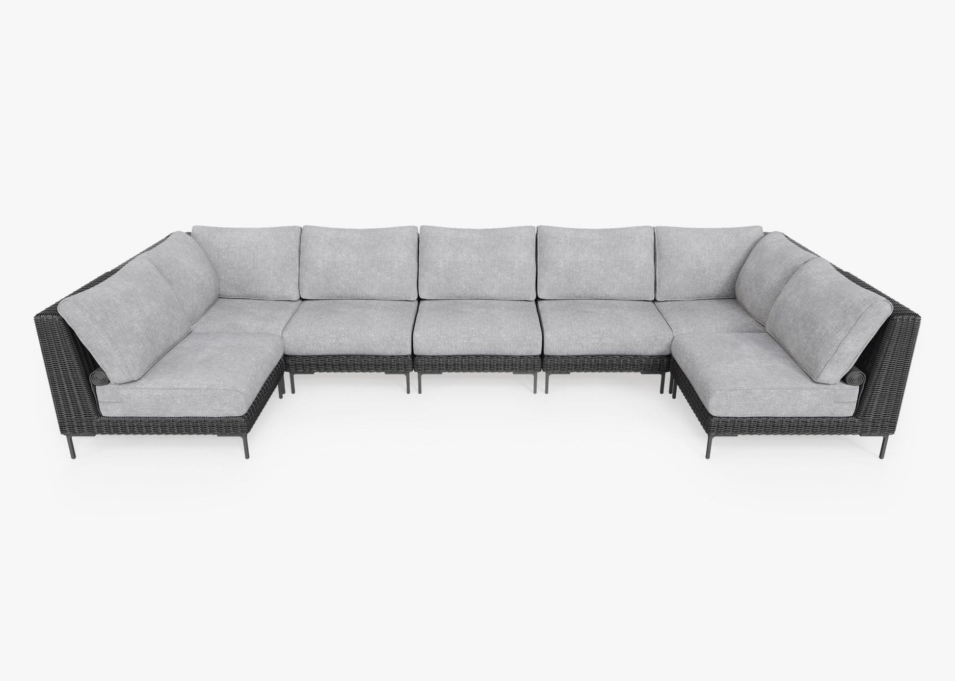 Profitez du confort de votre intérieur en extérieur. Élégant et résistant, le mobilier de jardin modulable Outer, conçu en résine tressée adaptée aux intempéries, vous invite à la détente sur des coussins en mousse à mémoire de forme d'un confort exceptionnel. La housse OuterShell® intégrée et facile à utiliser protège les coussins lorsqu'ils ne sont pas utilisés. Elle est dotée d'une fermeture Velcro pour la maintenir en place et d'une poignée pour un transport et un rangement pratiques. L'ensemble comprend 2 fauteuils modulables et 5 chaises sans accoudoirs, facilement reconfigurables.