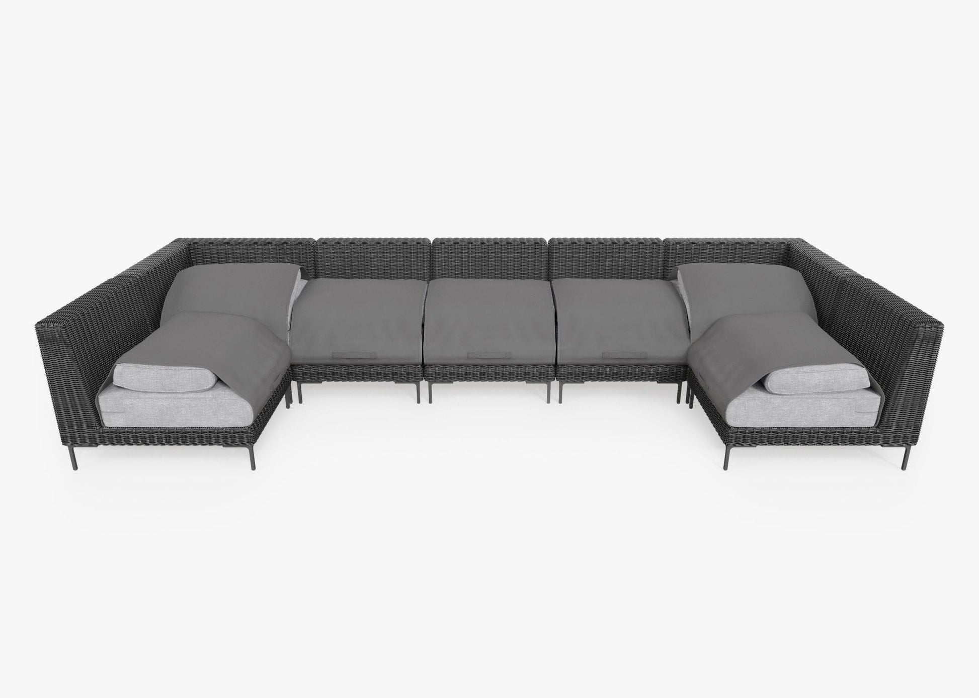 Canapé d'angle d'extérieur en résine tressée noire en forme de U - 7 places