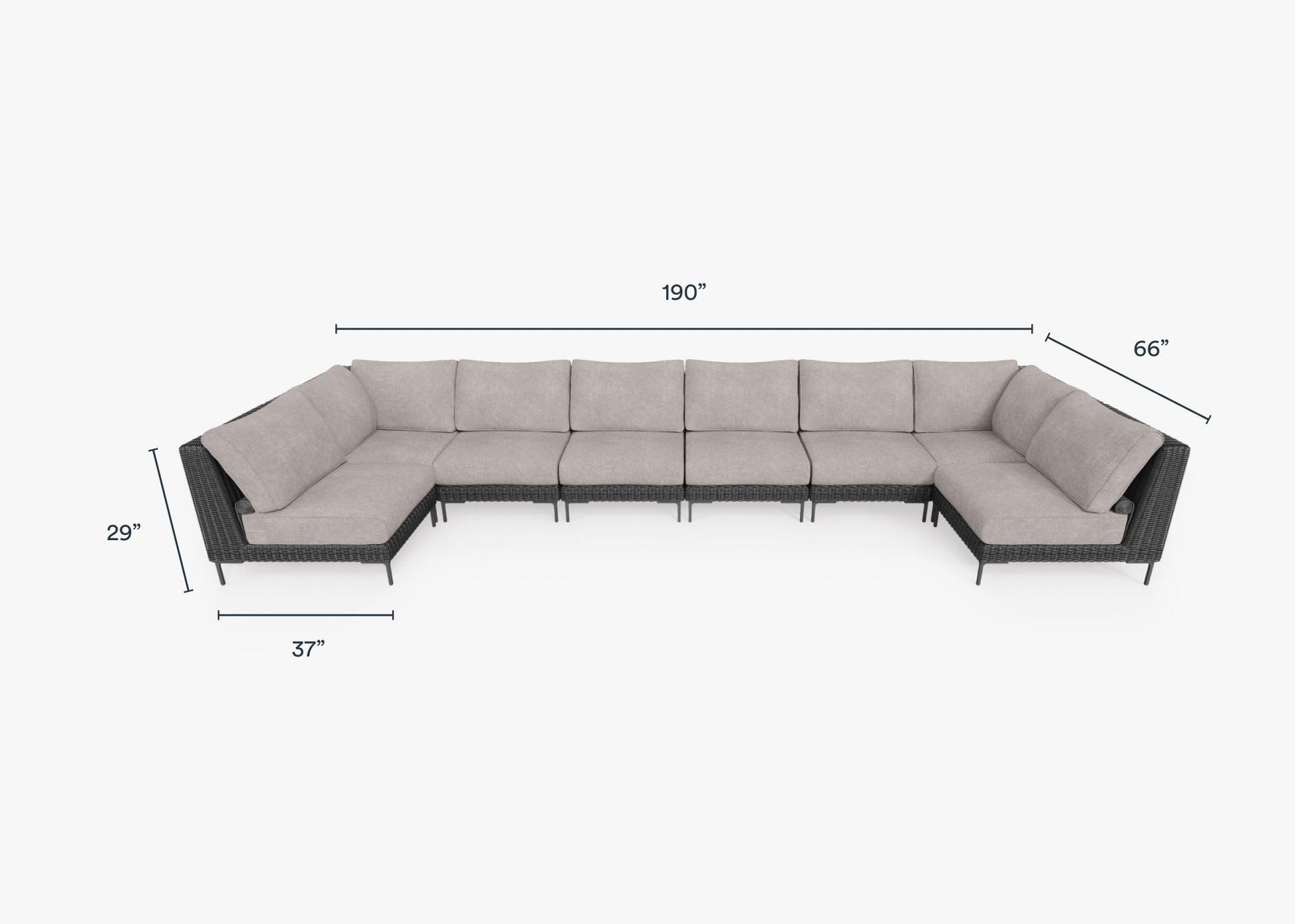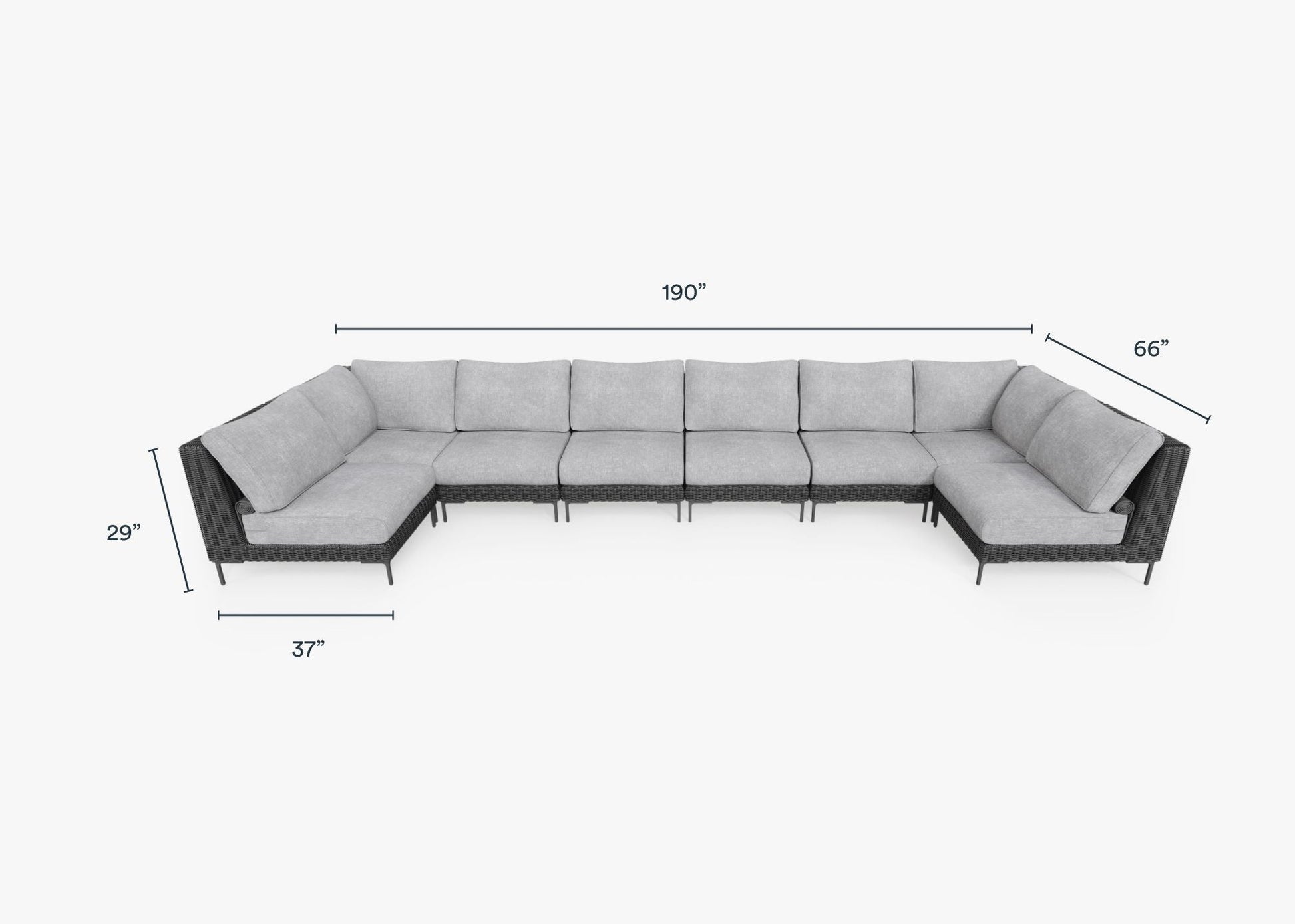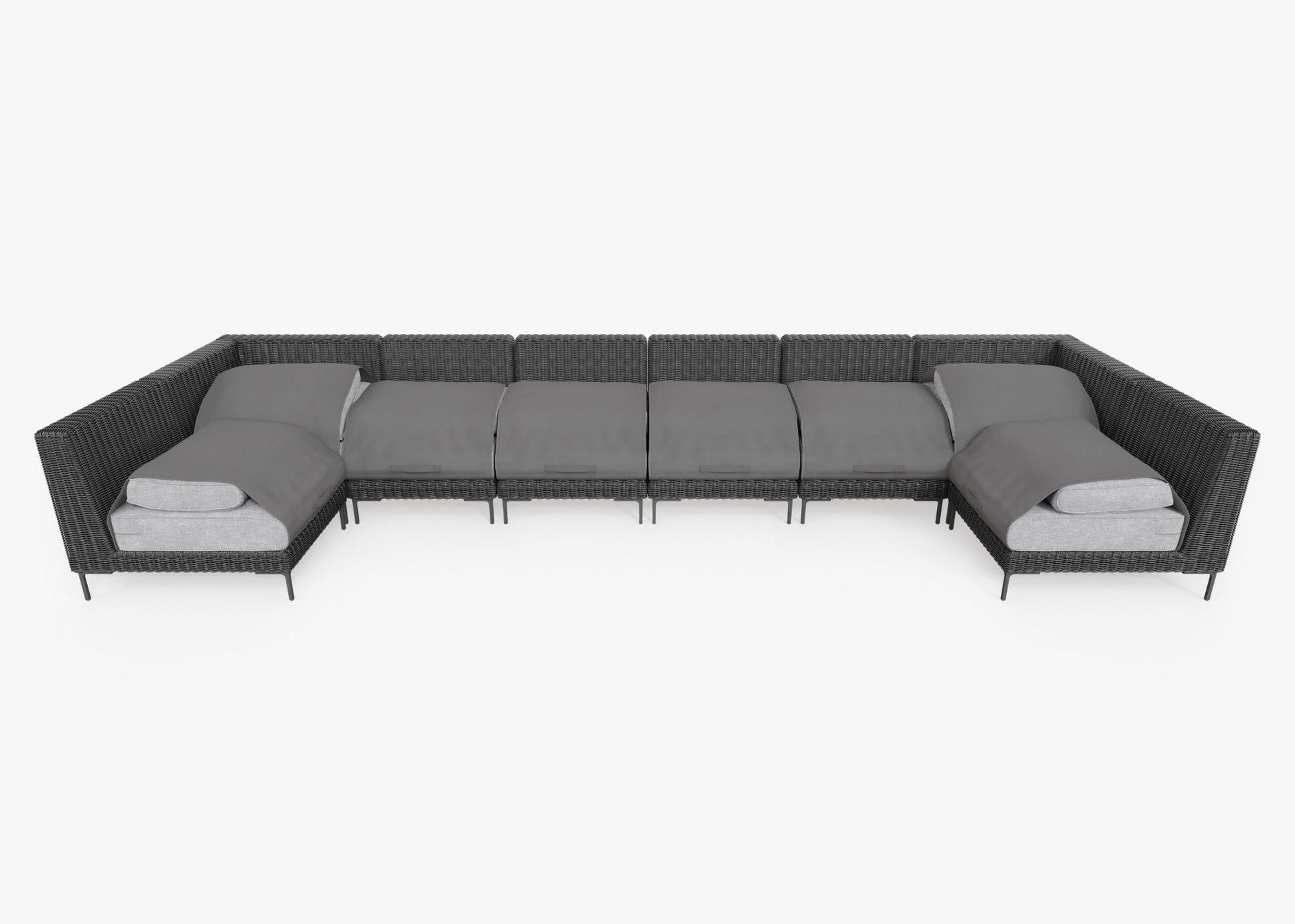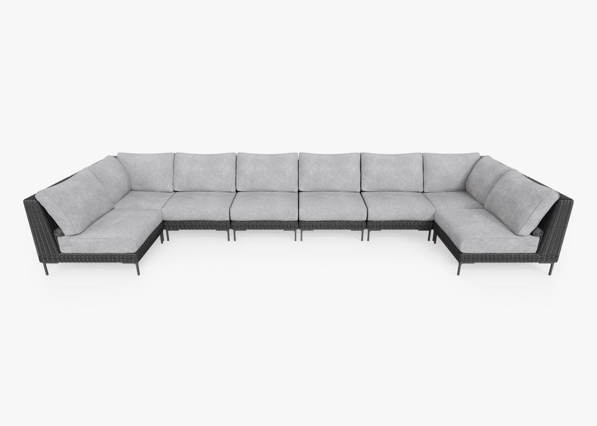 Canapé d'angle d'extérieur en résine tressée noire en forme de U - 8 places