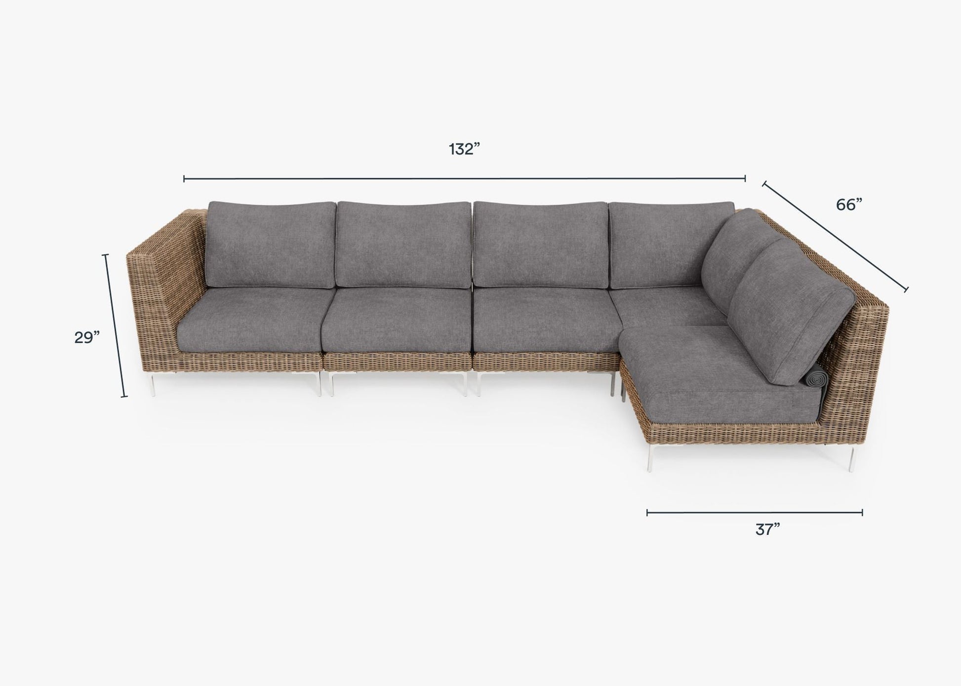 Canapé d'angle d'extérieur en résine tressée marron - 5 places