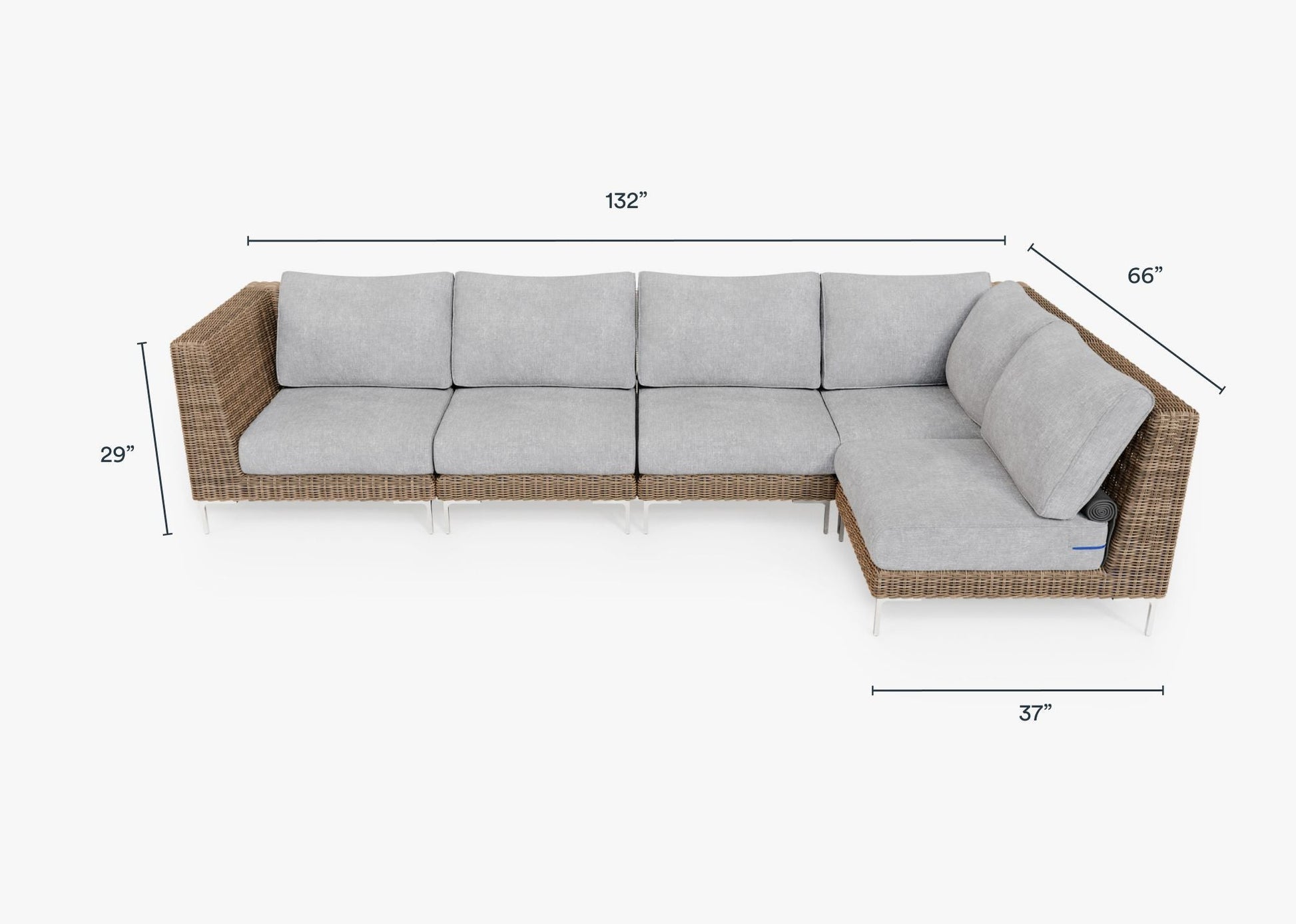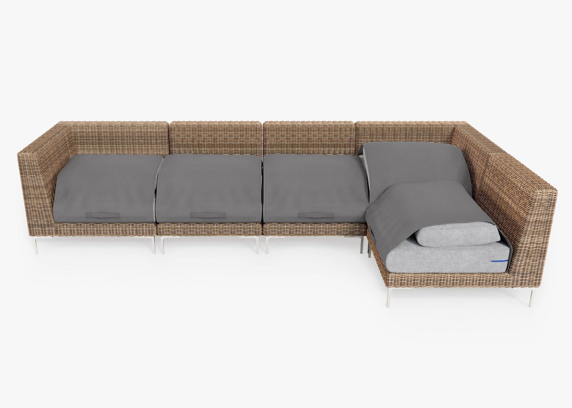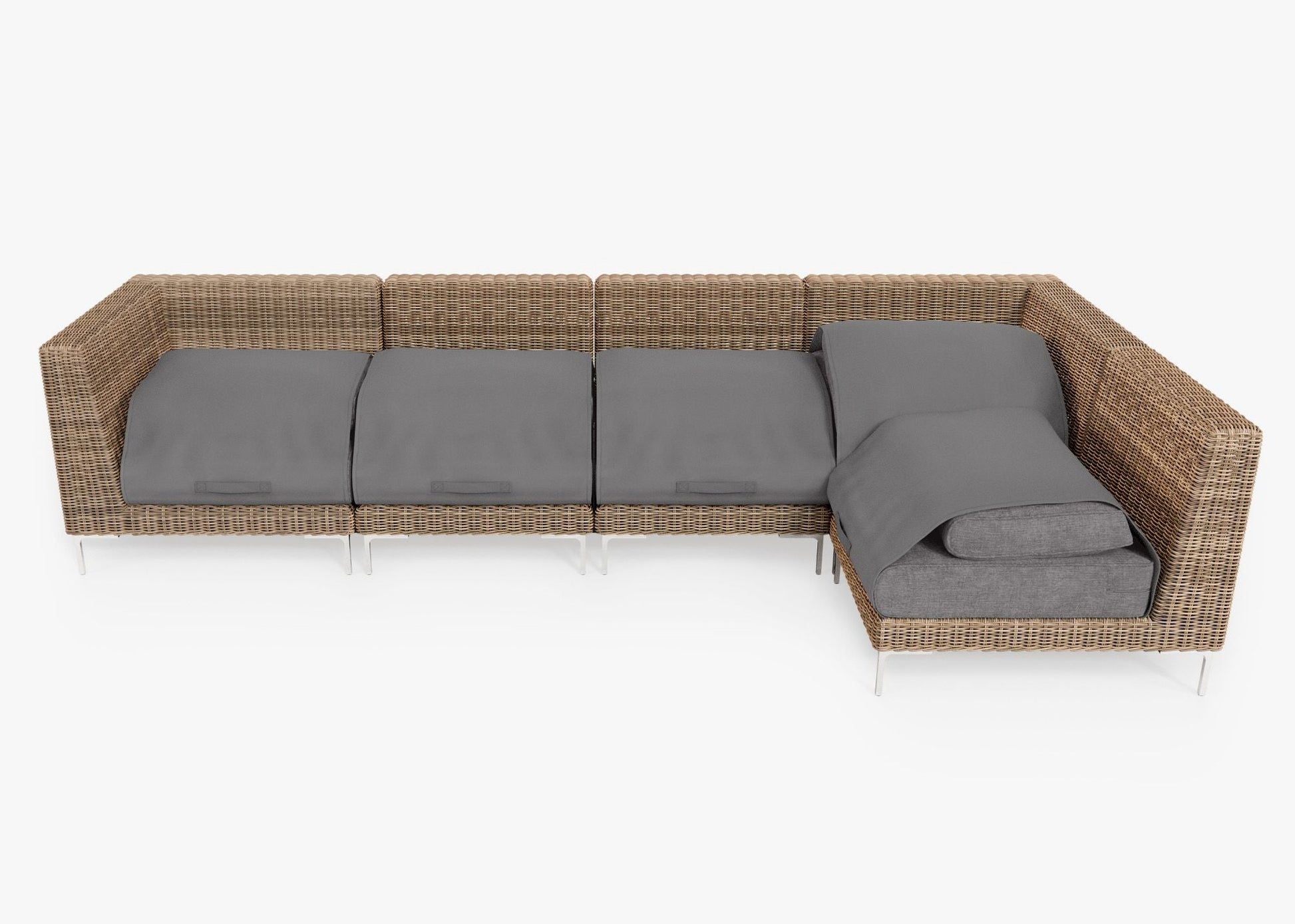 Profitez du confort de votre intérieur en extérieur. Élégant et résistant, le mobilier de jardin modulable Outer, conçu en résine tressée adaptée aux intempéries, vous invite à la détente sur des coussins en mousse à mémoire de forme d'un confort exceptionnel. La housse OuterShell® intégrée et facile à utiliser protège les coussins lorsqu'ils ne sont pas utilisés. Elle est dotée d'une fermeture Velcro pour un maintien optimal et d'une poignée pour un transport et un rangement pratiques. L'ensemble comprend 1 fauteuil d'angle, 1 fauteuil modulable et 3 chaises sans accoudoirs, facilement modulables.