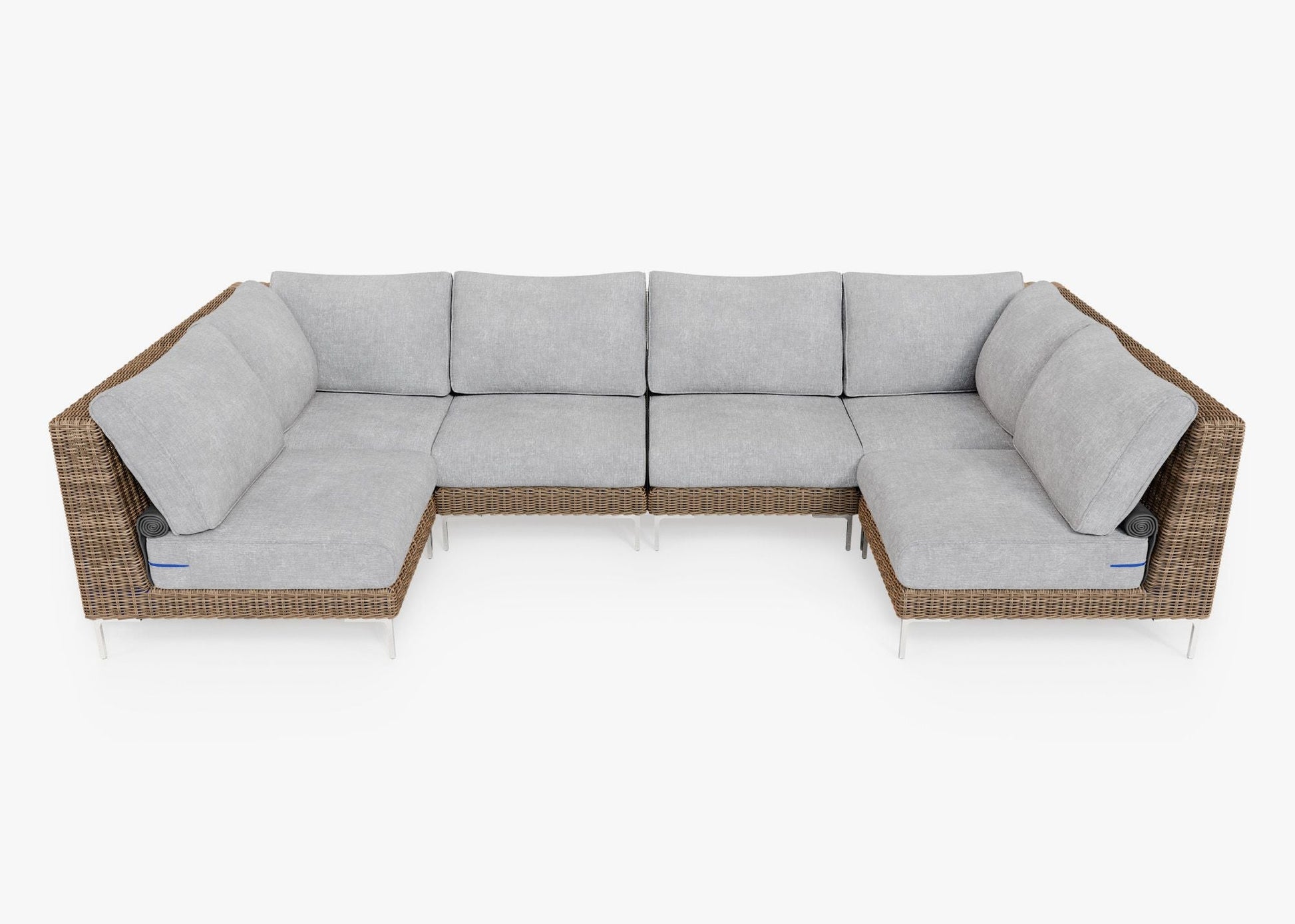 Profitez du confort de votre intérieur en extérieur. Élégant et résistant, le mobilier de jardin modulable Outer, conçu en résine tressée adaptée aux intempéries, vous invite à la détente sur des coussins en mousse à mémoire de forme d'un confort exceptionnel. La housse OuterShell® intégrée et facile à utiliser protège les coussins lorsqu'ils ne sont pas utilisés. Elle est dotée d'une fermeture Velcro pour la maintenir en place et d'une poignée pour un transport et un rangement pratiques. L'ensemble comprend 2 fauteuils modulables et 4 chaises sans accoudoirs, facilement reconfigurables.