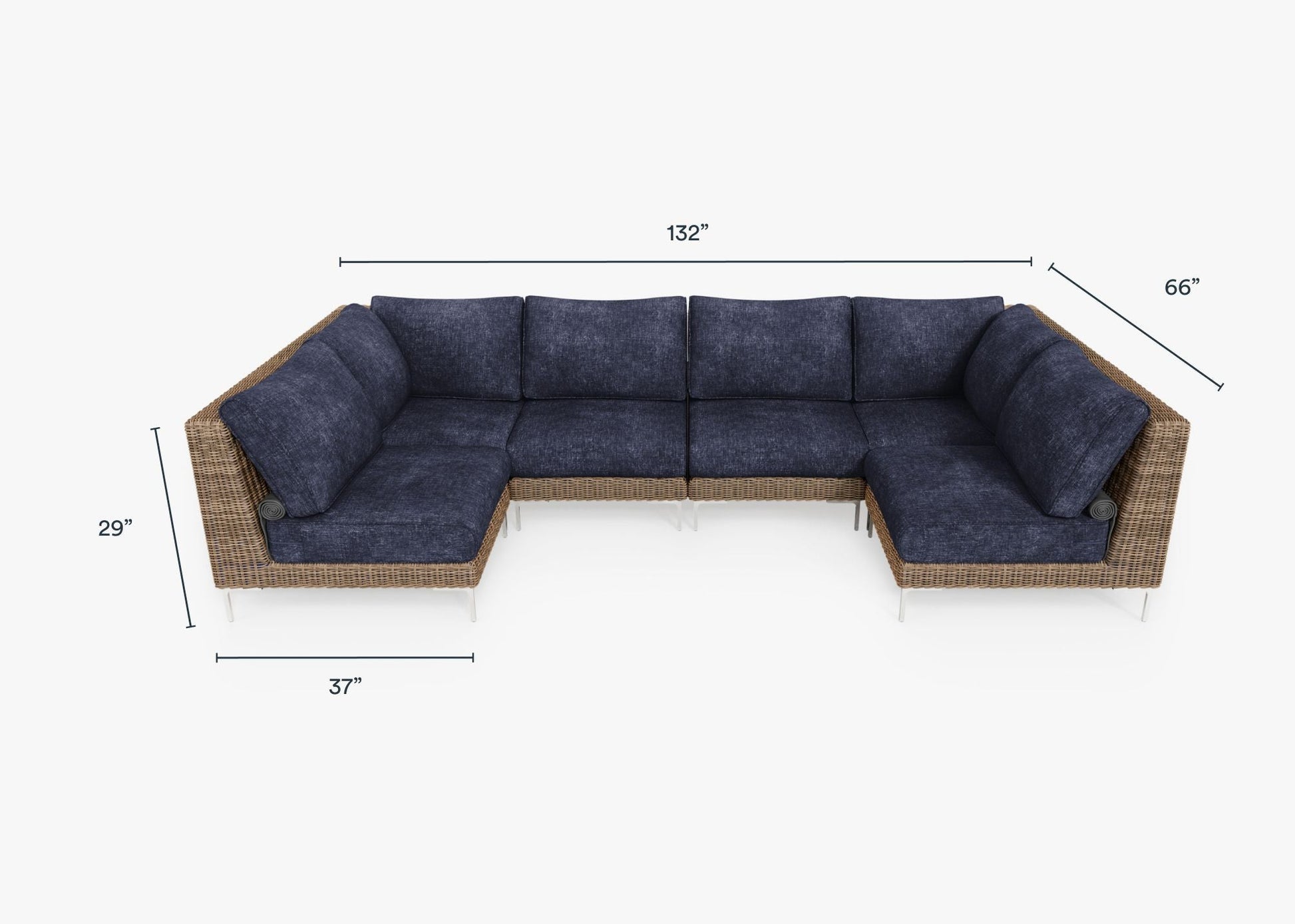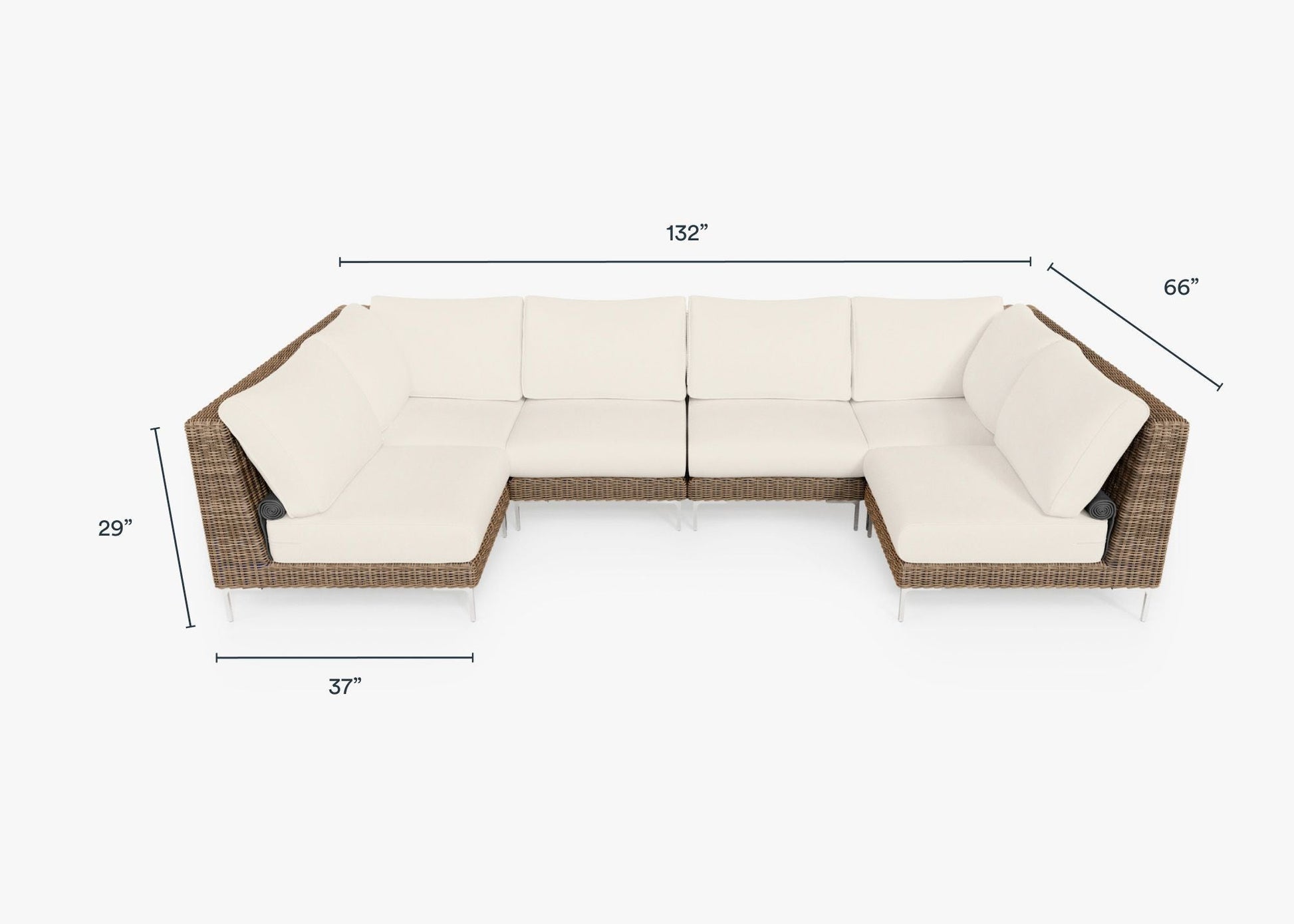 Canapé d'angle d'extérieur en osier marron en forme de U - 6 places