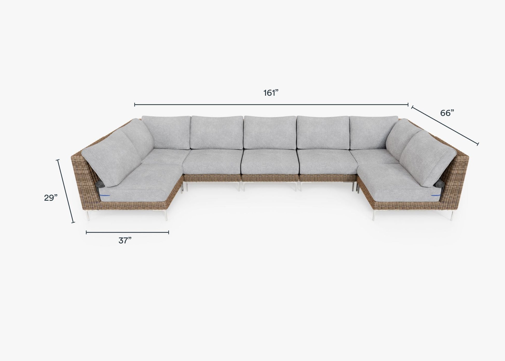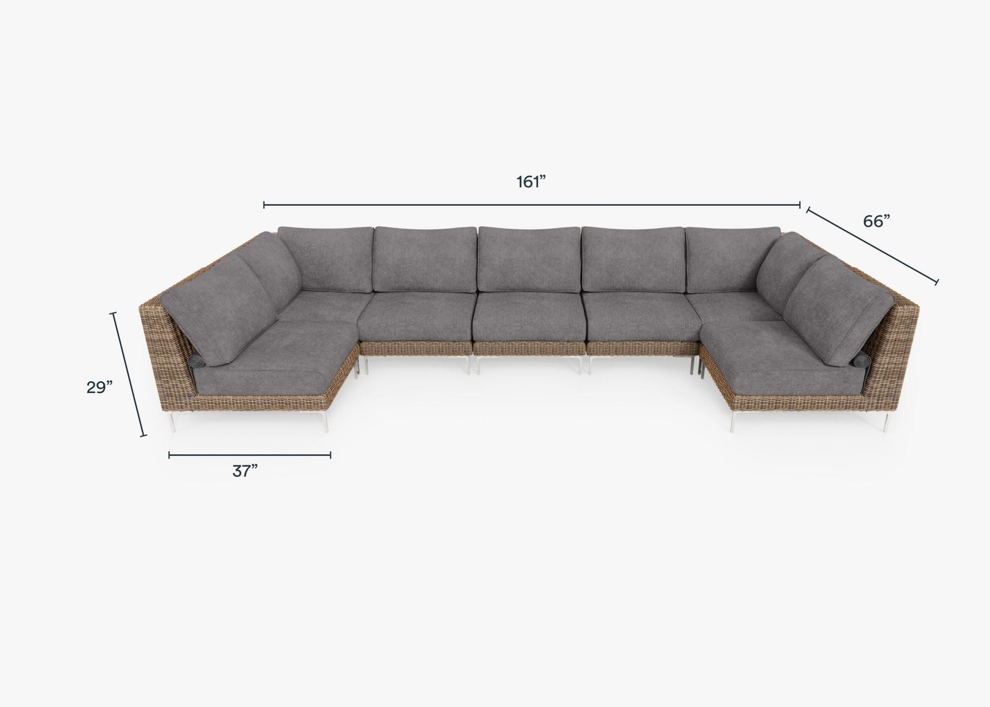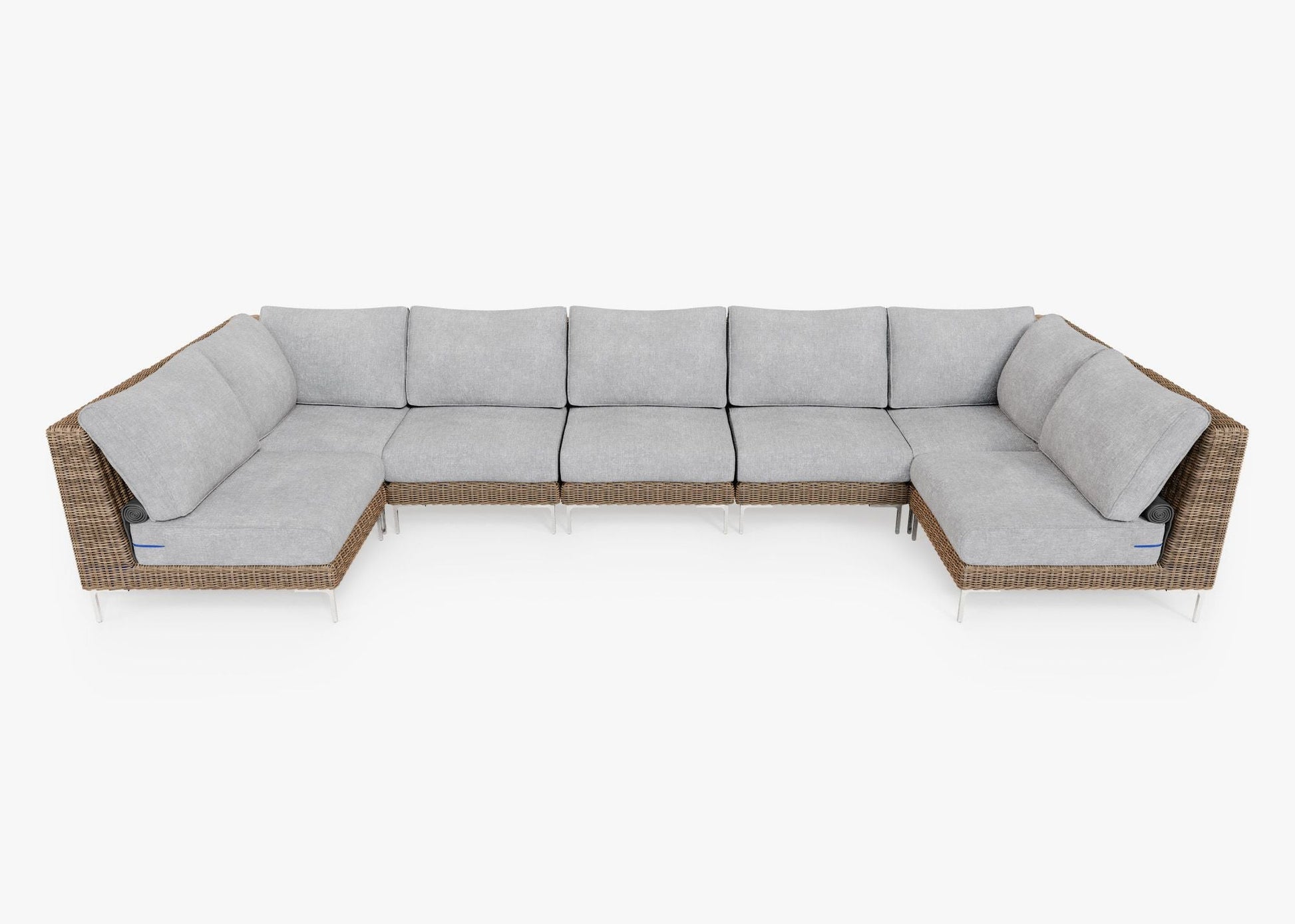 Profitez du confort de votre intérieur en extérieur. Élégant et résistant, le mobilier de jardin modulable Outer, conçu en résine tressée adaptée aux intempéries, vous invite à la détente sur des coussins en mousse à mémoire de forme d'un confort exceptionnel. La housse OuterShell® intégrée et facile à utiliser protège les coussins lorsqu'ils ne sont pas utilisés. Elle est dotée d'une fermeture Velcro pour la maintenir en place et d'une poignée pour un transport et un rangement pratiques. L'ensemble comprend 2 fauteuils modulables et 5 chaises sans accoudoirs, facilement reconfigurables.