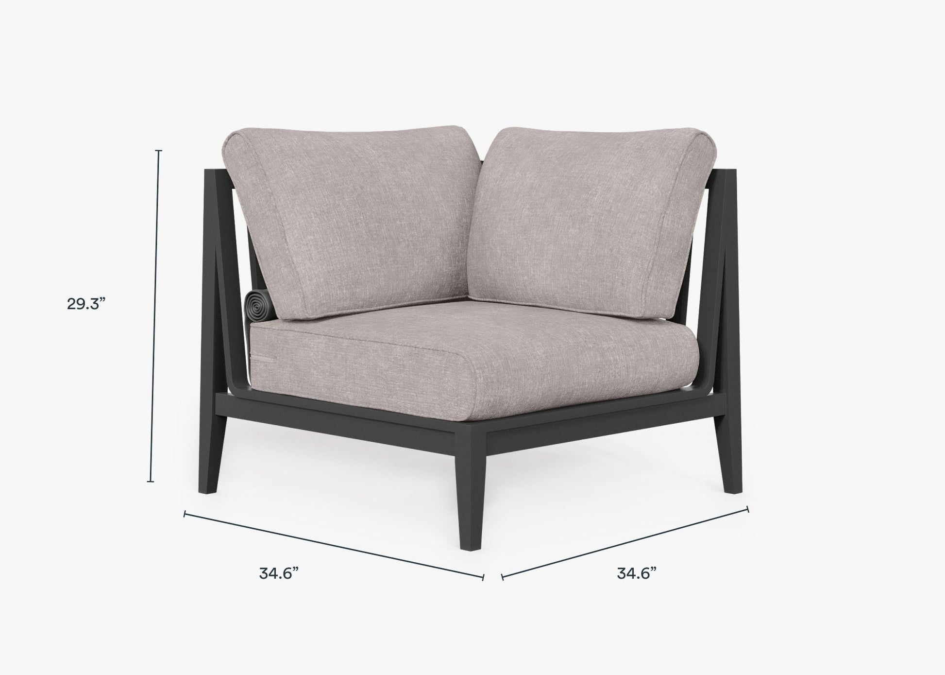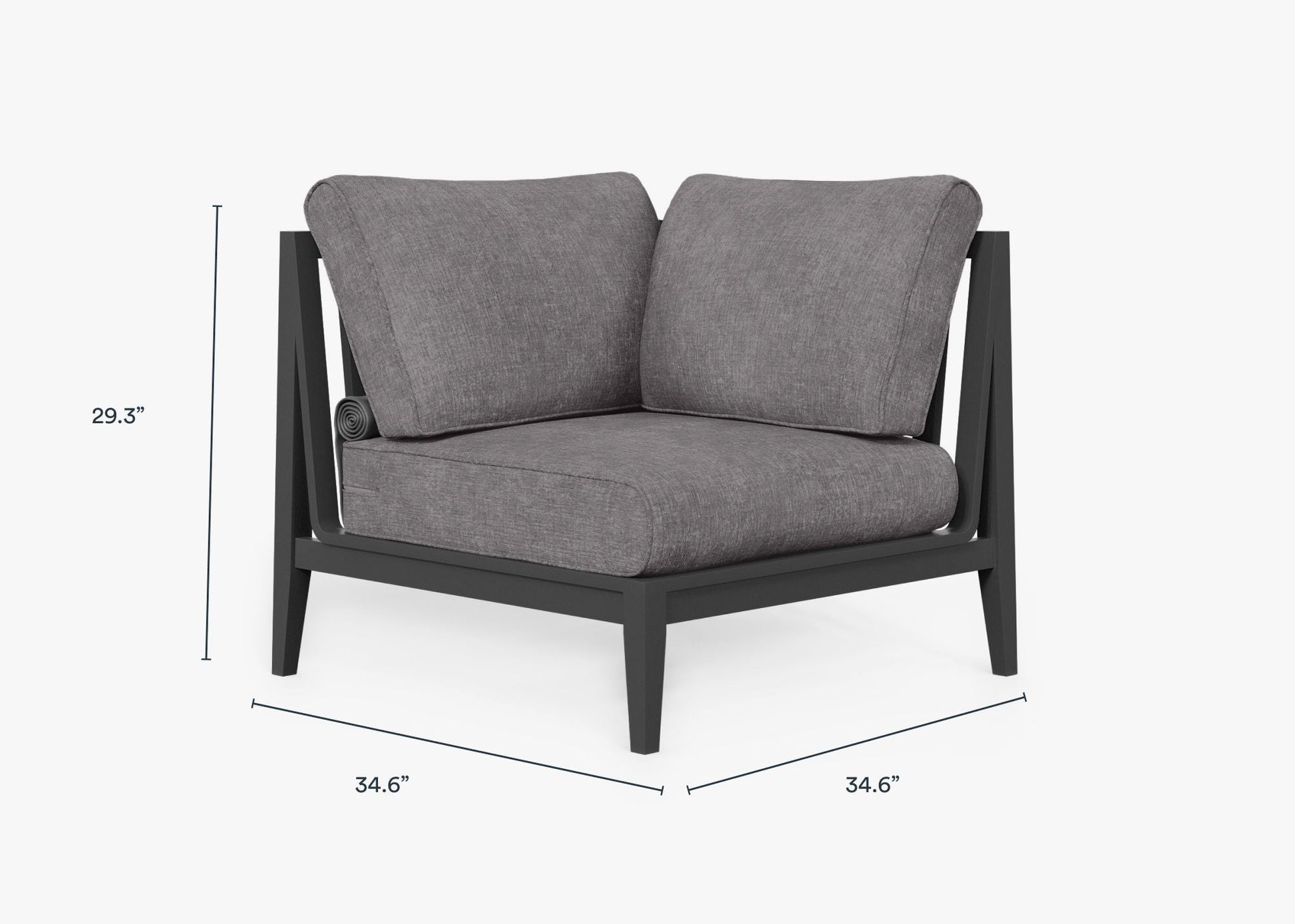 Profitez du confort de votre intérieur en extérieur. Élégant, léger et conçu pour durer grâce à sa structure en aluminium résistant aux intempéries, le mobilier modulaire Outer vous invite à la détente sur des coussins en mousse à mémoire de forme d'un confort exceptionnel. La housse OuterShell® intégrée et facile à utiliser protège les coussins lorsqu'ils ne sont pas utilisés. Elle est dotée d'une fermeture Velcro pour la maintenir en place et d'une poignée pour un transport et un rangement pratiques. Aucun montage requis. Le fauteuil d'angle complète le côté gauche de votre canapé.