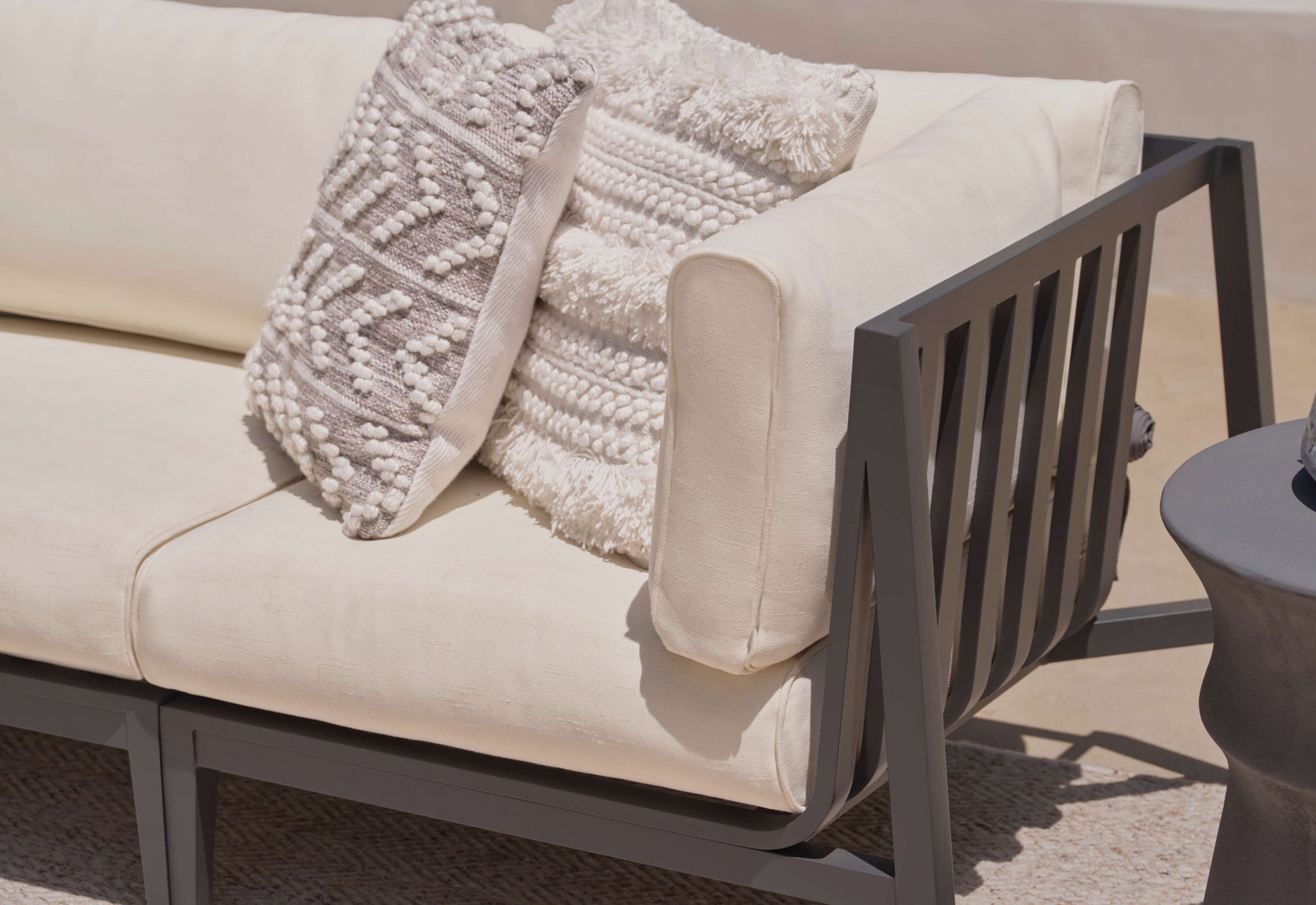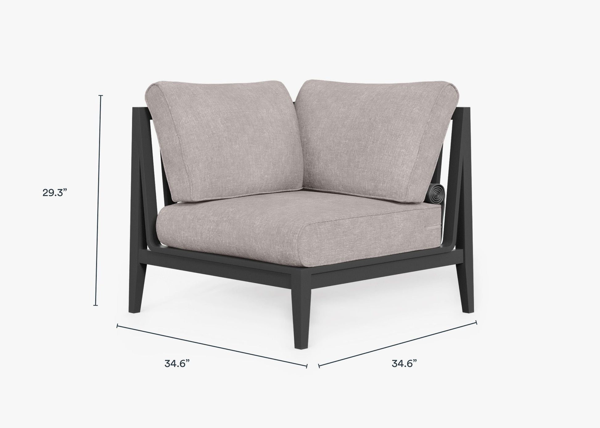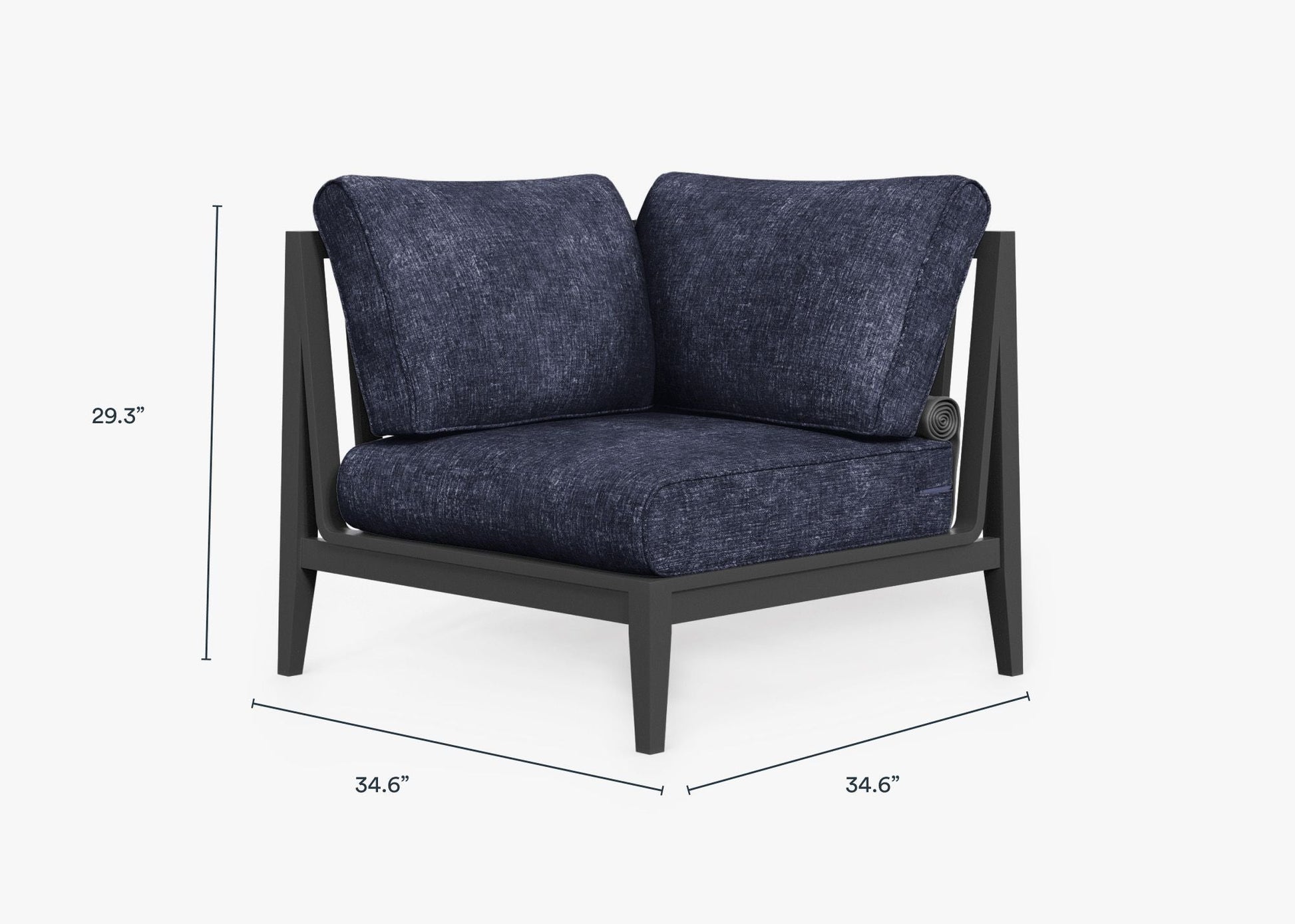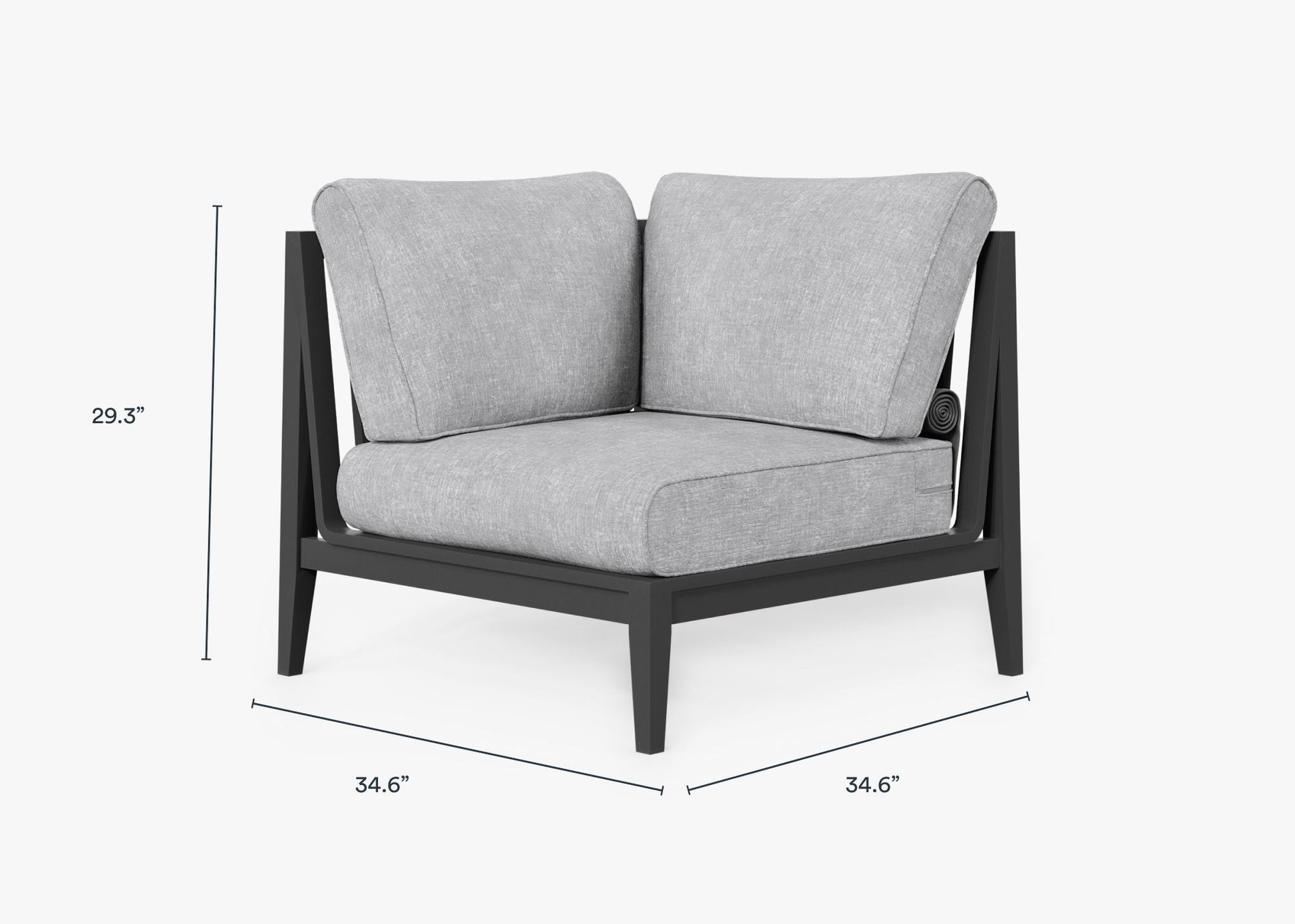 Profitez du confort de votre intérieur en extérieur. Élégant, léger et conçu pour durer grâce à sa structure en aluminium résistant aux intempéries, le mobilier modulaire Outer vous invite à la détente sur des coussins en mousse à mémoire de forme d'un confort exceptionnel. La housse OuterShell® intégrée et facile à utiliser protège les coussins lorsqu'ils ne sont pas utilisés. Elle est dotée d'une fermeture Velcro pour la maintenir en place et d'une poignée pour un transport et un rangement pratiques. Aucun montage requis. Le fauteuil d'angle complète le côté droit de votre canapé.