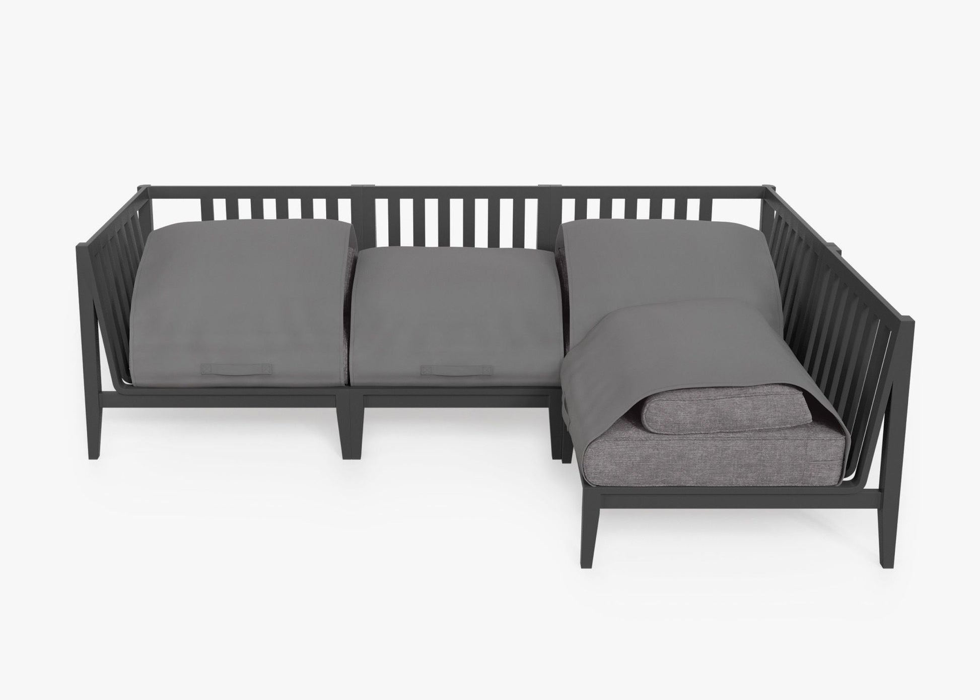 Profitez du confort de votre intérieur en extérieur. Élégant, léger et conçu pour durer grâce à sa structure en aluminium résistant aux intempéries, le mobilier modulable Outer vous invite à la détente sur des coussins en mousse à mémoire de forme d'un confort exceptionnel. La housse OuterShell® intégrée et facile à utiliser protège les coussins lorsqu'ils ne sont pas utilisés. Elle est dotée d'une fermeture Velcro pour la maintenir en place et d'une poignée pour un transport et un rangement aisés. L'ensemble comprend 2 fauteuils sans accoudoirs, 1 fauteuil d'angle et 1 canapé d'angle, facilement modulables.