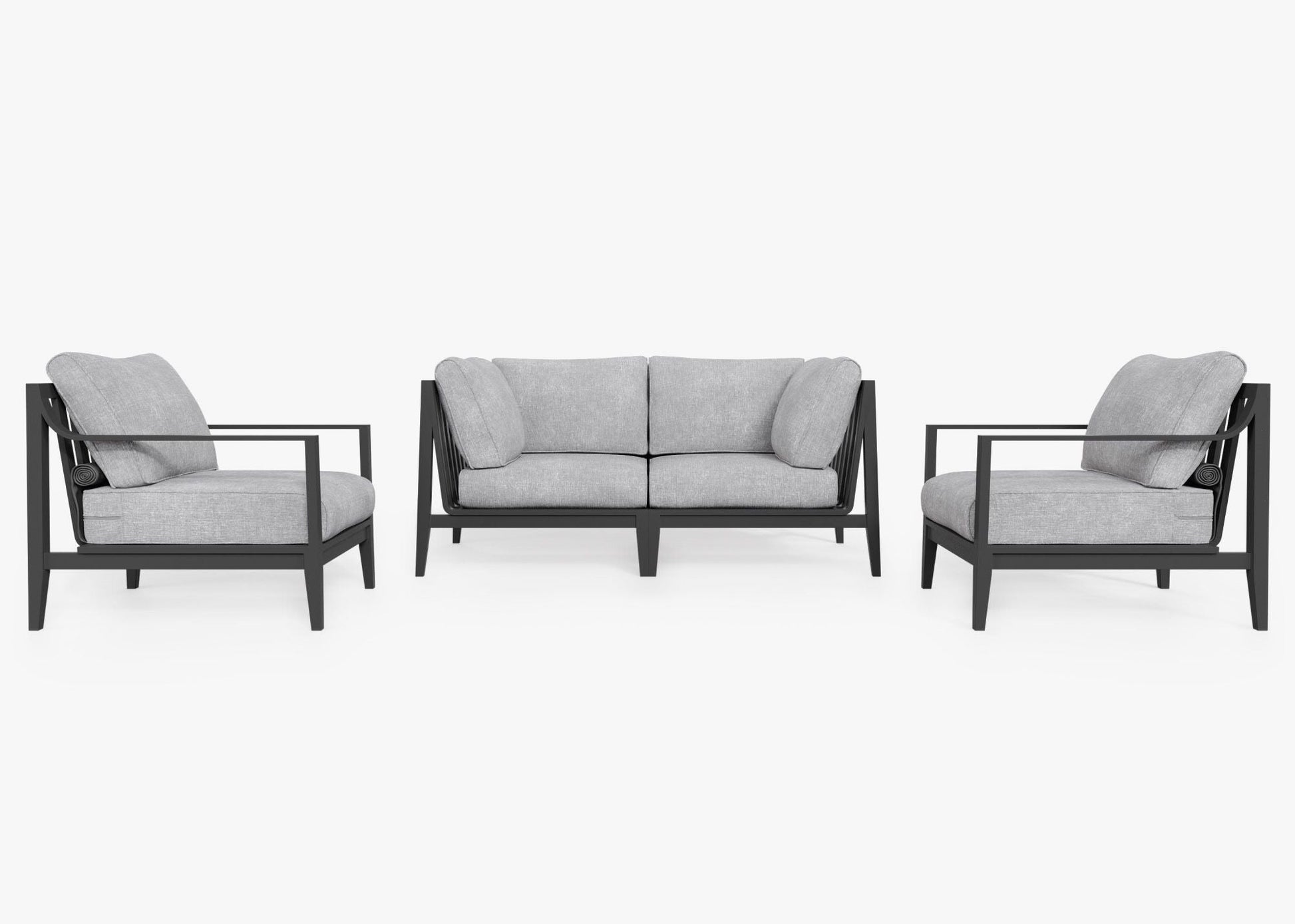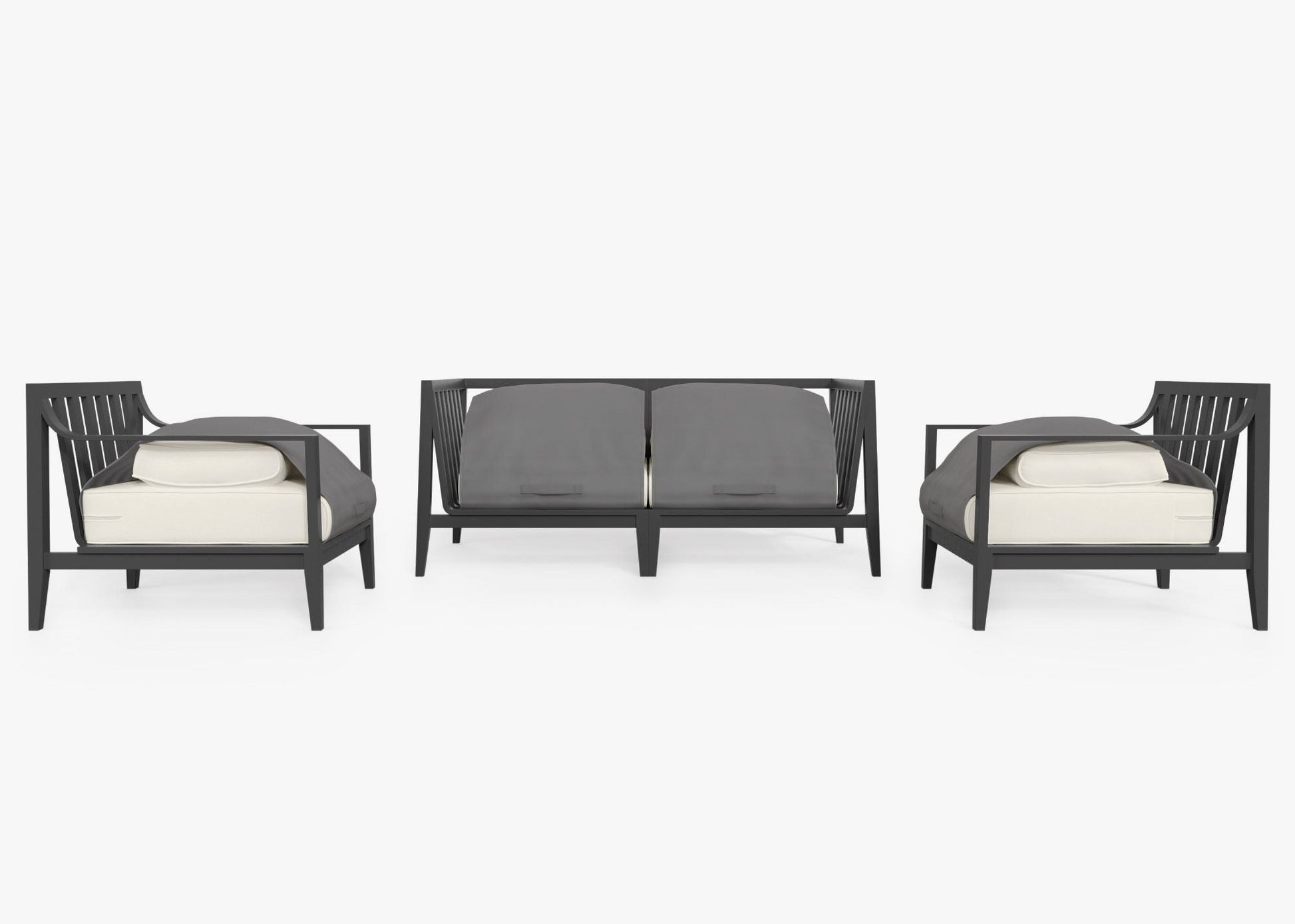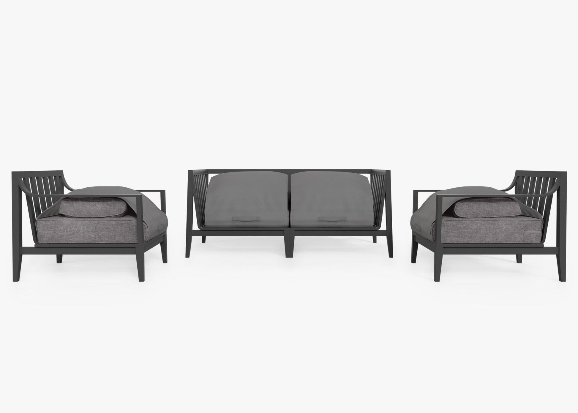 Canapé d'extérieur 4 places en aluminium anthracite avec accoudoirs