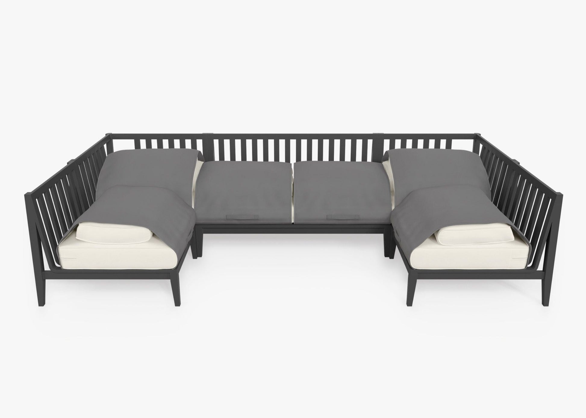 Canapé d'angle d'extérieur en aluminium anthracite en forme de U - 6 places