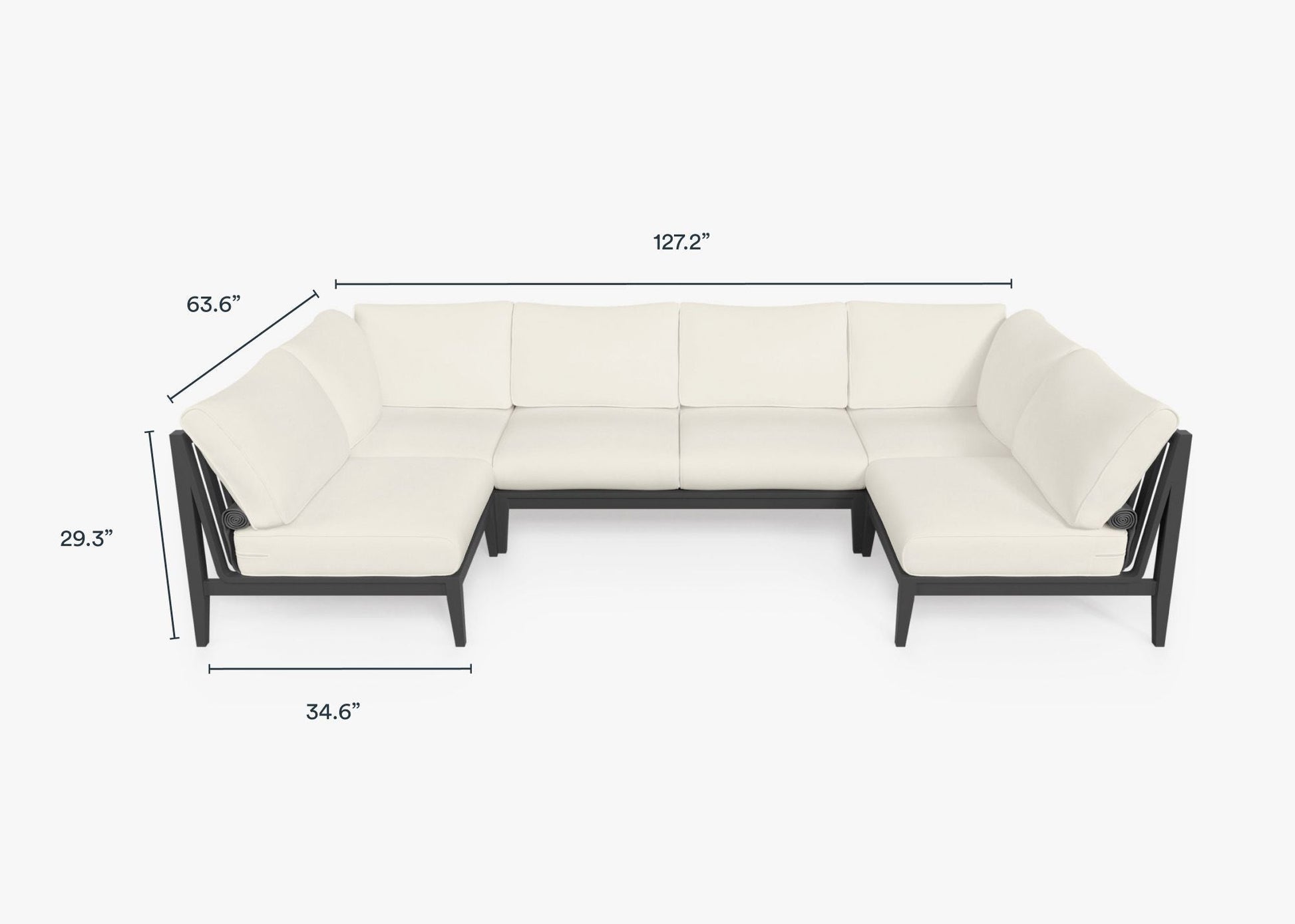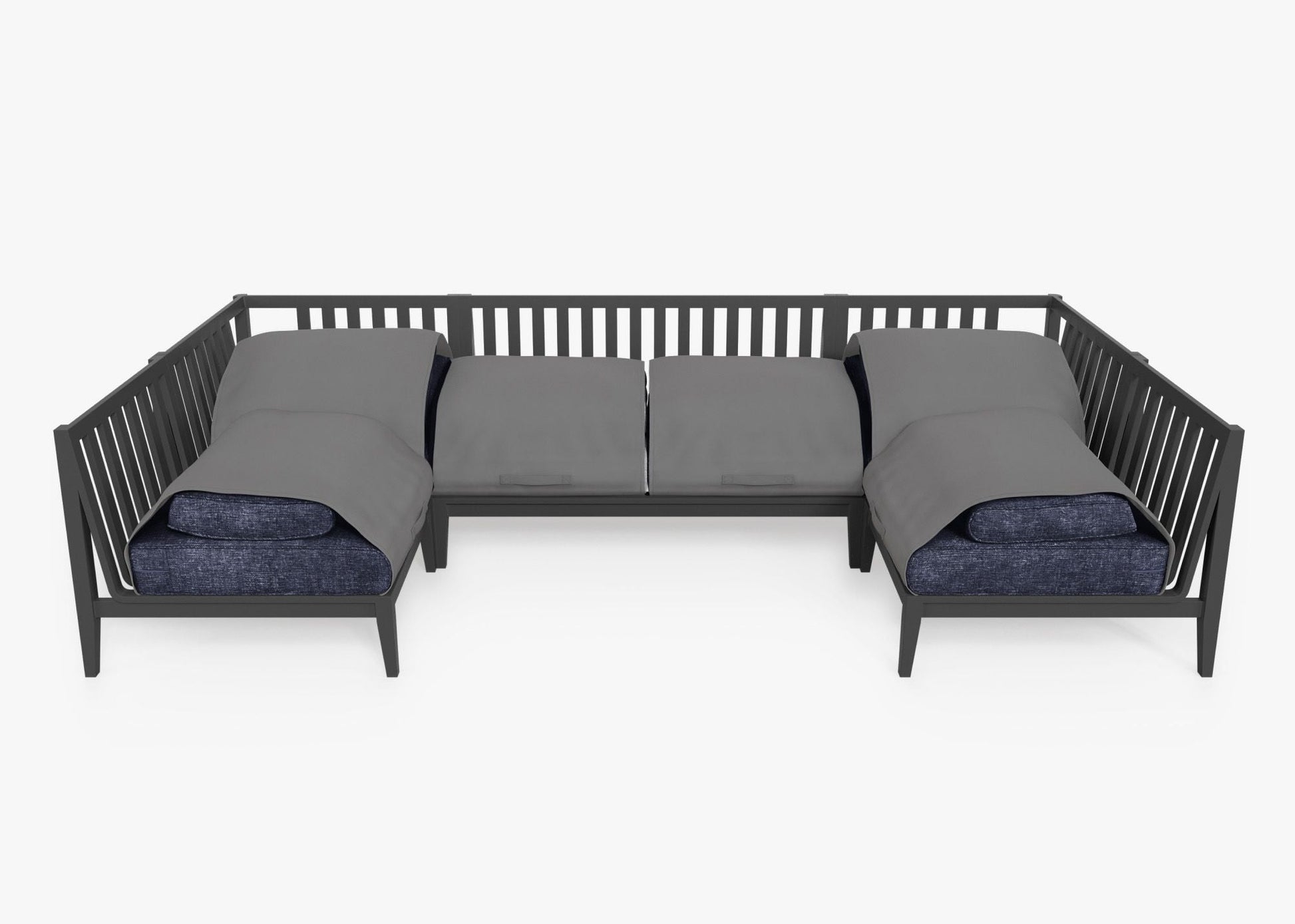 Profitez du confort de votre intérieur en extérieur. Élégant, léger et fabriqué en aluminium résistant aux intempéries, le mobilier modulaire Outer vous invite à la détente sur des coussins en mousse à mémoire de forme d'un confort exceptionnel. La housse OuterShell® intégrée et facile à utiliser protège les coussins lorsqu'ils ne sont pas utilisés. Elle est dotée d'une fermeture Velcro pour la maintenir en place et d'une poignée pour un transport et un rangement pratiques. L'ensemble comprend 1 canapé deux places sans accoudoirs, 2 fauteuils d'angle et 2 chaises sans accoudoirs, facilement modulables.