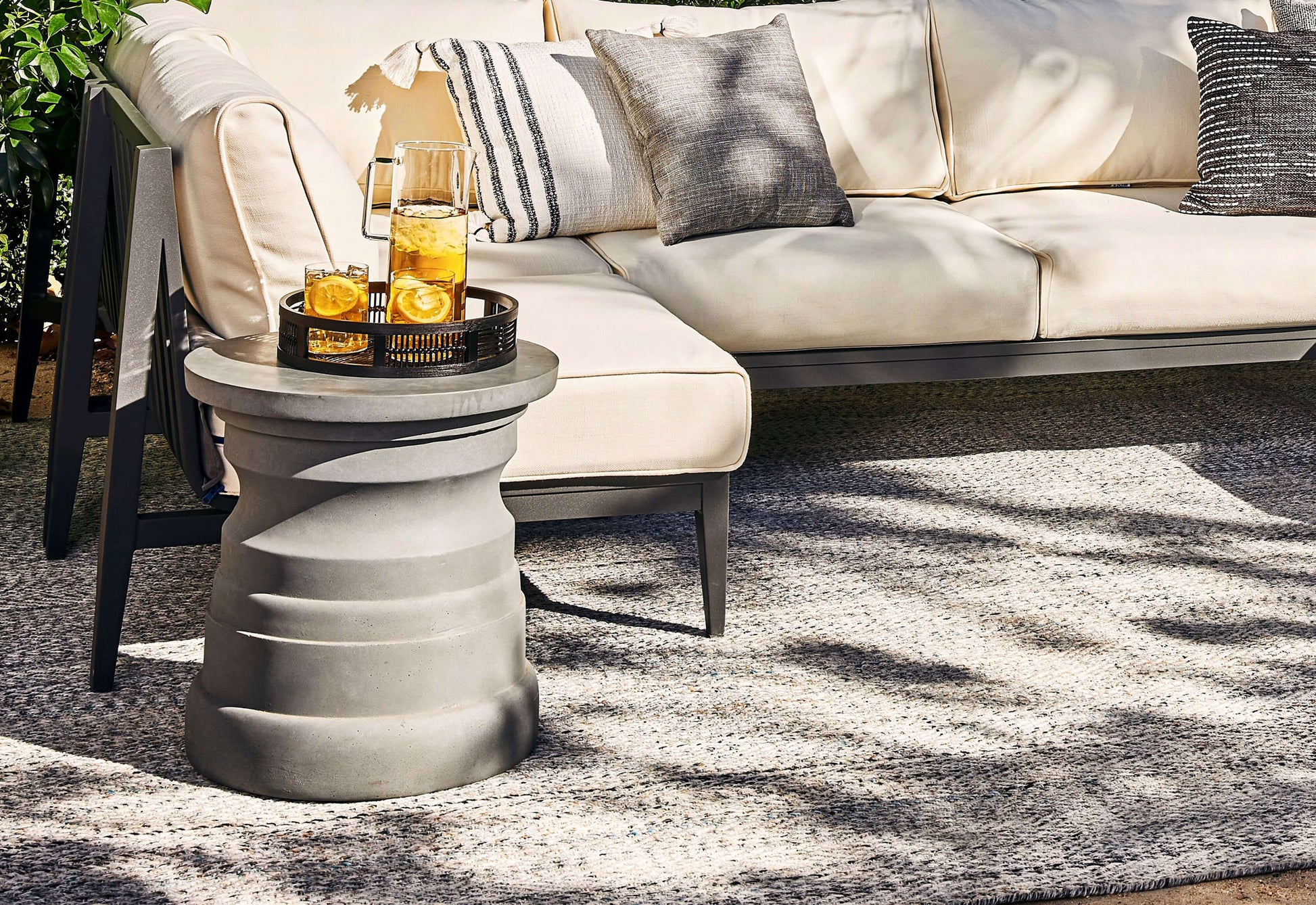 Outer propose les éléments de mobilier de terrasse que vous recherchez. Complétez votre salon ou votre espace détente extérieur avec ces tables d'appoint robustes et élégantes, inspirées des colonnes de marbre et des tambours de bronze de l'Antiquité. Fabriquée en béton fibré, traité pour résister aux intempéries et aux taches, la table est dotée de pieds en caoutchouc pour éviter de rayer les autres surfaces.