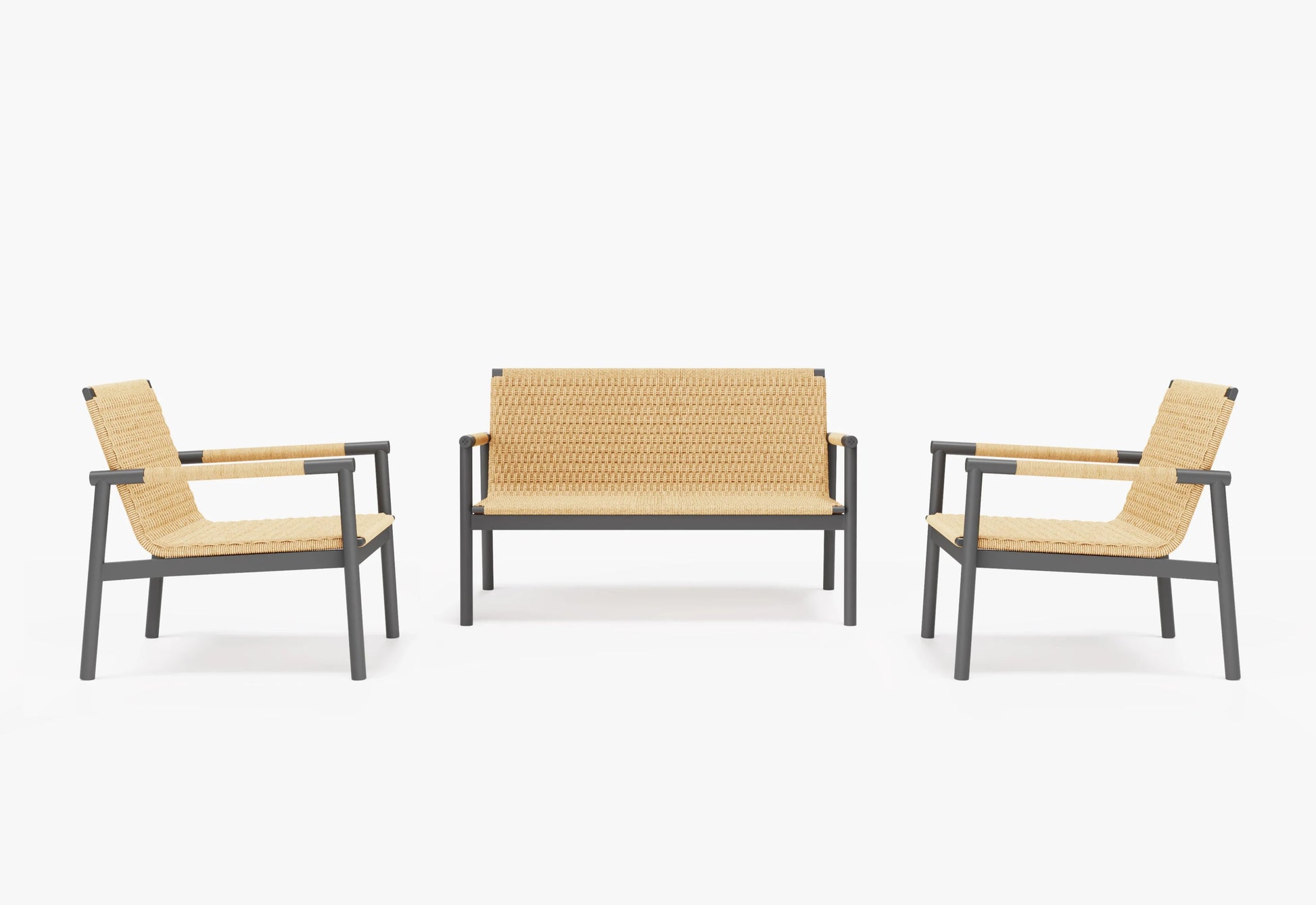 - Ensemble canapé deux places et fauteuil de conversation en osier et aluminium flexible × 1