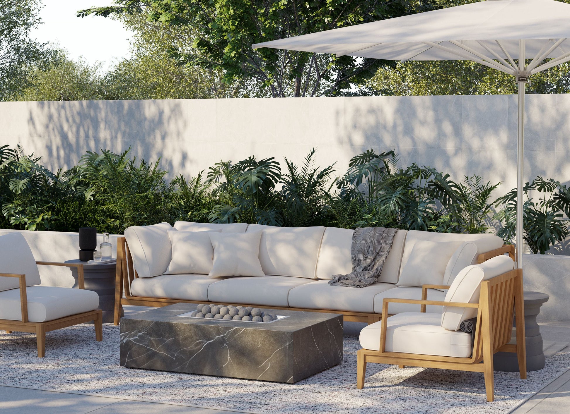 Sublimez votre oasis extérieure avec le parasol d'extérieur en aluminium de qualité marine d'Outer, une référence en matière de performance et de durabilité. Fabriqué en aluminium de qualité marine résistant aux intempéries, son armature est conçue pour affronter les éléments. La toile en acrylique teintée dans la masse, résistante à la décoloration, vous protège des rayons UV nocifs et vous assure un confort optimal. Grâce à son mécanisme de verrouillage rapide intégré et innovant, l'ouverture et la fermeture du parasol sont simples et fluides. Pour une stabilité accrue, associez-le à notre pied en acier ultra-résistant. D'un poids de 68 kg, le pied de parasol au profil élégant résiste aux conditions climatiques extrêmes et à des vents allant jusqu'à 61 km/h, que le parasol soit ouvert ou fermé. De plus, ses roulettes haute résistance vous permettent d'orienter facilement votre parasol.