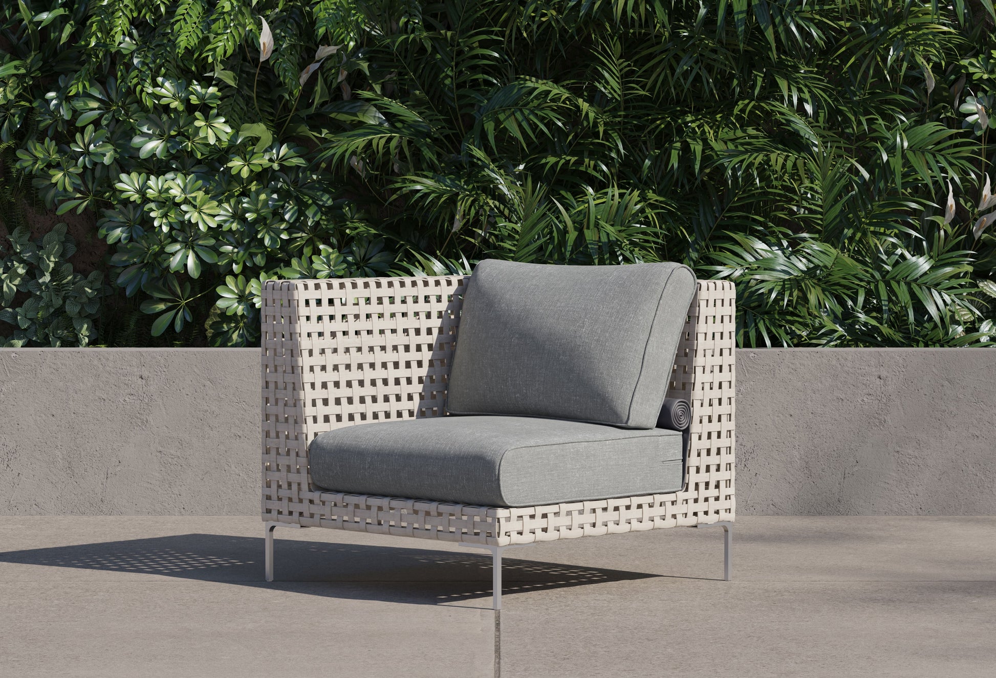 La collection Open Weave Wicker propose une réinterprétation moderne du rotin traditionnel, mettant en valeur un élégant motif de vannerie aux espaces délicats qui lui confèrent une touche contemporaine. Aussi sophistiquée et raffinée qu'esthétique, la collection Open Weave est conçue pour une résistance exceptionnelle. Son rotin plat est fabriqué à partir de notre rotin All-Weather tressé à la main, tandis que ses pieds élégants en acier inoxydable résistent à la rouille. La structure en alliage d'aluminium-magnésium haute résistance est renforcée pour résister aux intempéries et supporte une charge maximale de 180 kg.