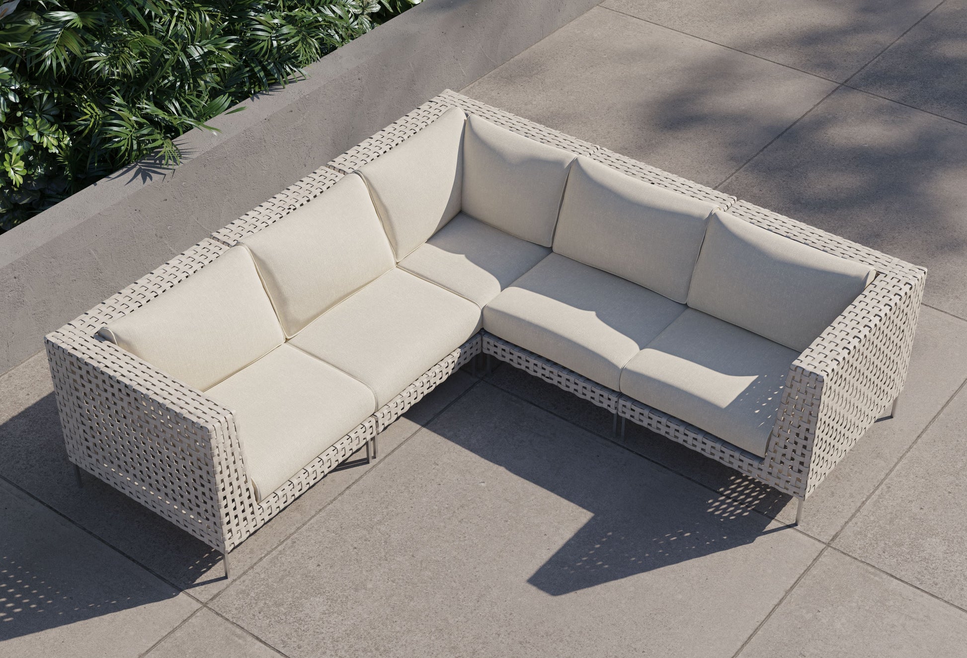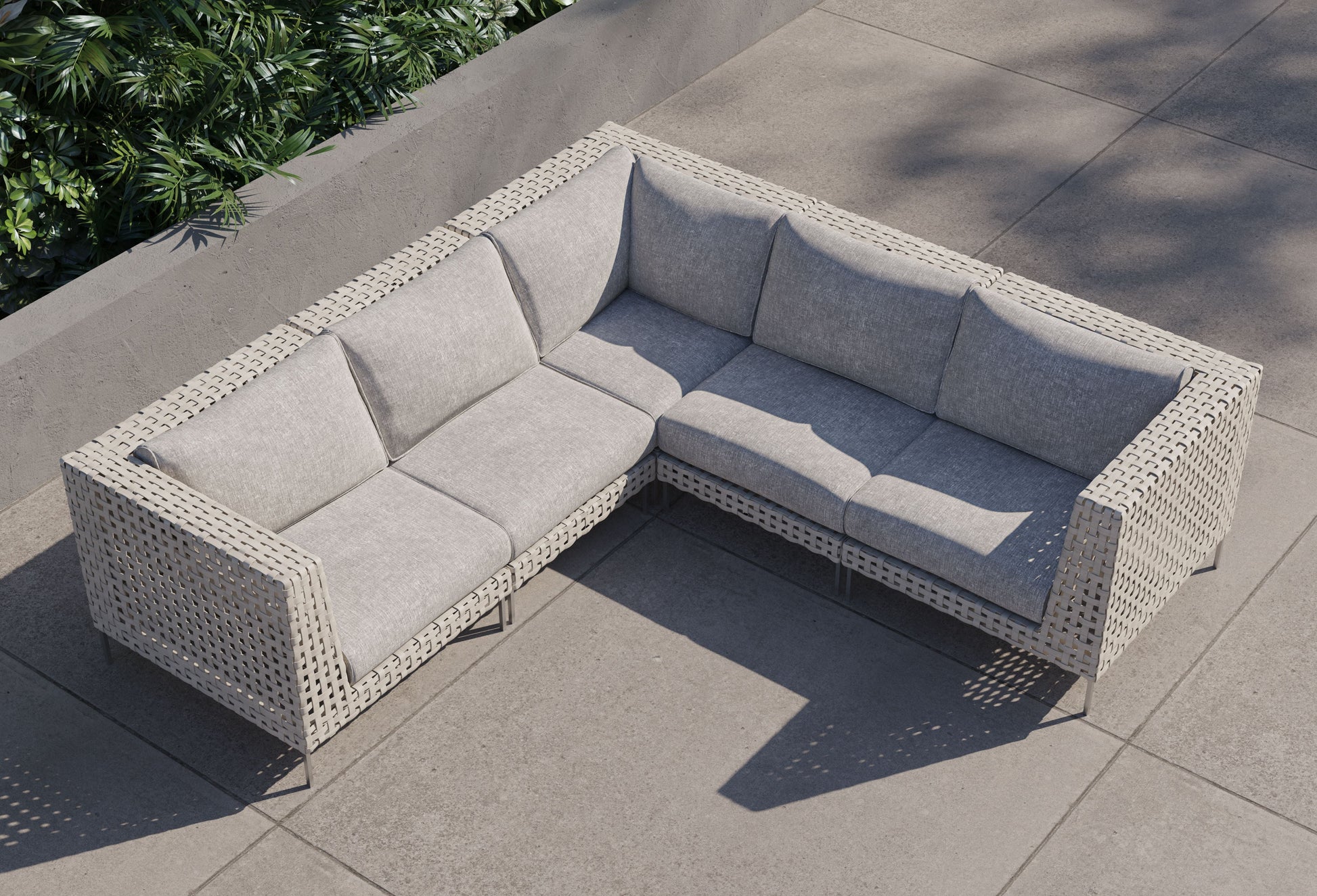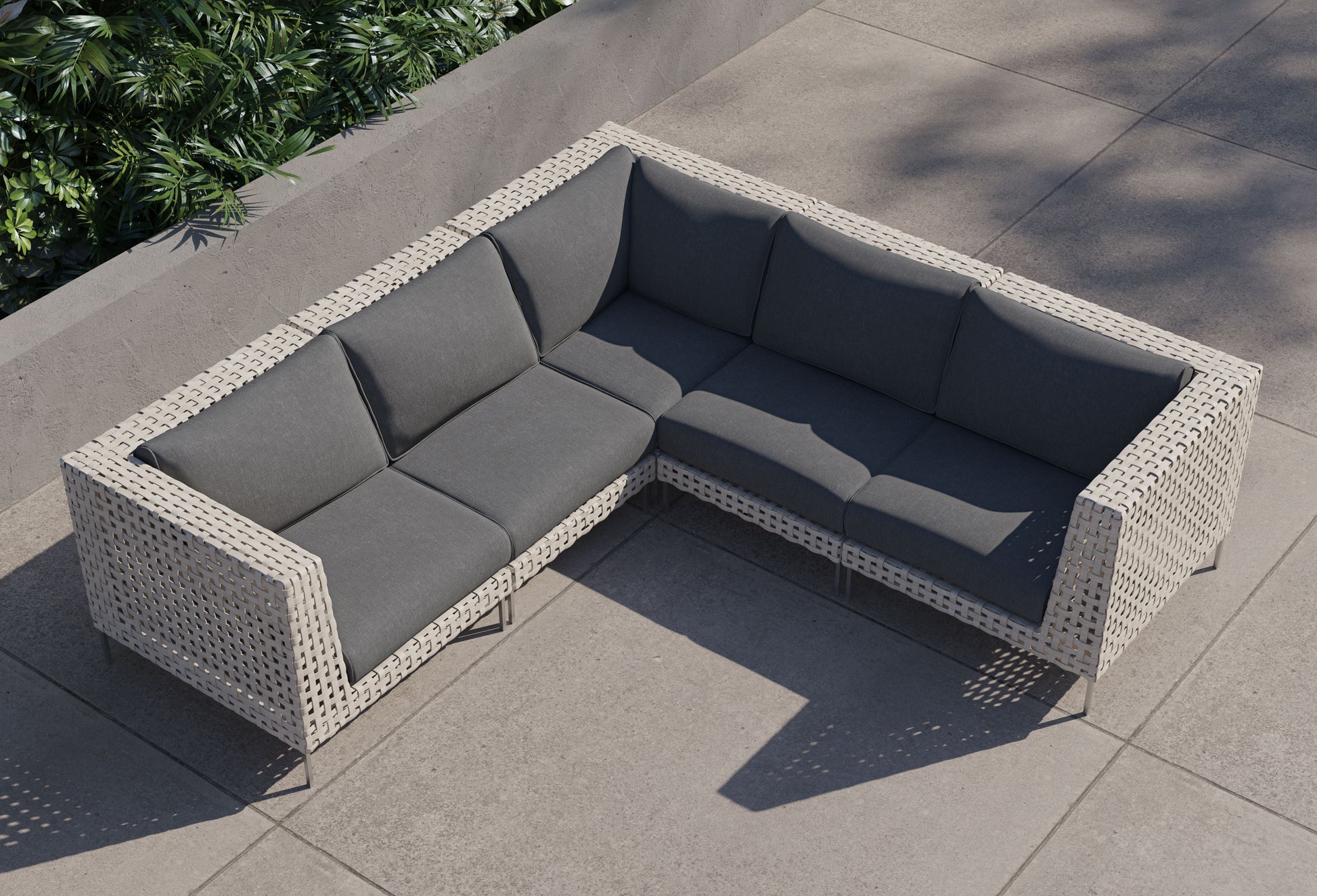 Canapé d'angle d'extérieur en résine tressée ajourée - 5 places