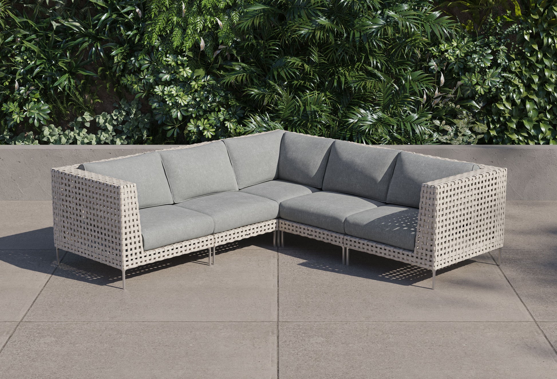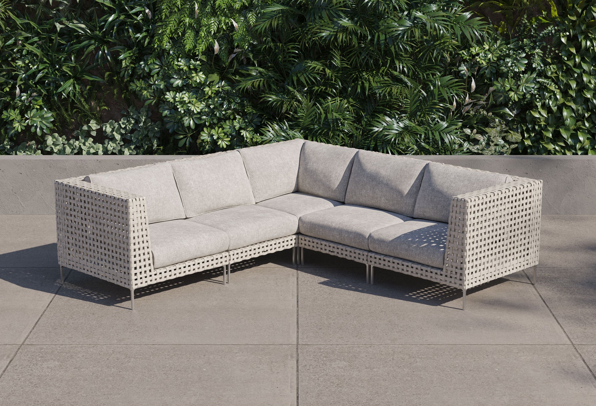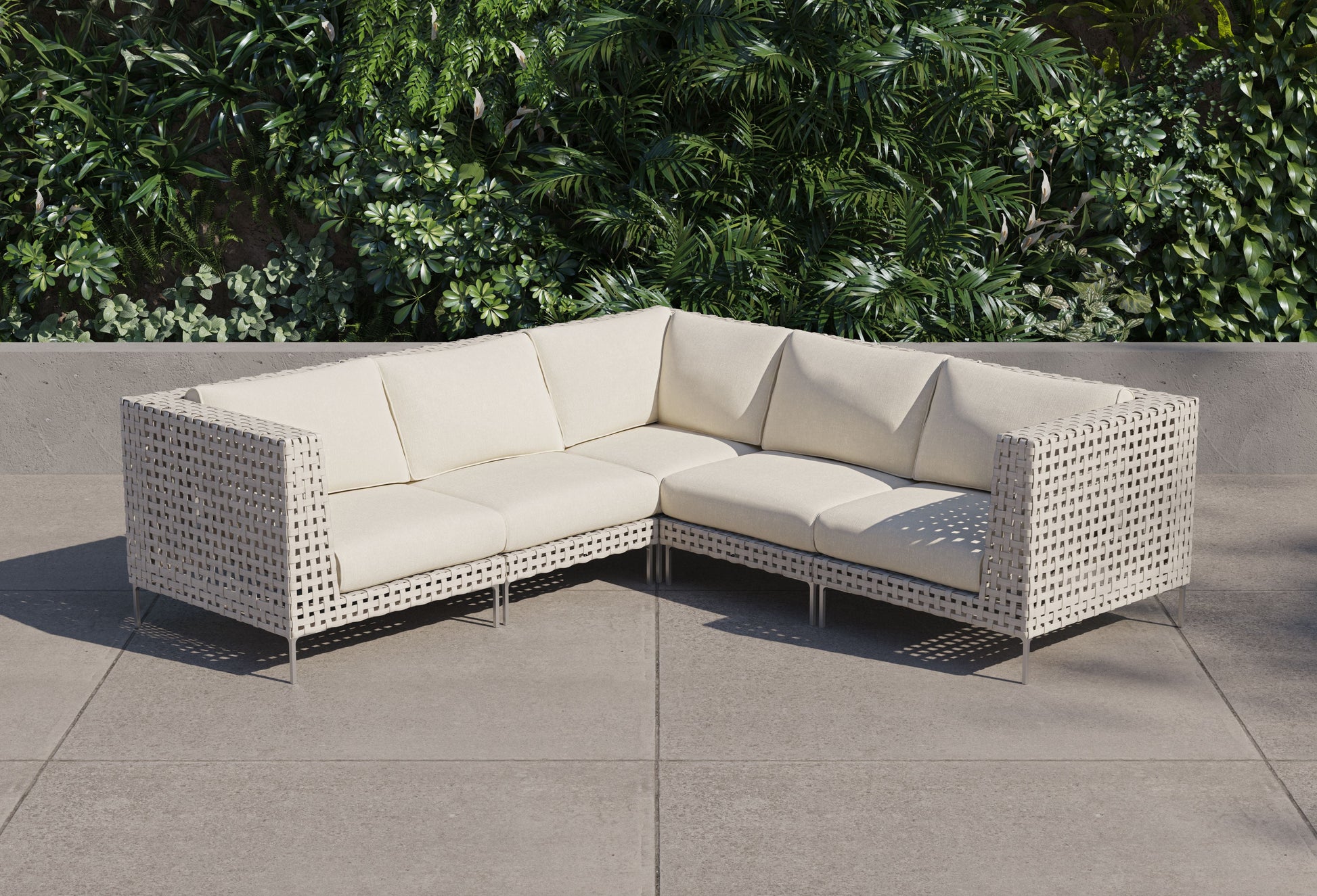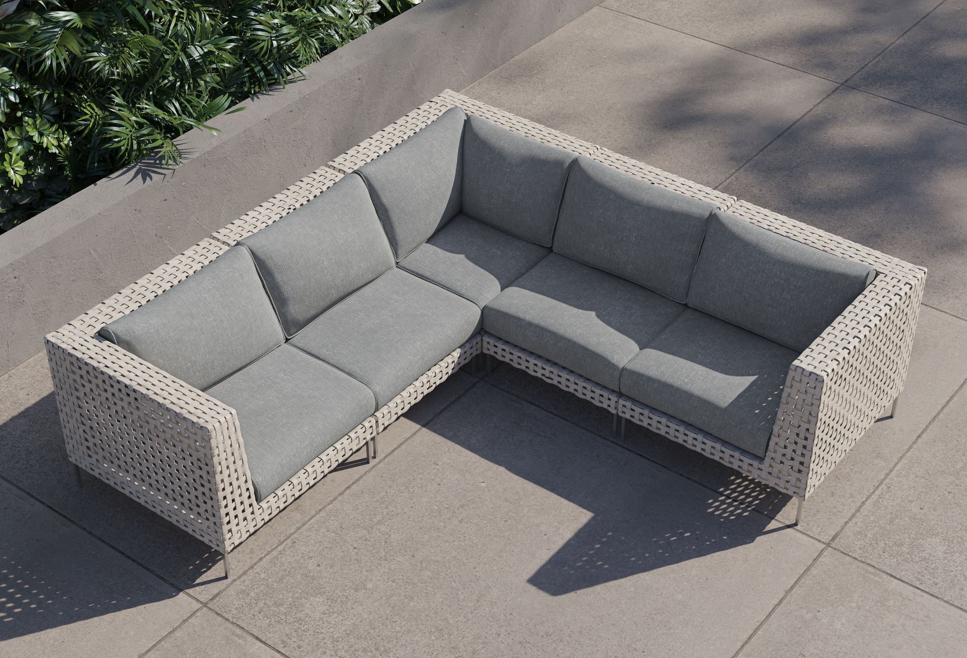 Canapé d'angle d'extérieur en résine tressée ajourée - 5 places
