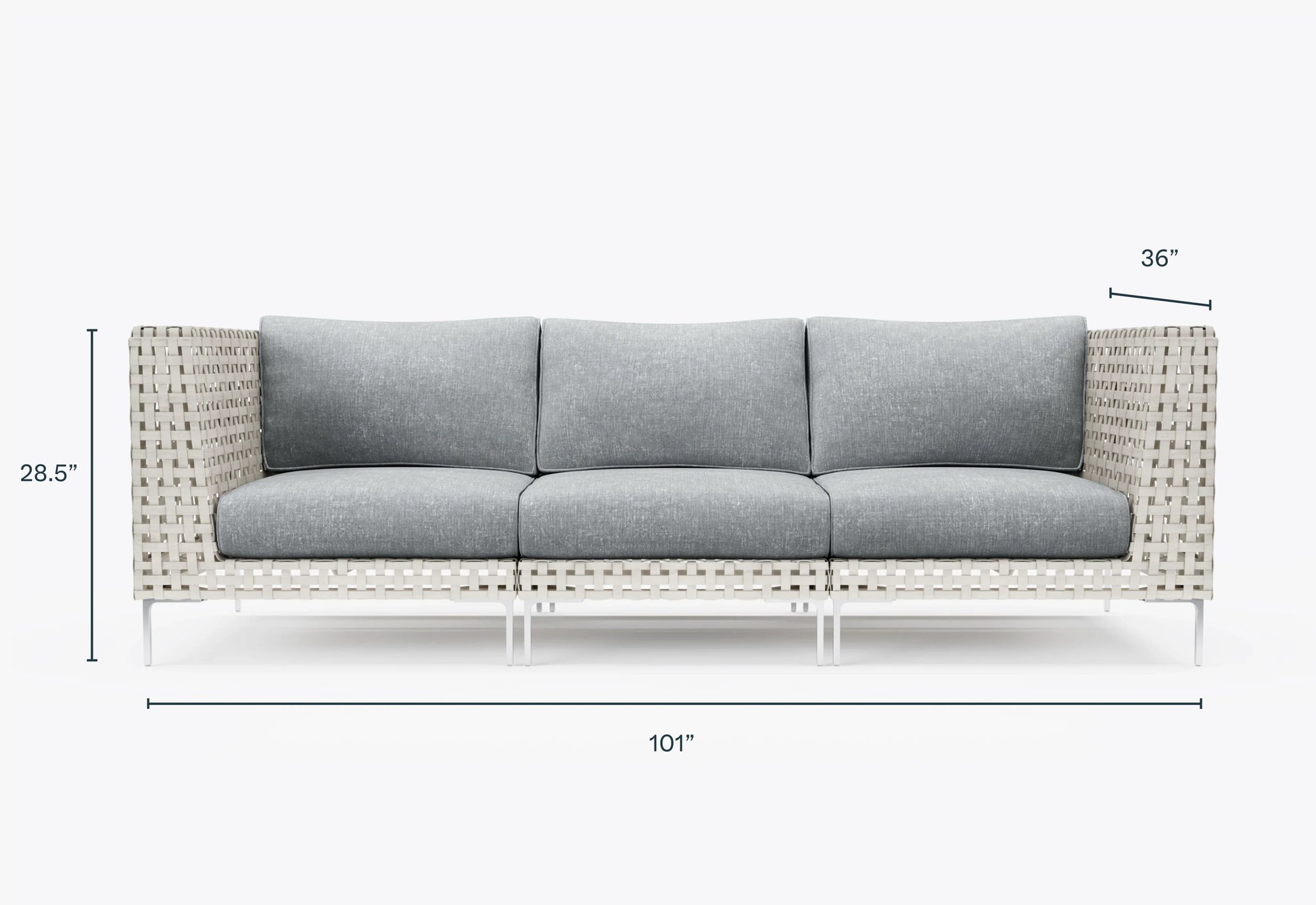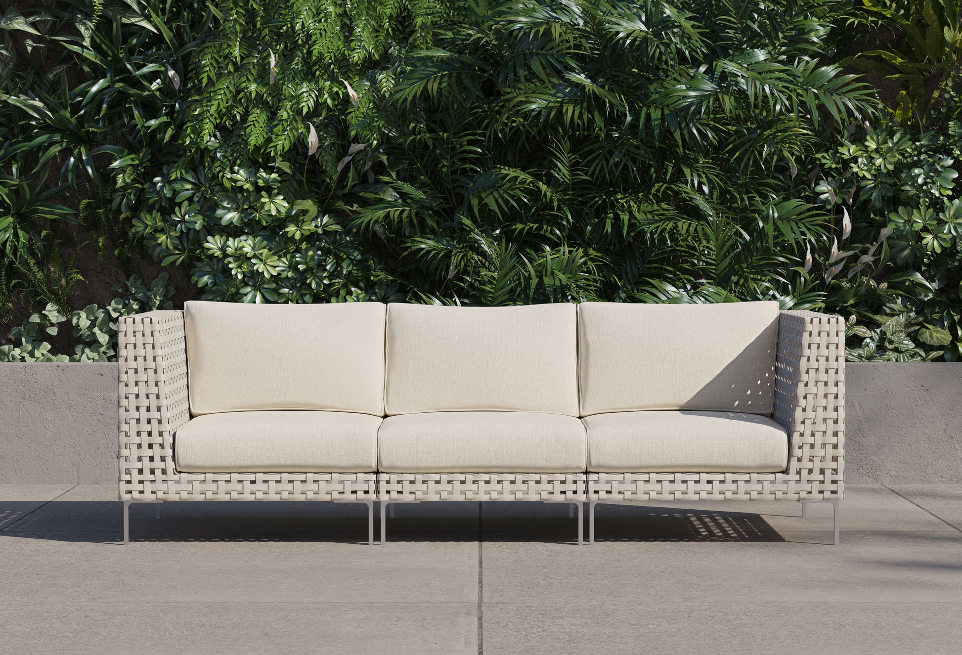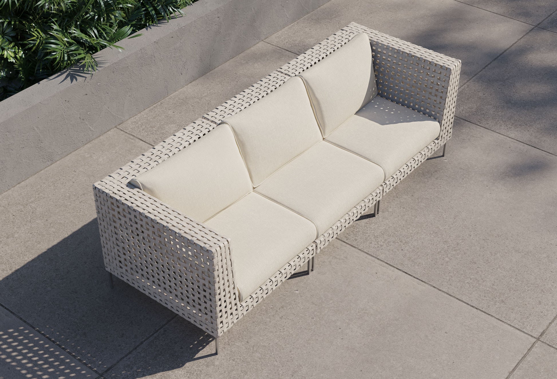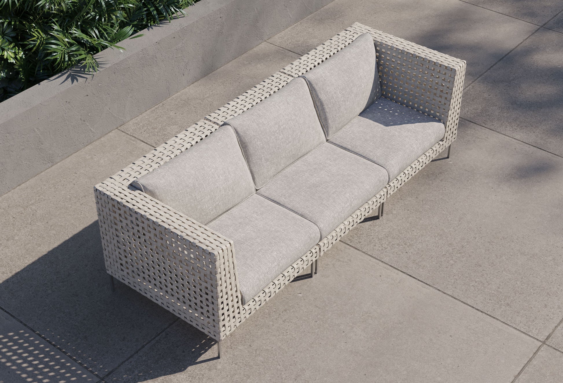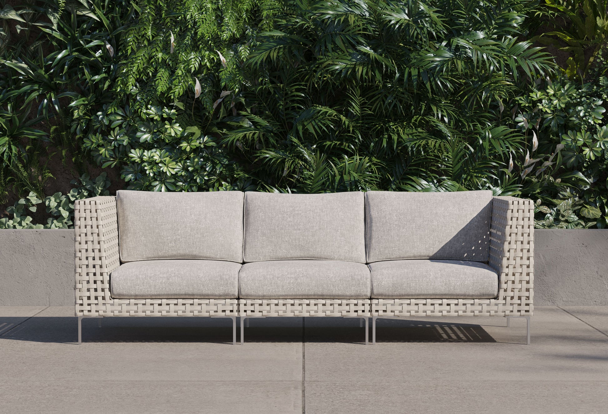 La collection Open Weave Wicker propose une réinterprétation moderne du rotin traditionnel, mettant en valeur un élégant motif de vannerie aux espaces délicats qui lui confèrent une touche contemporaine. Aussi sophistiquée et raffinée qu'esthétique, la collection Open Weave est conçue pour une résistance exceptionnelle. Son rotin plat est fabriqué à partir de notre rotin All-Weather tressé à la main, tandis que ses pieds élégants en acier inoxydable résistent à la rouille. La structure en alliage d'aluminium-magnésium haute résistance est renforcée pour résister aux intempéries et supporte une charge maximale de 180 kg.
