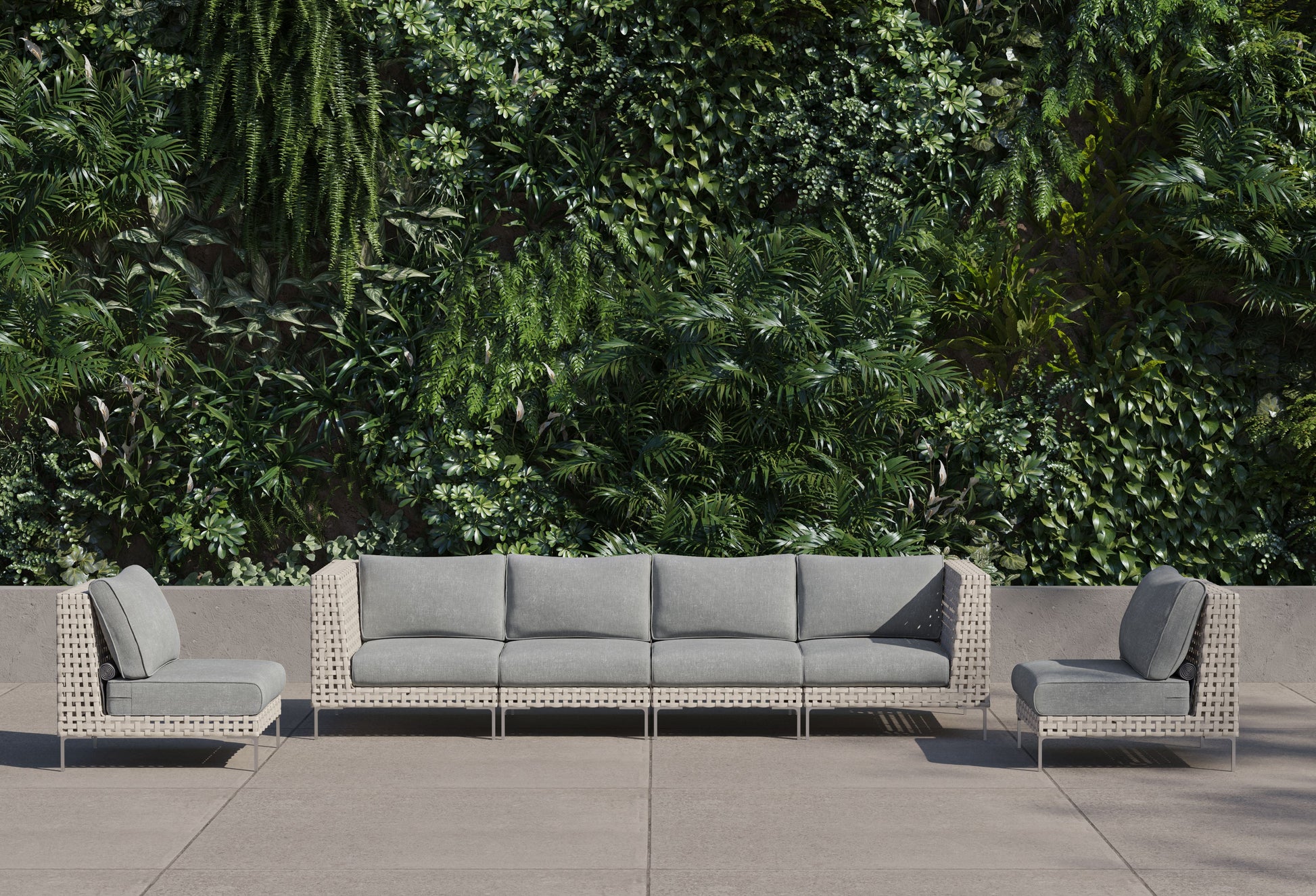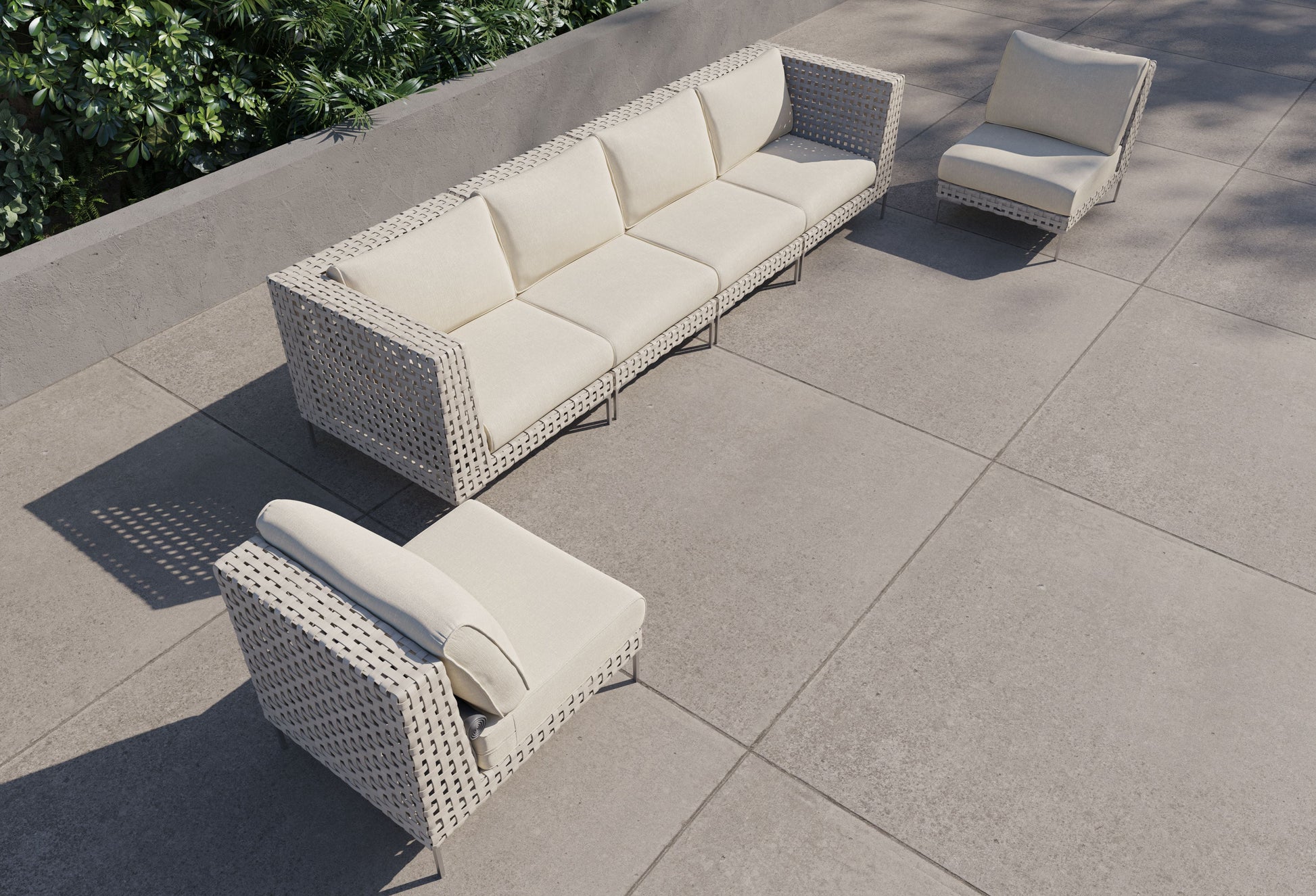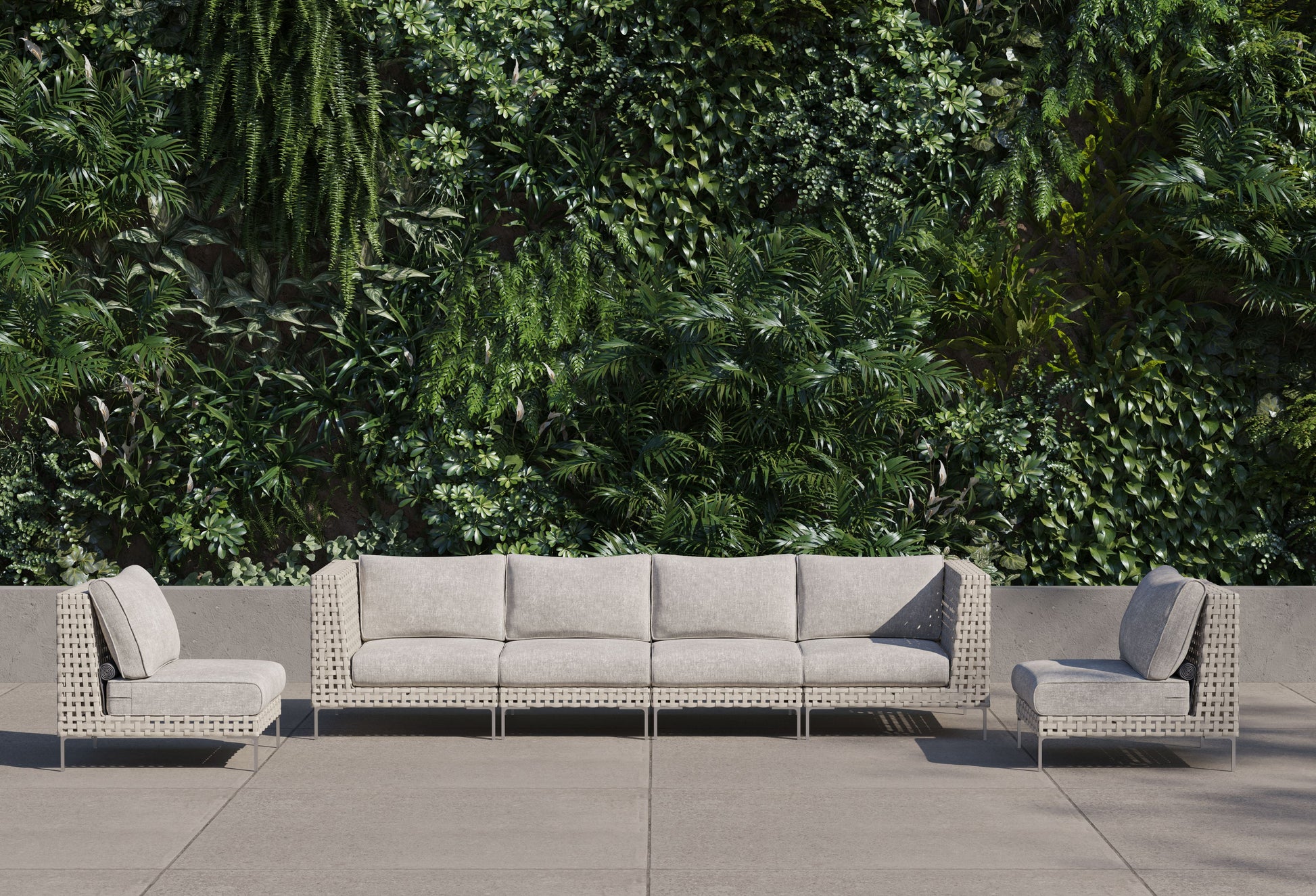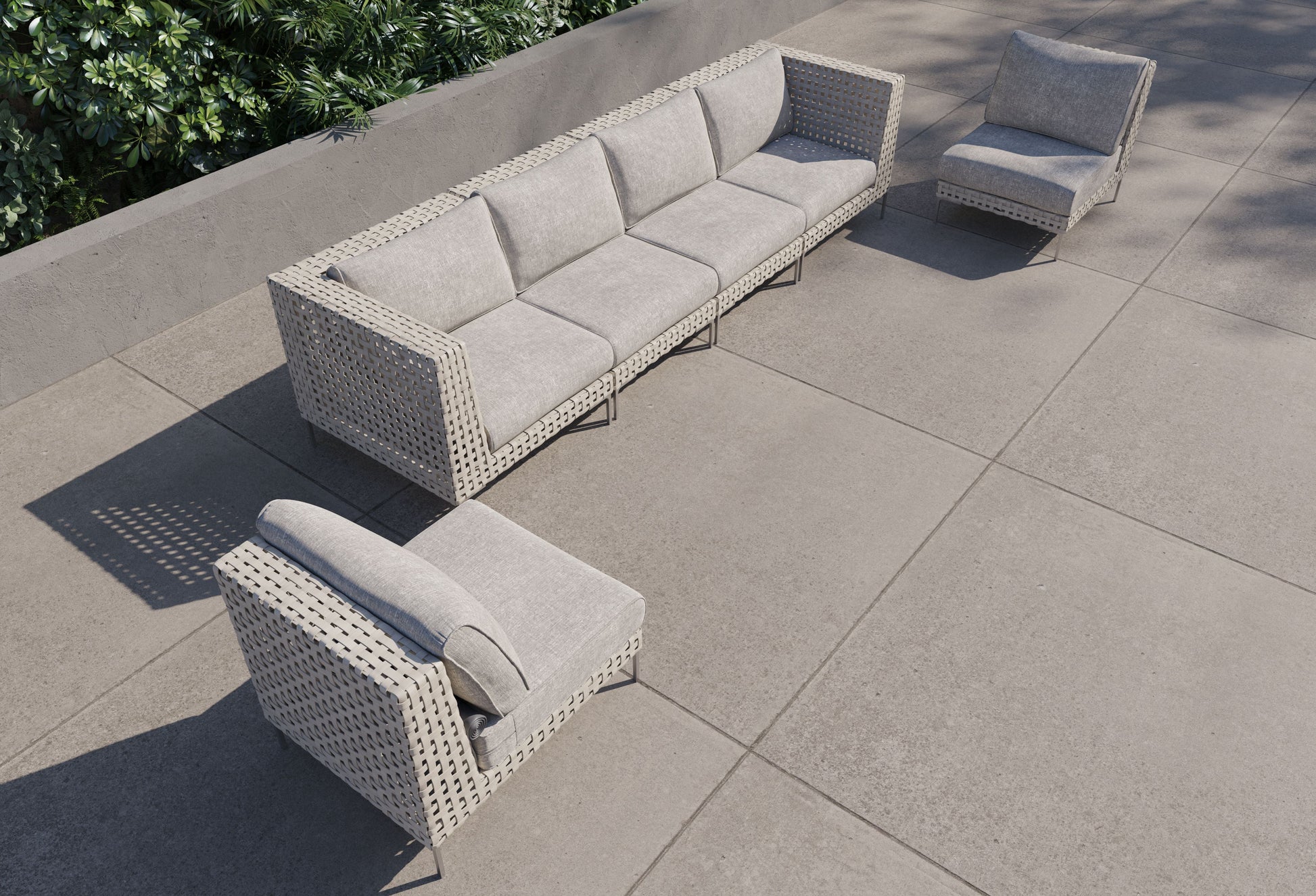 La collection Open Weave Wicker propose une réinterprétation moderne du rotin traditionnel, mettant en valeur un élégant motif de vannerie aux espaces délicats qui lui confèrent une touche contemporaine. Aussi sophistiquée et raffinée qu'esthétique, la collection Open Weave est conçue pour une résistance exceptionnelle. Son rotin plat est fabriqué à partir de notre rotin All-Weather tressé à la main, tandis que ses pieds élégants en acier inoxydable résistent à la rouille. La structure en alliage d'aluminium-magnésium haute résistance est renforcée pour résister aux intempéries et supporte une charge maximale de 180 kg.