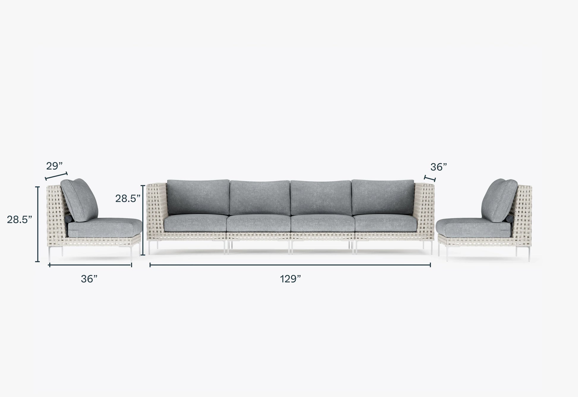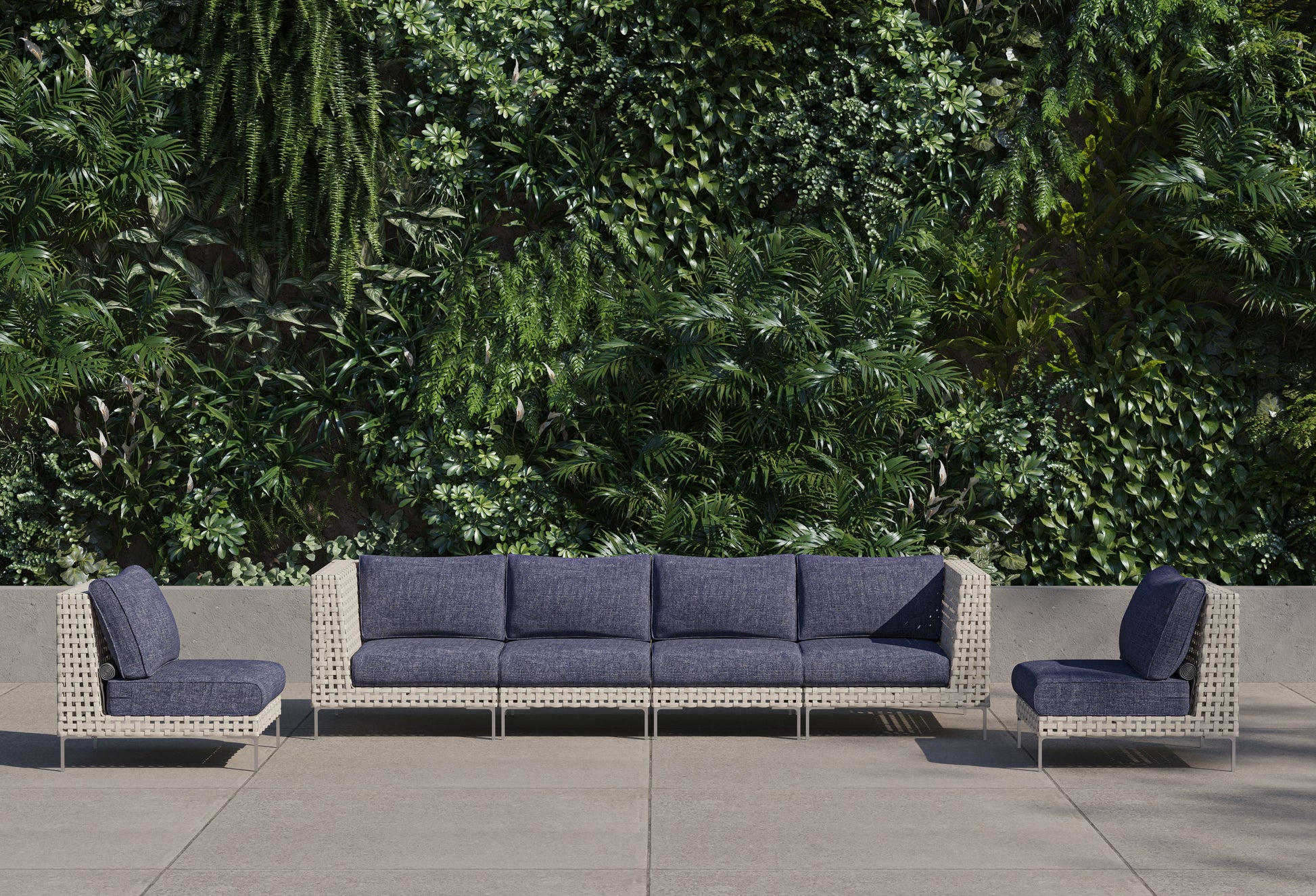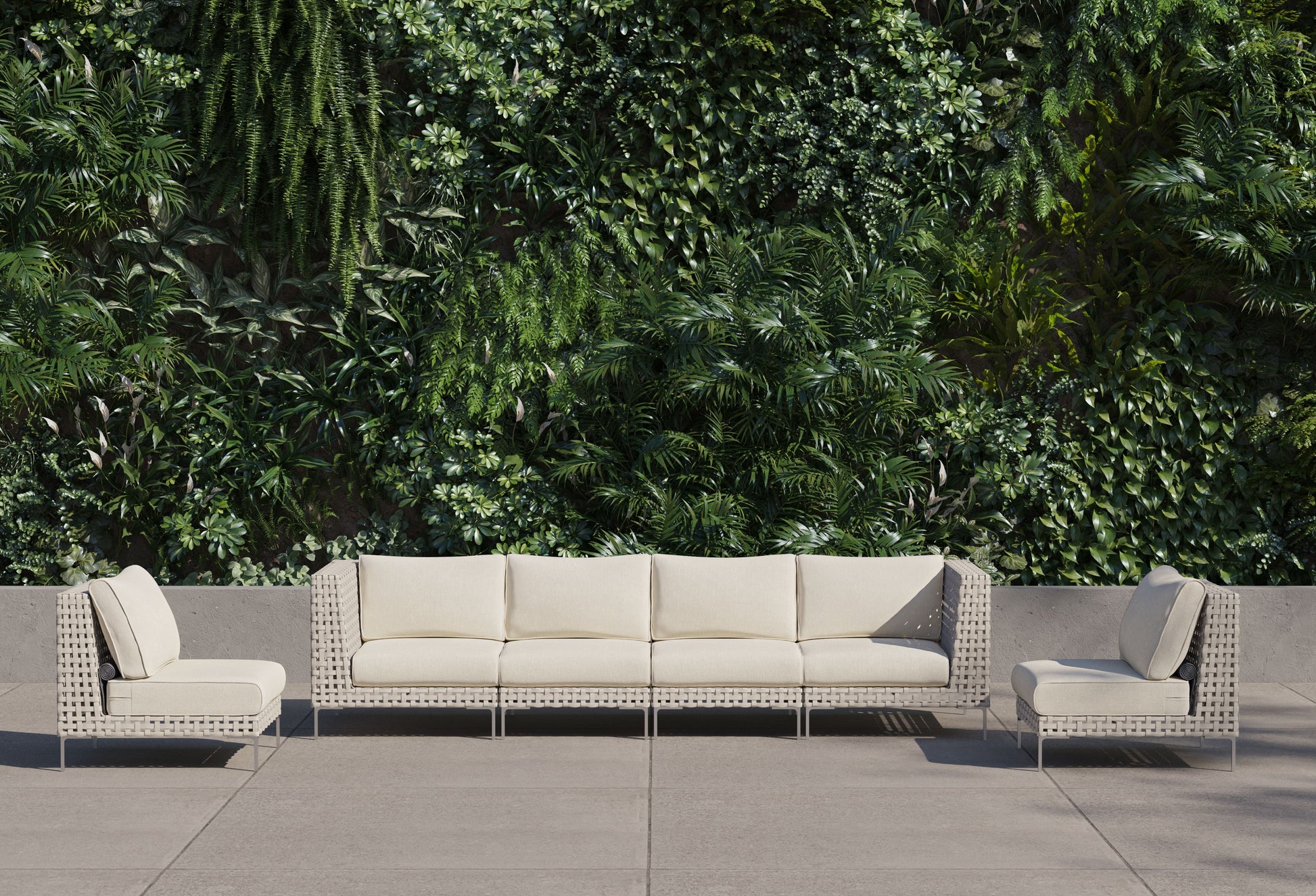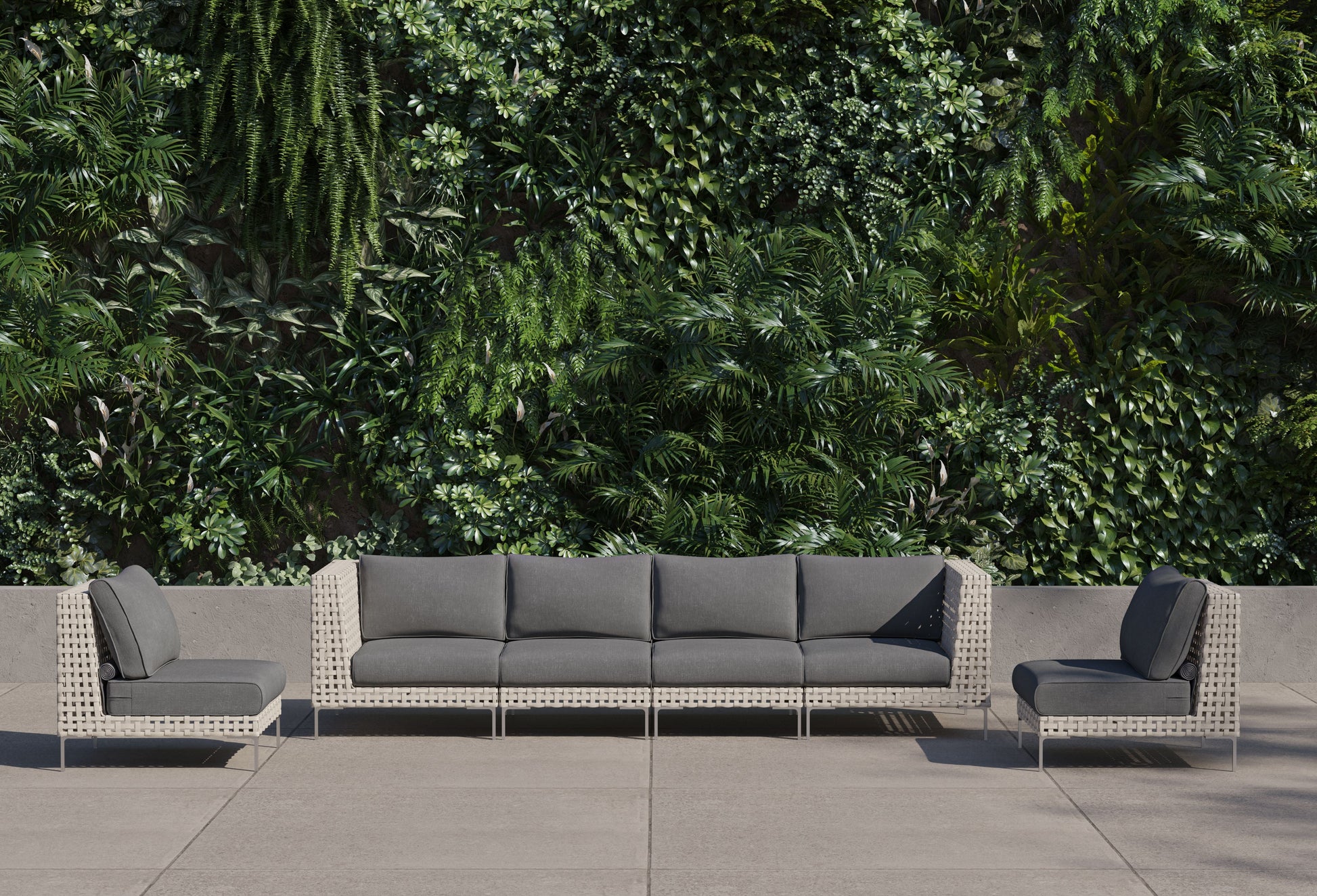 La collection Open Weave Wicker propose une réinterprétation moderne du rotin traditionnel, mettant en valeur un élégant motif de vannerie aux espaces délicats qui lui confèrent une touche contemporaine. Aussi sophistiquée et raffinée qu'esthétique, la collection Open Weave est conçue pour une résistance exceptionnelle. Son rotin plat est fabriqué à partir de notre rotin All-Weather tressé à la main, tandis que ses pieds élégants en acier inoxydable résistent à la rouille. La structure en alliage d'aluminium-magnésium haute résistance est renforcée pour résister aux intempéries et supporte une charge maximale de 180 kg.
