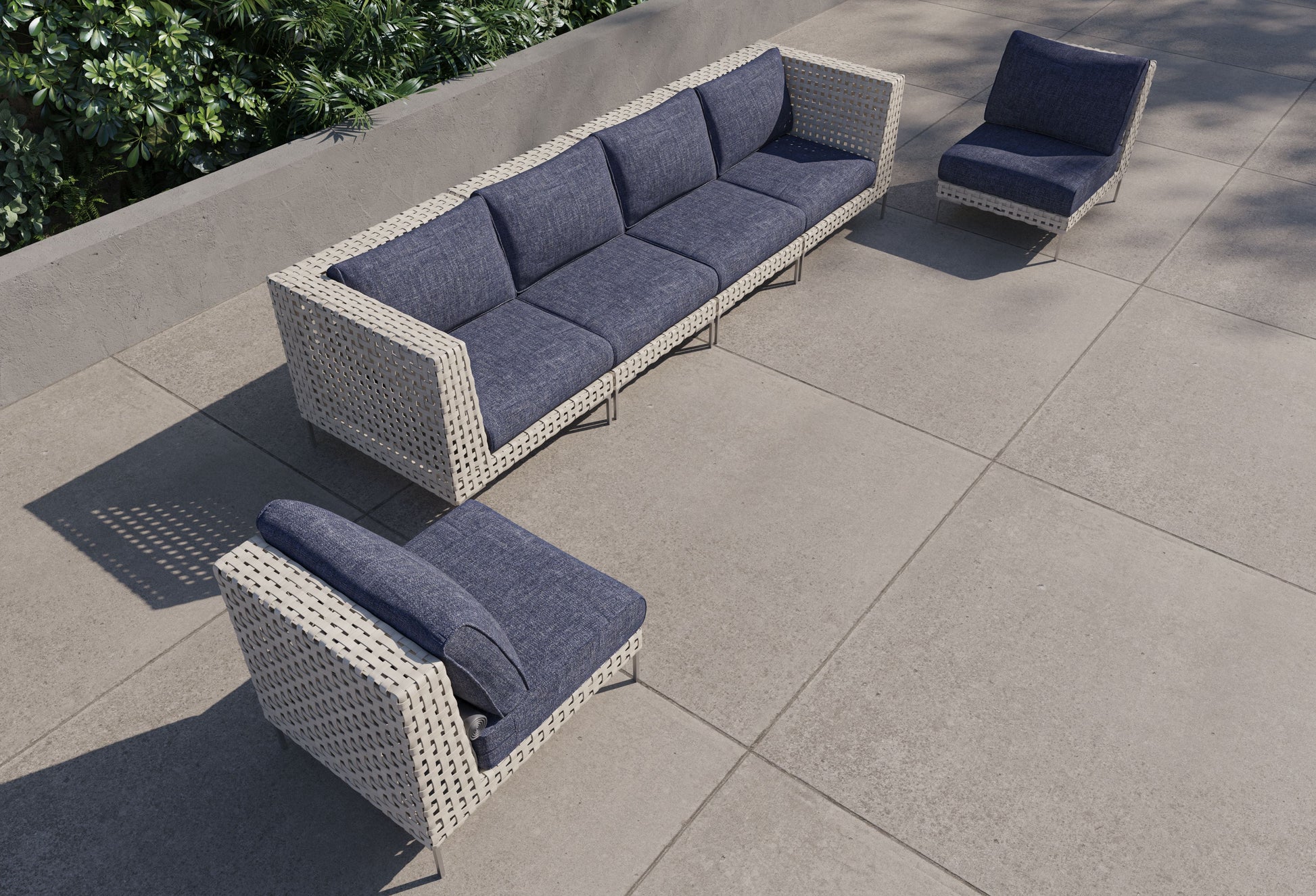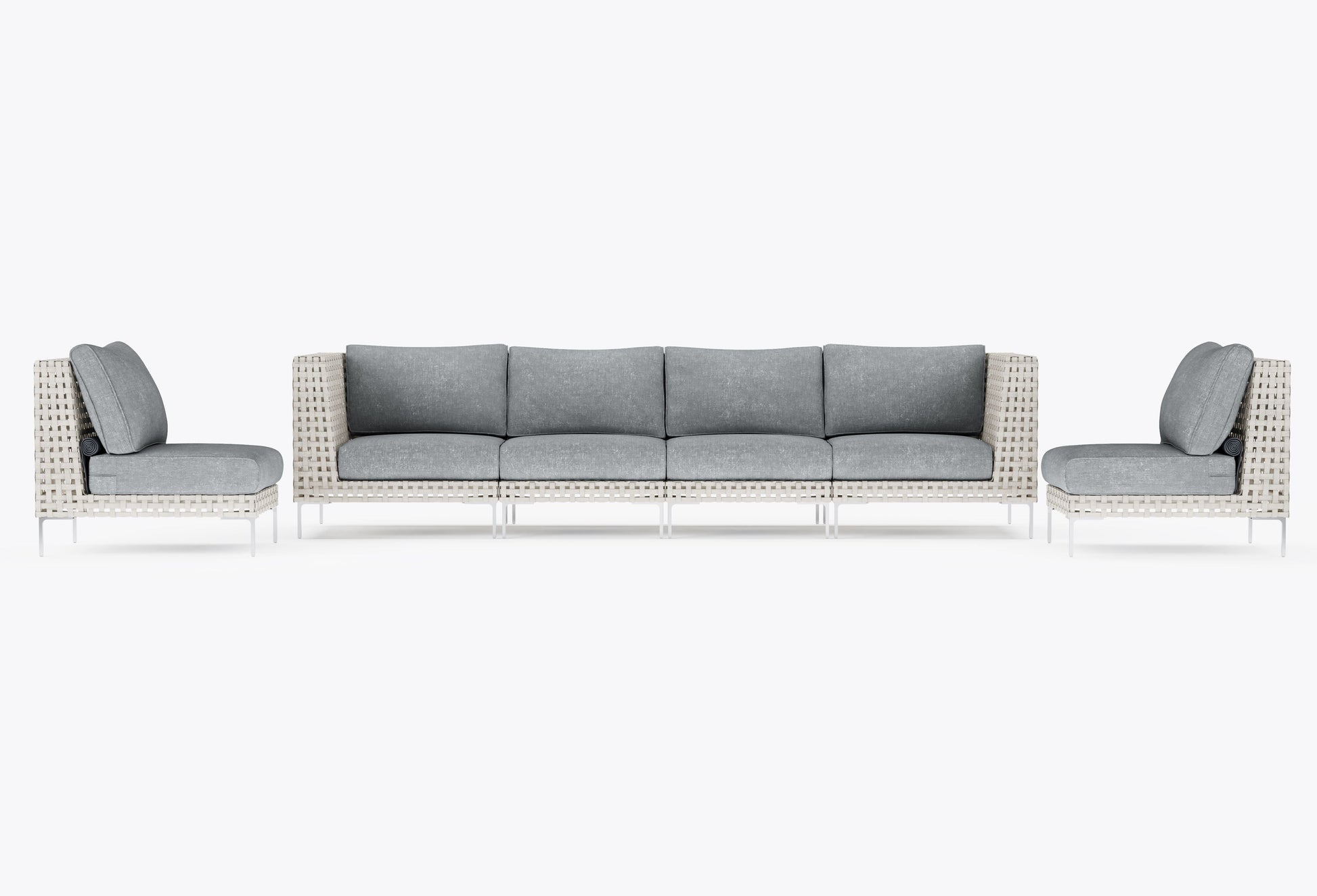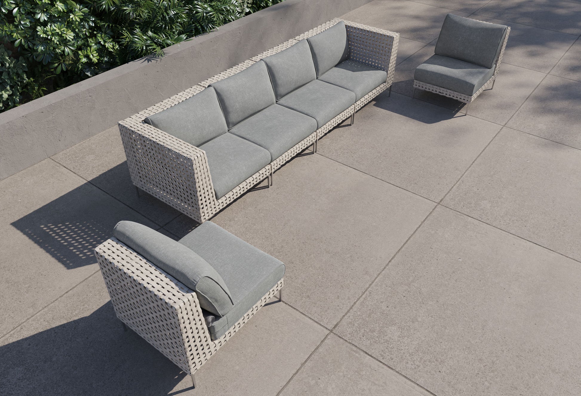 Canapé d'extérieur en résine tressée ajourée avec fauteuils sans accoudoirs - 6 places