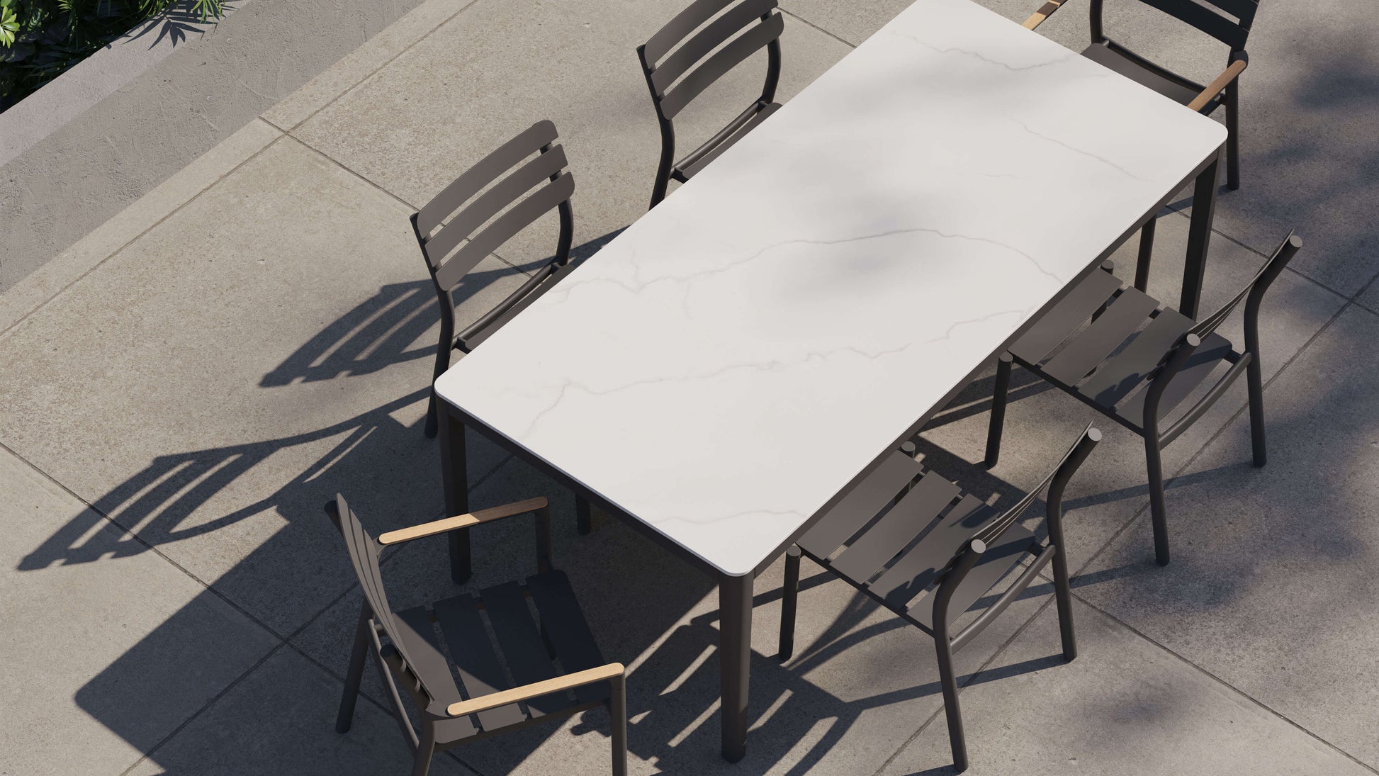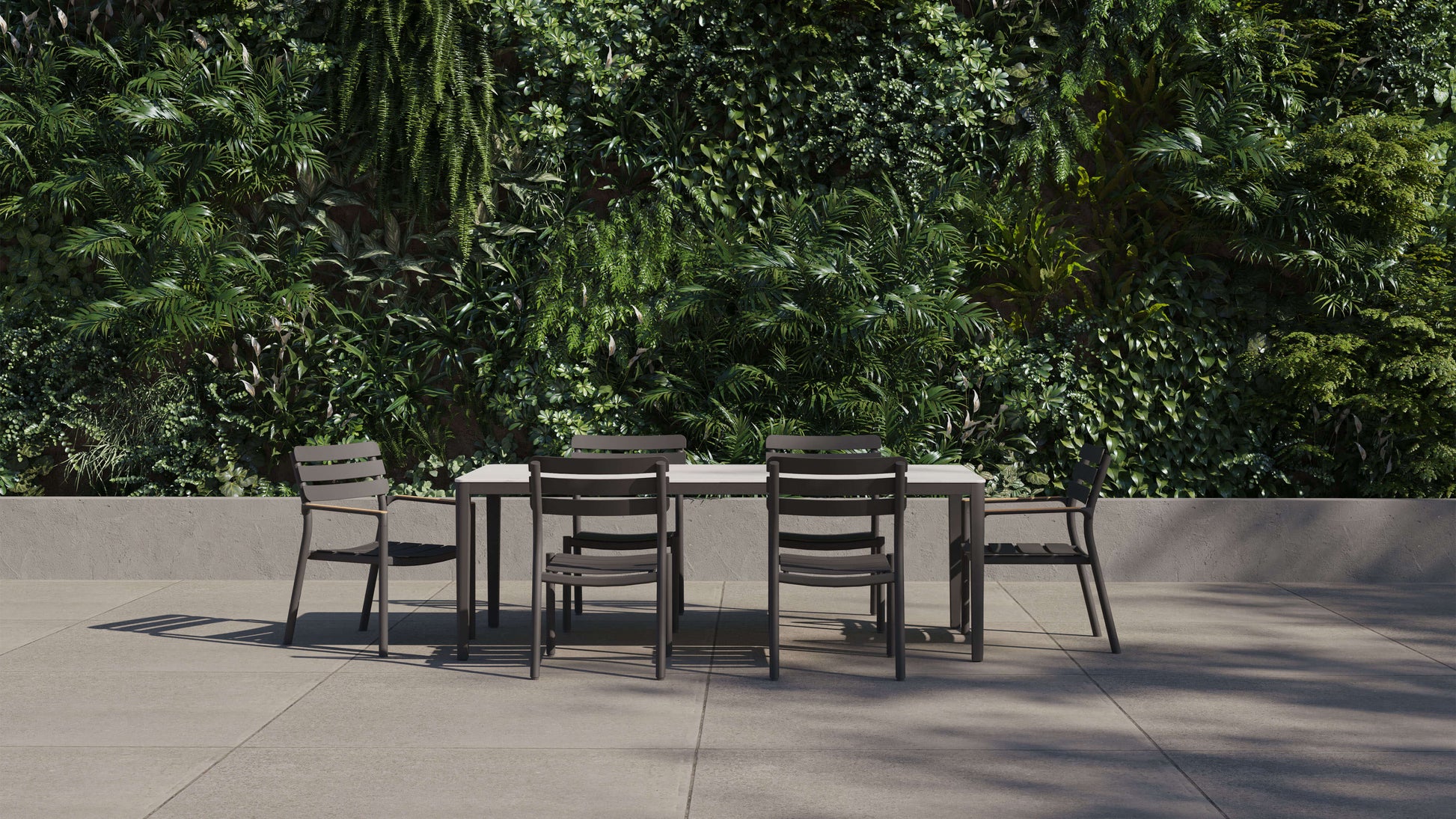 L'architecture de notre table à manger repose sur un plateau 100 % naturel OuterStone®. Grâce à sa robustesse, vous pourrez organiser d'innombrables repas en plein air. Convient pour 6 à 8 personnes.