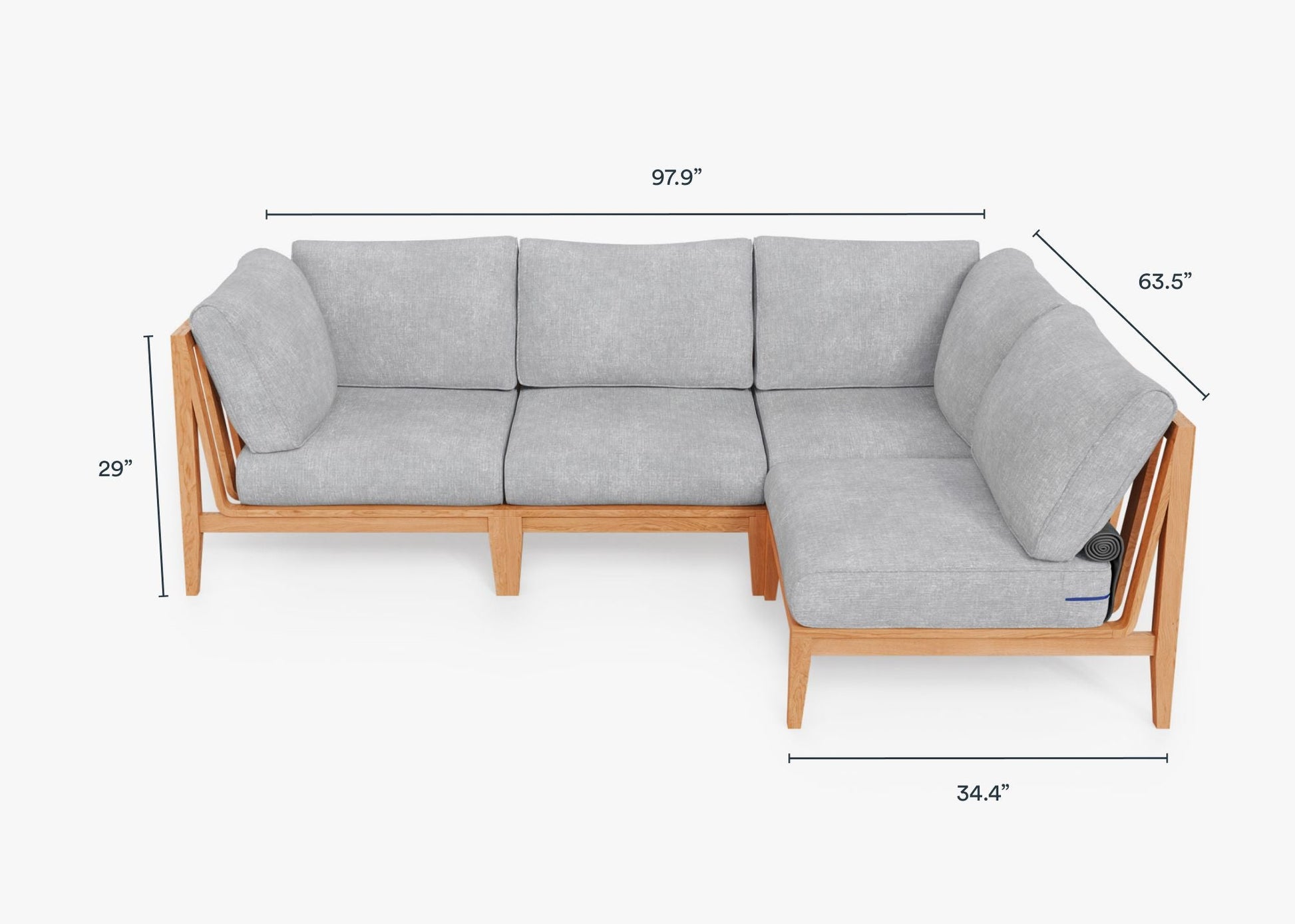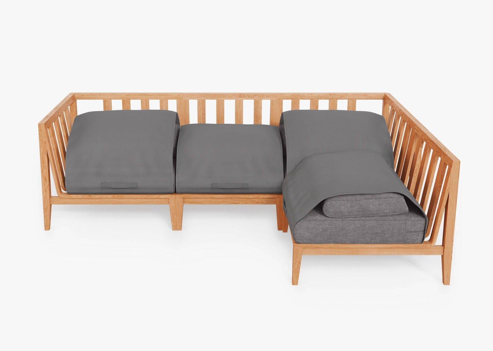 Profitez du confort de votre intérieur en extérieur. Intemporel et fabriqué en teck massif certifié FSC®, un bois naturellement durable, le mobilier de jardin modulable Outer vous invite à la détente sur des coussins en mousse à mémoire de forme d'un confort exceptionnel. La housse OuterShell® intégrée et facile à utiliser protège les coussins lorsqu'ils ne sont pas utilisés. Elle est dotée d'une fermeture Velcro pour la maintenir en place et d'une poignée pour un transport et un rangement aisés. L'ensemble comprend 2 fauteuils sans accoudoirs, 1 fauteuil d'angle et 1 canapé d'angle, facilement modulables.