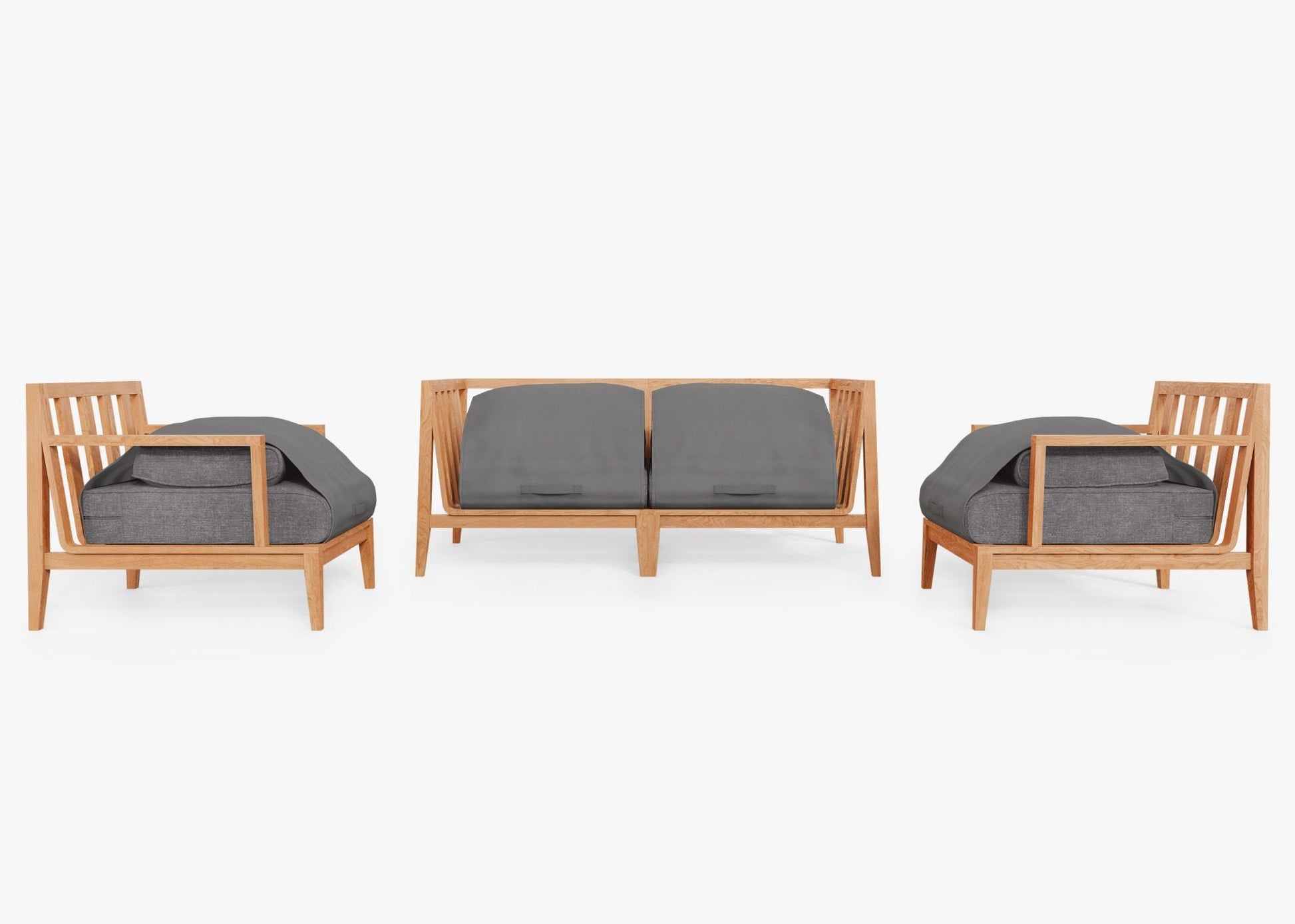 Canapé d'extérieur en teck avec fauteuils - 4 places