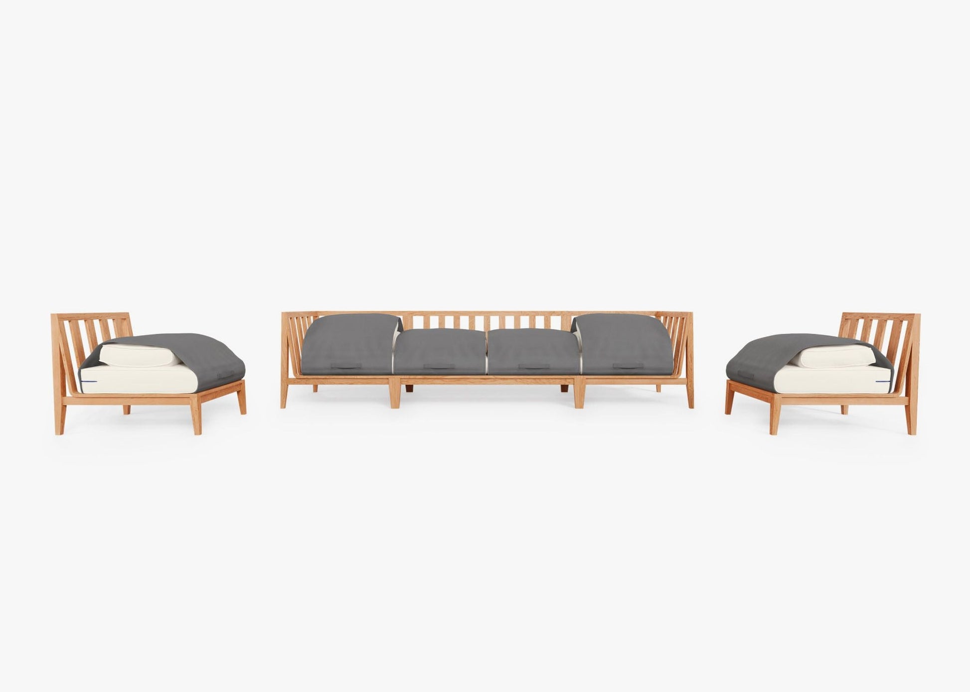 Profitez du confort de votre intérieur en extérieur. Intemporel et fabriqué en teck certifié FSC®, un bois naturellement durable, le mobilier de jardin modulable Outer vous invite à la détente sur des coussins en mousse à mémoire de forme d'un confort exceptionnel. La housse OuterShell® intégrée et facile à utiliser protège les coussins lorsqu'ils ne sont pas utilisés. Elle est dotée d'une fermeture Velcro pour la maintenir en place et d'une poignée pour un transport et un rangement aisés. L'ensemble comprend un canapé deux places sans accoudoirs, deux fauteuils d'angle et deux chaises sans accoudoirs, facilement modulables.