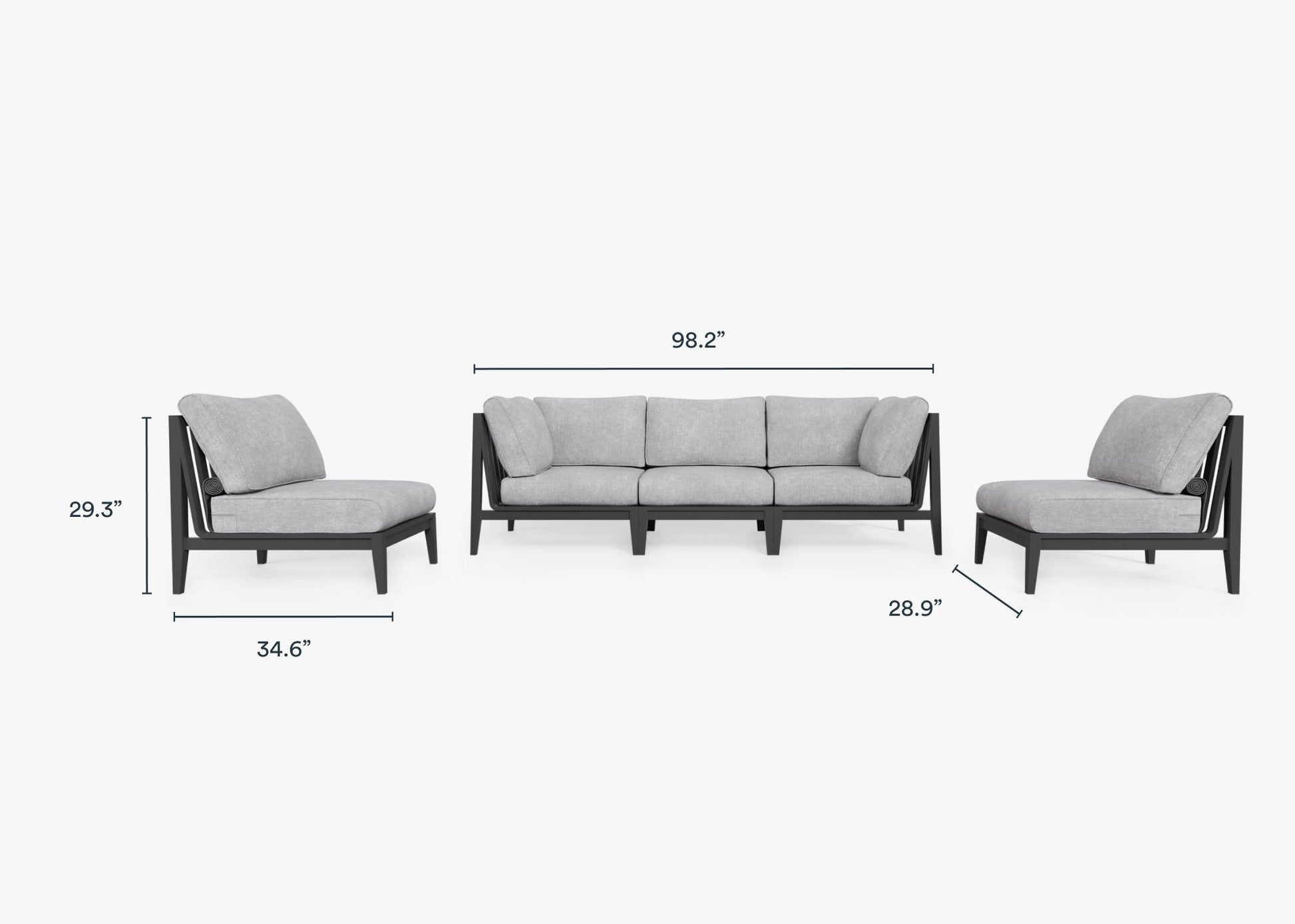 - Canapé d'extérieur en aluminium anthracite avec fauteuils sans accoudoirs - 5 places (Gris brume du Pacifique) × 1