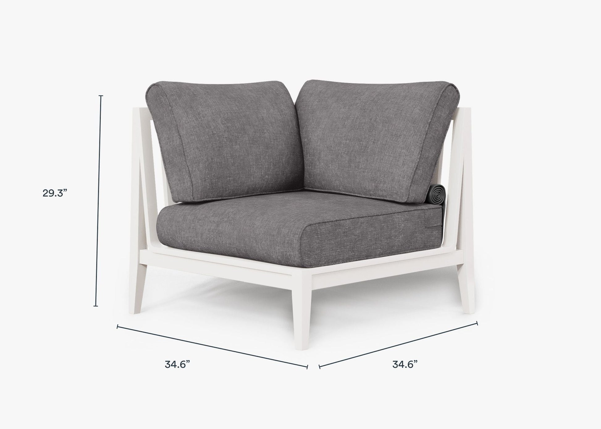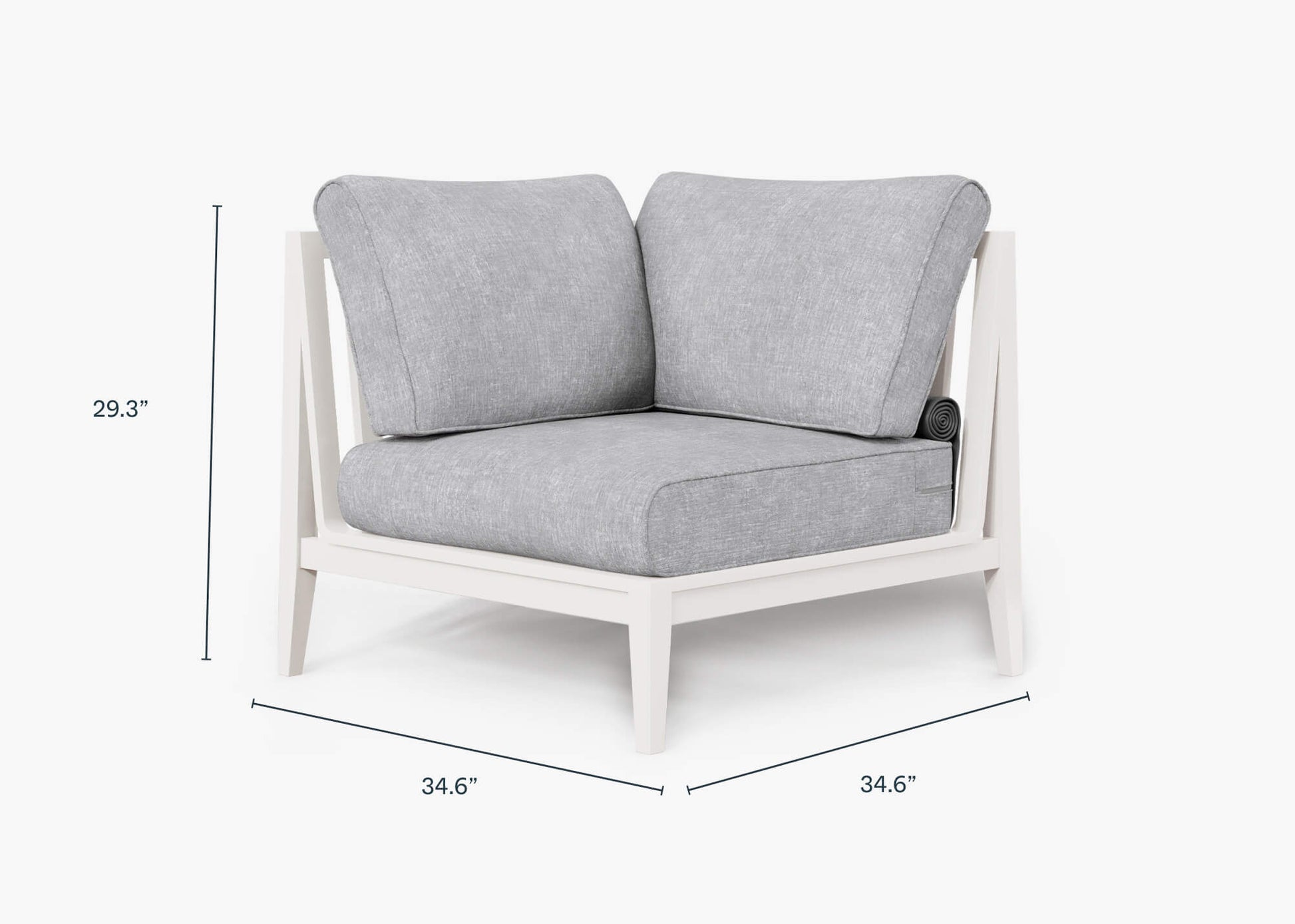 Profitez du confort de votre intérieur en extérieur. Élégant, léger et conçu pour durer grâce à sa structure en aluminium résistant aux intempéries, le mobilier modulaire Outer vous invite à la détente sur des coussins en mousse à mémoire de forme d'un confort exceptionnel. La housse OuterShell® intégrée et facile à utiliser protège les coussins lorsqu'ils ne sont pas utilisés. Elle est dotée d'une fermeture Velcro pour la maintenir en place et d'une poignée pour un transport et un rangement pratiques. Aucun montage requis. Le fauteuil d'angle complète le côté droit de votre canapé.