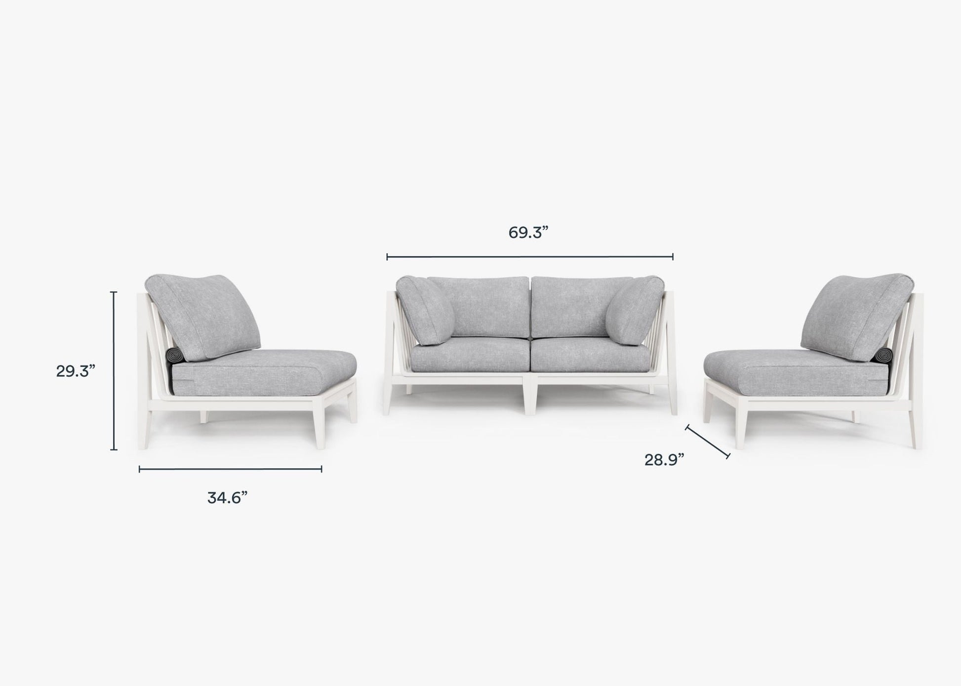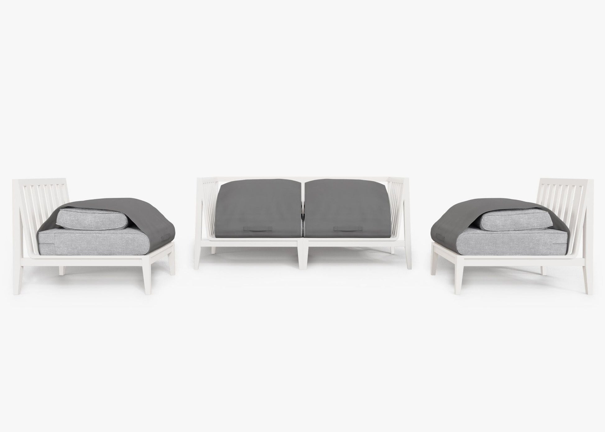 Profitez du confort de votre intérieur en extérieur. Élégant, léger et conçu pour durer grâce à sa structure en aluminium résistant aux intempéries, le mobilier modulaire Outer vous invite à la détente sur des coussins en mousse à mémoire de forme d'un confort exceptionnel. La housse OuterShell® intégrée et facile à utiliser protège les coussins lorsqu'ils ne sont pas utilisés. Elle est dotée d'une fermeture Velcro pour la maintenir en place et d'une poignée pour un transport et un rangement pratiques. Comprend 2 fauteuils d'angle et 2 fauteuils sans accoudoirs, facilement modulables. Aucun assemblage requis.
