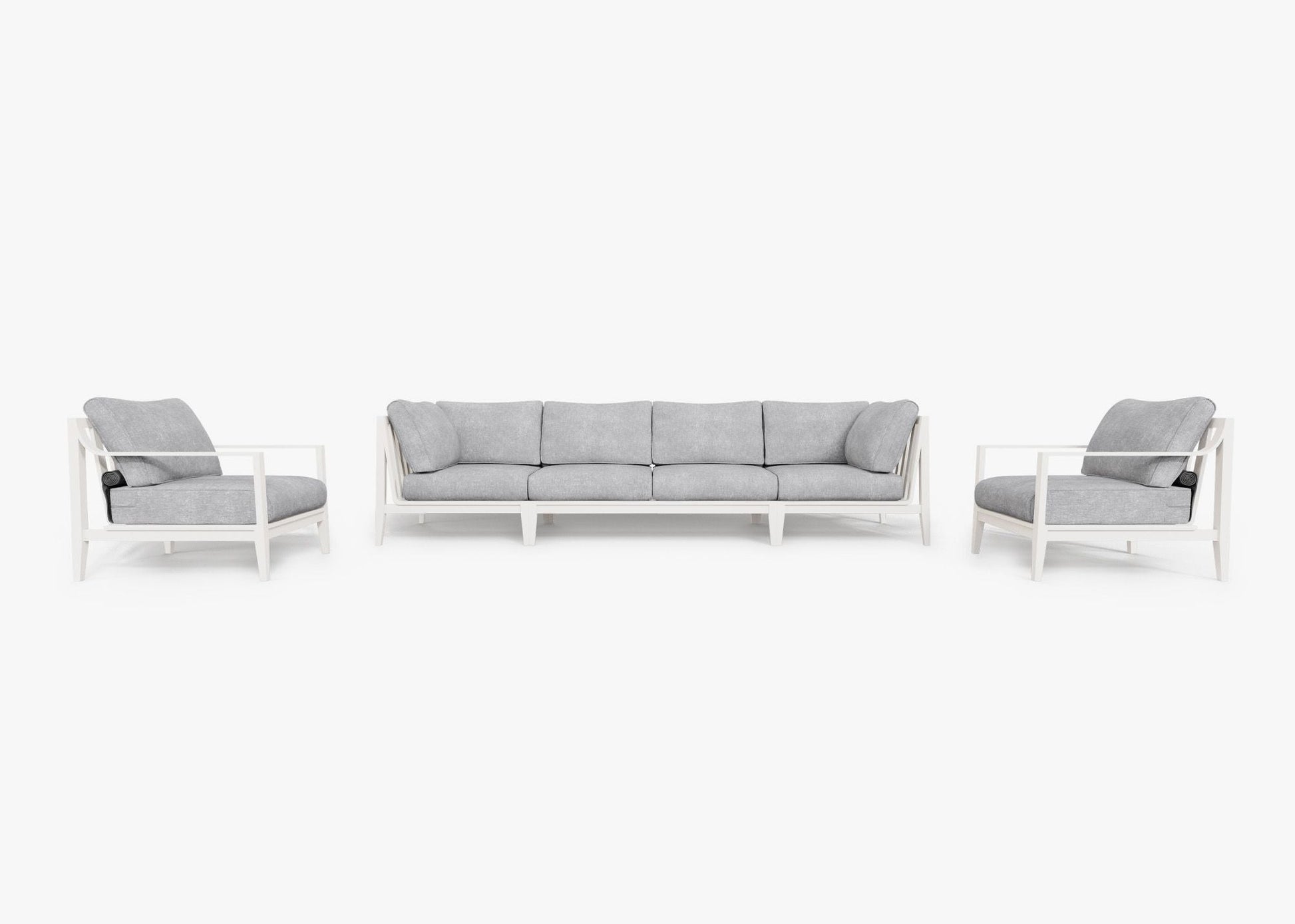 Profitez du confort de votre intérieur en extérieur. Élégant, léger et conçu pour durer grâce à sa structure en aluminium résistant aux intempéries, le mobilier modulable Outer vous invite à la détente sur des coussins en mousse à mémoire de forme d'un confort exceptionnel. La housse OuterShell® intégrée et facile à utiliser protège les coussins lorsqu'ils ne sont pas utilisés. Elle est dotée d'une fermeture Velcro pour la maintenir en place et d'une poignée pour un transport et un rangement aisés. L'ensemble comprend un canapé deux places sans accoudoirs, deux fauteuils d'angle et deux fauteuils modulables en toute simplicité.